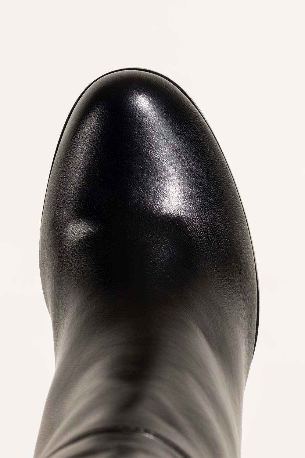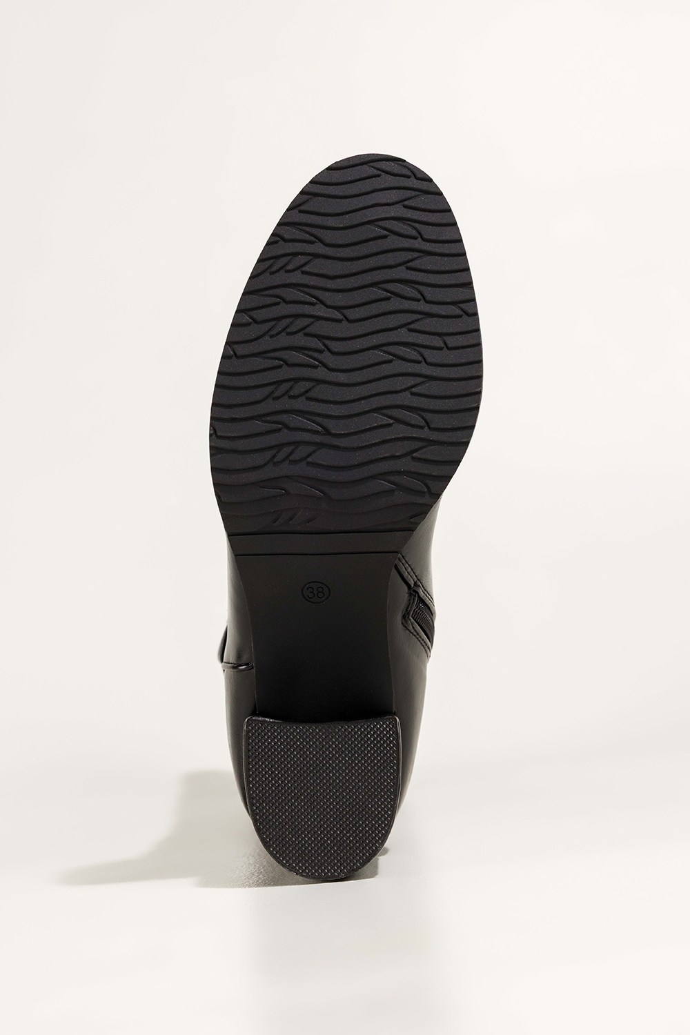Czarne kozaki skórzane damskie z klamrą na szerokim klocku ozdobna podeszwa PRODUKT POLSKI Casu 701
