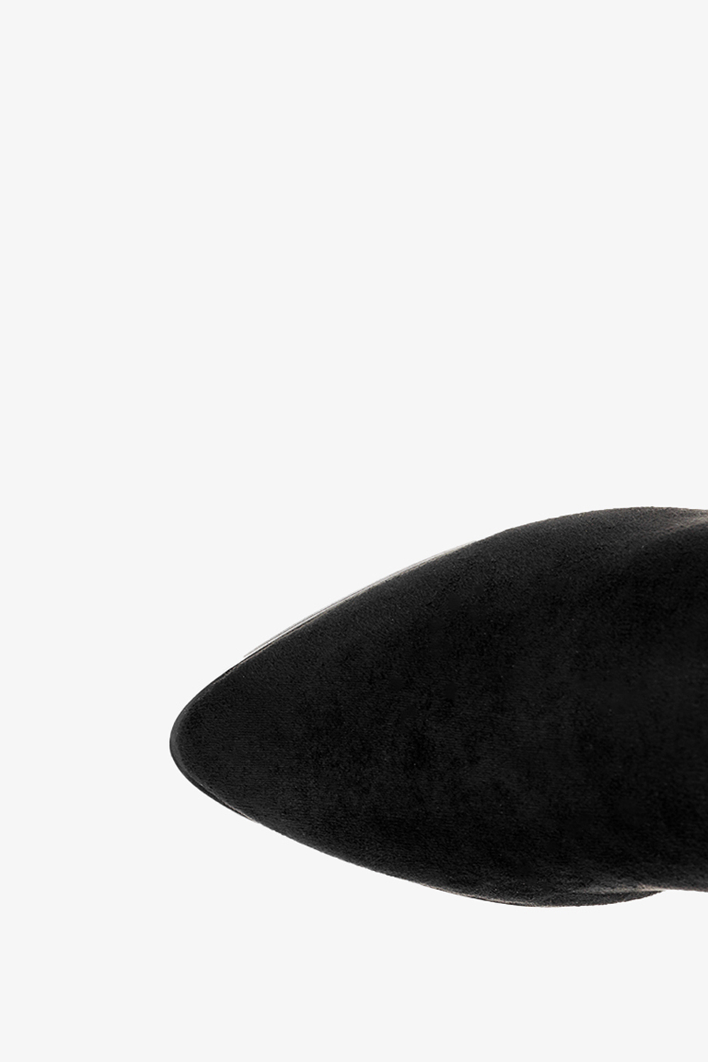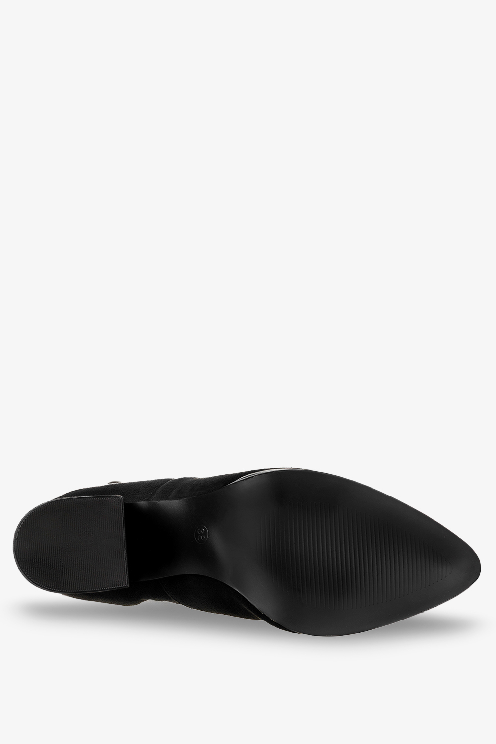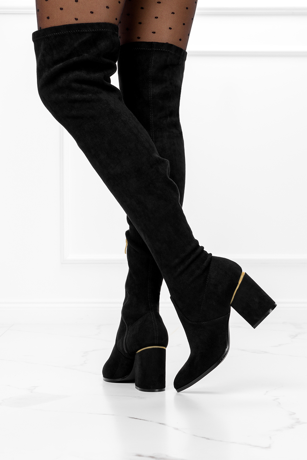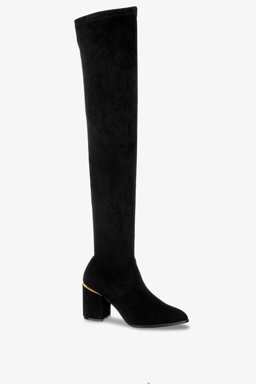 Czarne kozaki za kolano damskie na ozdobnym obcasie z elastyczną cholewką Casu D212X12-B