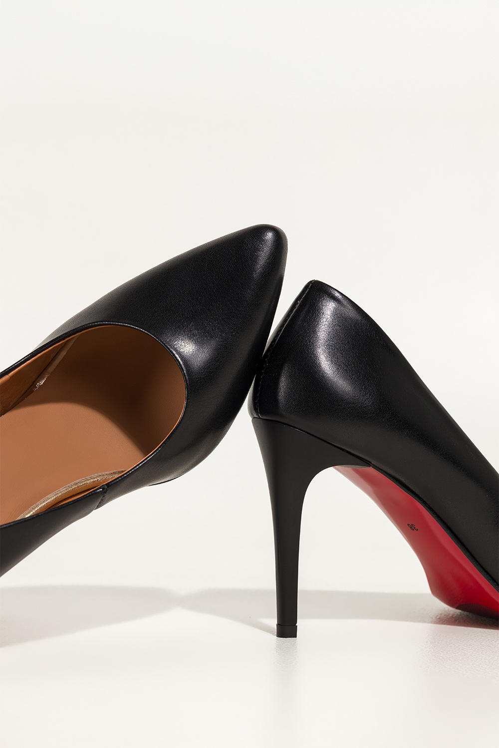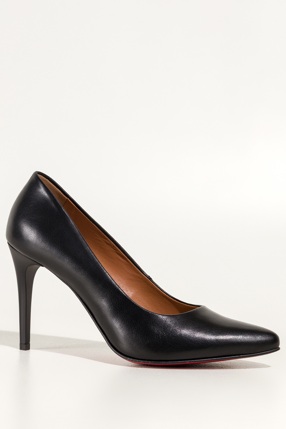 Czarne szpilki skórzane damskie z czerwoną podeszwą PRODUKT POLSKI Casu 7720-899