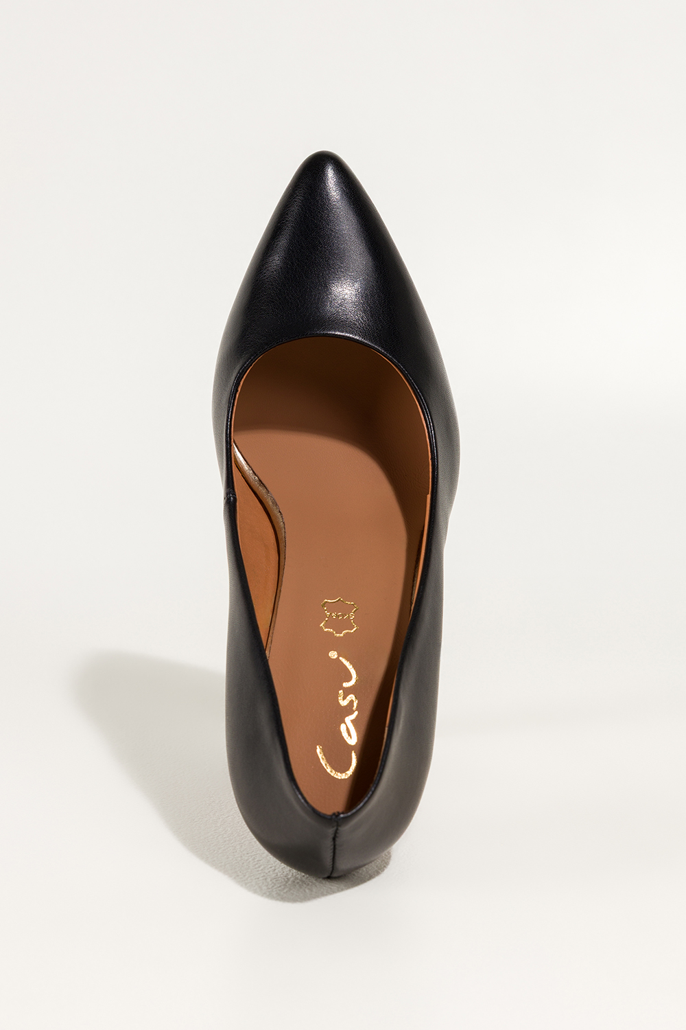 Czarne czółenka damskie na geometrycznym obcasie ze skórzaną wkładką Casu ER24WX2-B