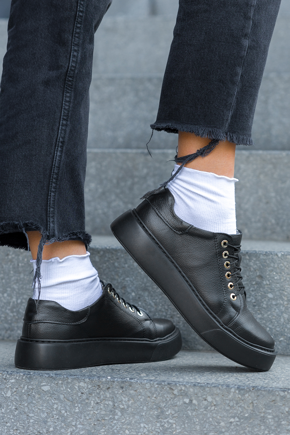Czarne trampki skórzane damskie model 469N zostały wyprodukowane w Polsce z najlepszych gatunków skór. Ręczne wykonanie butów gwarantuje doskonałą jakość, wygodę i dopasowanie do stopy. Wnętrze obuwia zostało wytworzone z wysokiej jakości skóry, która zapewnia maksymalny komfort użytkowania. Czarne sneakersy to must-have dla każdej miłośniczki mody, która ceni sobie nie tylko styl, ale i wygodę. Ten model to kwintesencja nowoczesnego designu i funkcjonalności, dzięki czemu doskonale sprawdzi się zarówno w casualowych, jak i bardziej eleganckich stylizacjach. Co wyróżnia te sneakersy na tle innych Przede wszystkim, czarna platforma, która dodaje im nowoczesnego charakteru, a jednocześnie zapewnia dodatkowy komfort noszenia. Dzięki niej, buty te optycznie wydłużają nogi, co jest niewątpliwą zaletą dla każdej kobiety pragnącej podkreślić swoją sylwetkę. Zaokrąglony nosek to klasyka, która nigdy nie wychodzi z mody. Dodaje on butom subtelności i sprawia, że stają się one idealnym wyborem na każdą okazję. Nie można również zapomnieć o miękkiej skórzanej wkładce, która zapewnia stopom maksymalny komfort przez cały dzień. Wkładka ta dostosowuje się do kształtu stopy, gwarantując wygodę dla stóp. Sznurówki przechodzące przez złote oczka to detal, który dodaje butom elegancji i luksusowego wykończenia. Złote oczka nie tylko pięknie się prezentują, ale także są niezwykle trwałe, co zapewnia długą żywotność butów. Dzięki temu, sneakersy te stają się doskonałym wyborem na wiele sezonów. Idealne na co dzień, do pracy czy na spotkania ze znajomymi. Ich uniwersalność sprawia, że można je nosić zarówno z jeansami, jak i elegancką sukienką. Niezależnie od stylizacji, zawsze wyglądają świetnie. To inwestycja, która z pewnością się opłaci, przynosząc radość z noszenia każdego dnia. Pozwól sobie na odrobinę luksusu w codziennym życiu i wybierz buty, które spełnią wszystkie Twoje oczekiwania. Zakup sneakersów na Casu. pl to gwarancja zadowolenia i satysfakcji z wyboru. Daj swoim stopom to, co najlepsze, i ciesz się każdym krokiem w stylowych i wygodnych butach, które idealnie dopełnią każdą Twoją stylizację.