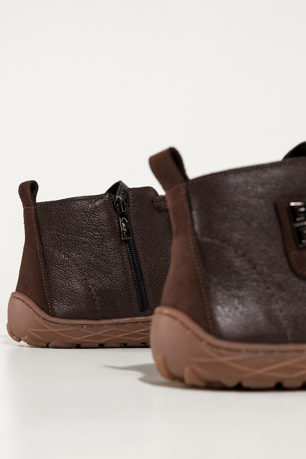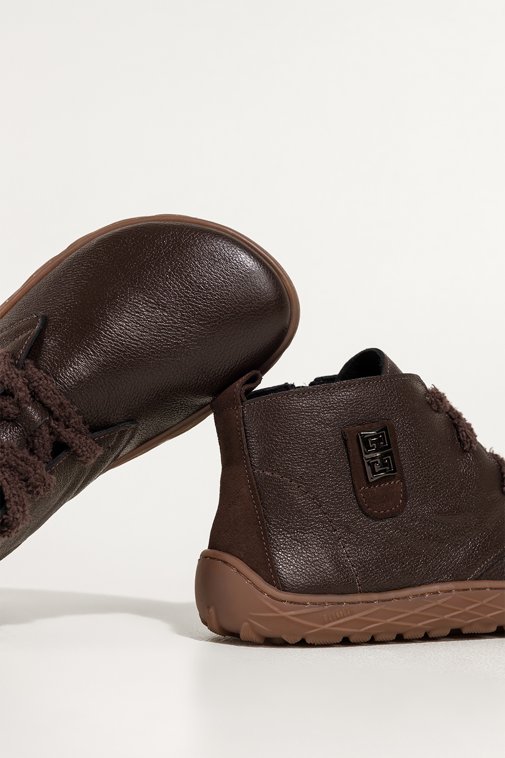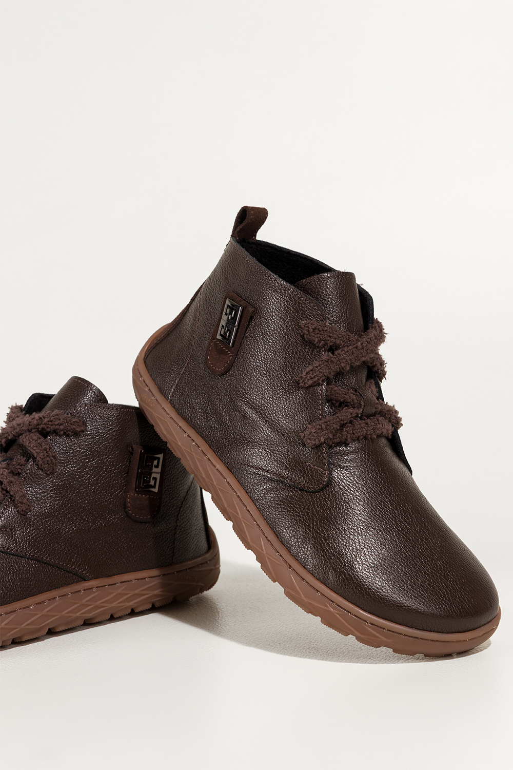 Czekoladowe botki barefoot skórzane damskie szerokie na elastycznej płaskiej podeszwie czarna ozdoba puszyste sznurówki PRODUKT POLSKI Casu model 69928. Wykonane z wysokogatunkowej, miękkiej skóry naturalnej, gwarantują maksymalny komfort noszenia, idealne dopasowanie do szerokiej stopy oraz pełną swobodę ruchu. Elastyczna płaska podeszwa i szeroki, zaokrąglony nosek wspierają naturalny sposób chodzenia, co czyni te botki nie tylko stylowymi, ale i zdrowymi dla stóp. Puszyste, czekoladowe sznurówki i stalowa ozdoba na cholewce nadają botkom wyjątkowego charakteru, łącząc modę z funkcjonalnością. Dzięki minimalistycznemu fasonowi z nutą ekstrawagancji, botki świetnie komponują się zarówno z casualowymi stylizacjami, jak i bardziej eleganckimi outfitami. Ich uniwersalny design sprawia, że bez trudu dopasujesz je do każdej okazji, od codziennych spacerów po miejskie wypady czy luźne spotkania towarzyskie. Wygodne zapięcie na zamek ułatwia szybkie zakładanie, a brak ocieplenia sprawia, że idealnie sprawdzają się w przejściowych sezonach. Lekka, żłobiona podeszwa zapewnia doskonałą przyczepność, a miękka, materiałowa wkładka dodatkowo podnosi komfort użytkowania. Cechy wyróżniające Naturalna, wysokogatunkowa skóra Elastyczna, barefootowa podeszwa dla naturalnego chodu Puszyste, czekoladowe sznurówki jako modny akcent Stalowa ozdoba na cholewce Szeroka konstrukcja dla komfortu stóp Zapięcie na zamek, szybkie i wygodne zakładanie Idealne na sezon przejściowy Uniwersalny styl pasujący do wielu outfitów To doskonały wybór dla kobiet, które chcą wyglądać stylowo, jednocześnie dbając o zdrowie swoich stóp. Zamów teraz na stronie Casu i poczuj różnicę już od pierwszego kroku!
