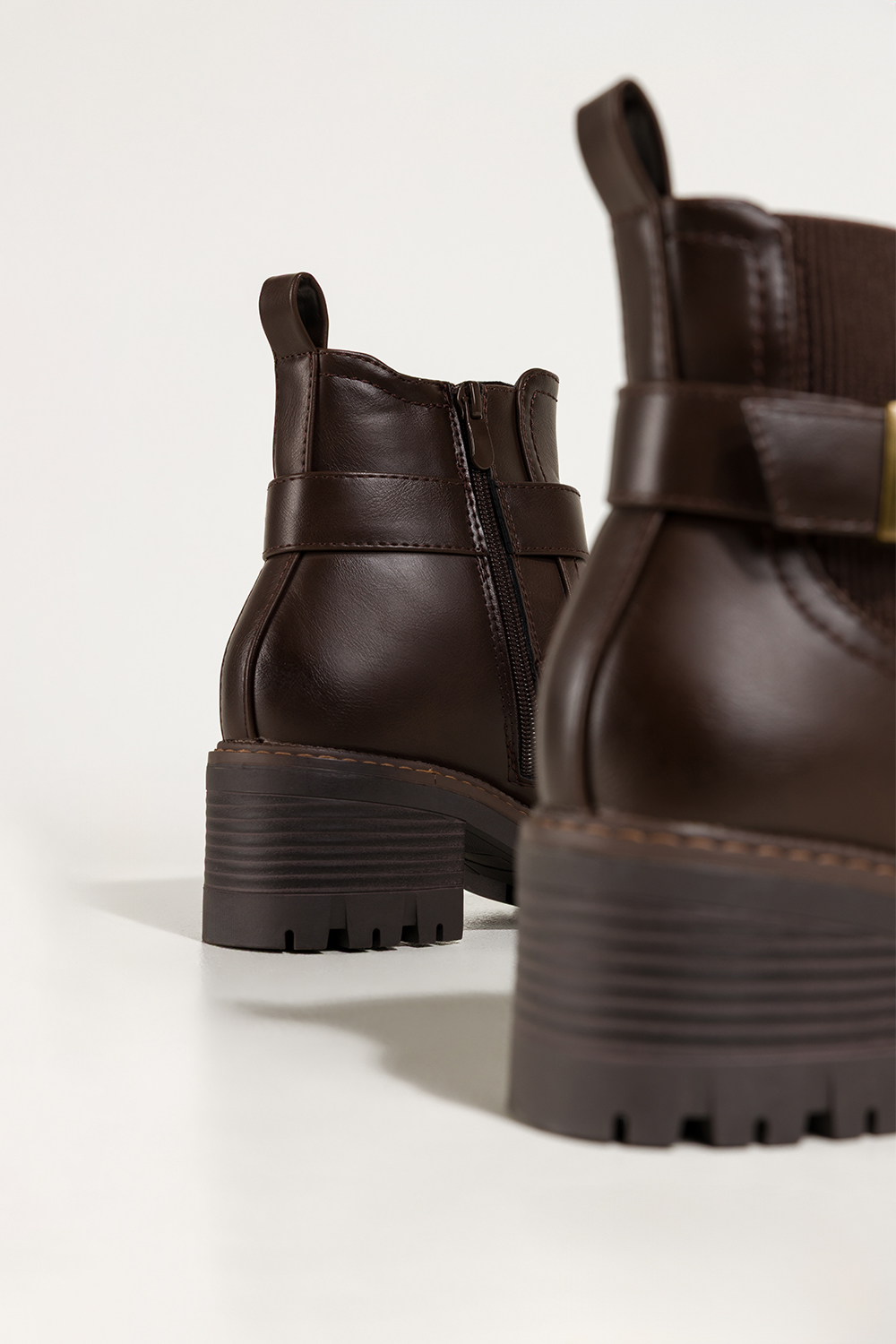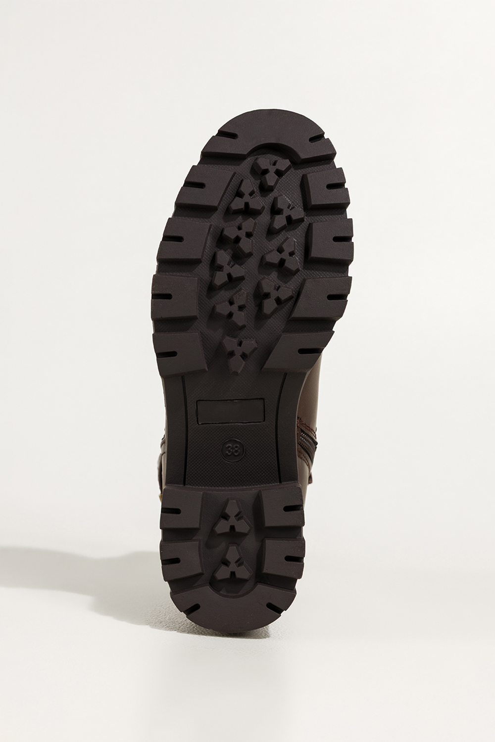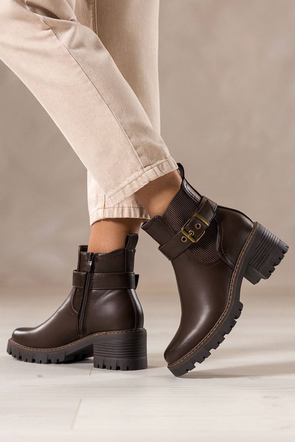 Czekoladowe botki damskie na bieżnikowanej platformie guma w cholewce pasek ze złotą klamrą Casu model D725-7. Wykonane z wysokogatunkowej skóry ekologicznej, zapewniają trwałość i odporność na codzienne użytkowanie. Wnętrze botków zostało ocieplone miękkim, przyjemnym w dotyku futerkiem, które gwarantuje ciepło i wygodę nawet w chłodniejsze dni. Solidna konstrukcja i bieżnikowana podeszwa zapewniają doskonałą przyczepność i stabilność na każdej nawierzchni. Głęboki, czekoladowy odcień doskonale komponuje się z jesienno-zimową garderobą, a złota klamra na pasku dodaje mu szykownego charakteru. Elastyczna guma w cholewce ułatwia zakładanie i idealnie dopasowuje się do kształtu nogi, zapewniając komfort przez cały dzień. Dzięki klasycznemu krojowi i subtelnie zaokrąglonemu noskowi, botki świetnie sprawdzą się zarówno w codziennych, jak i bardziej eleganckich stylizacjach. Ich uniwersalność sprawia, że pasują do jeansów, sukienek, płaszczy i puchówek. Botki łączą w sobie estetykę i funkcjonalność, zapinanie na zamek pozwala na szybkie zakładanie, a bieżnikowana platforma dba o bezpieczeństwo nawet na śliskich nawierzchniach. Ich lekka konstrukcja nie obciąża stóp, co sprawia, że są idealne na długie spacery, do pracy, na zakupy czy spotkania ze znajomymi. Cechy wyróżniające Wysokogatunkowa skóra ekologiczna Miękkie, ocieplane wnętrze z futerkiem Bieżnikowana platforma i stabilny obcas Elastyczna guma w cholewce ułatwiająca zakładanie Pasek z ozdobną złotą klamrą Zapinane na praktyczny zamek Uniwersalny kolor pasujący do wielu stylizacji To obuwie, które pokochasz za ich jakość, funkcjonalność i ponadczasowy styl. Zamów teraz w sklepie Casu i poczuj różnicę w codziennym komforcie!
