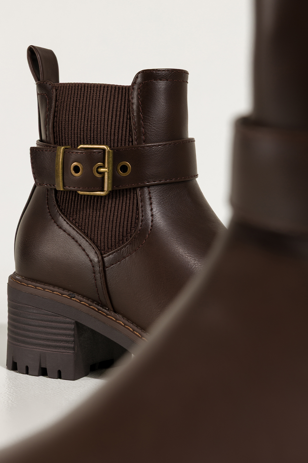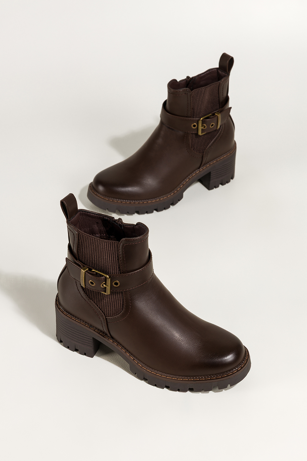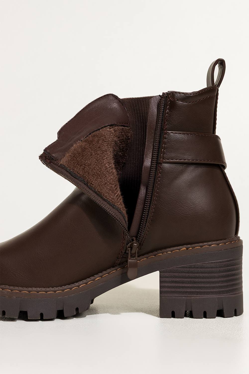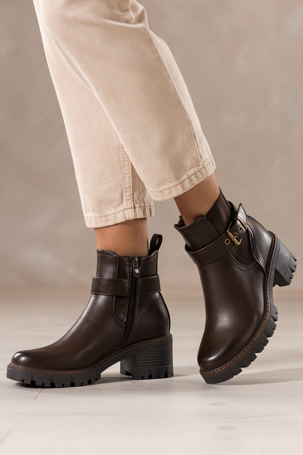 Czekoladowe botki damskie na bieżnikowanej platformie guma w cholewce pasek ze złotą klamrą Casu model D725-7. Wykonane z wysokogatunkowej skóry ekologicznej, zapewniają trwałość i odporność na codzienne użytkowanie. Wnętrze botków zostało ocieplone miękkim, przyjemnym w dotyku futerkiem, które gwarantuje ciepło i wygodę nawet w chłodniejsze dni. Solidna konstrukcja i bieżnikowana podeszwa zapewniają doskonałą przyczepność i stabilność na każdej nawierzchni. Głęboki, czekoladowy odcień doskonale komponuje się z jesienno-zimową garderobą, a złota klamra na pasku dodaje mu szykownego charakteru. Elastyczna guma w cholewce ułatwia zakładanie i idealnie dopasowuje się do kształtu nogi, zapewniając komfort przez cały dzień. Dzięki klasycznemu krojowi i subtelnie zaokrąglonemu noskowi, botki świetnie sprawdzą się zarówno w codziennych, jak i bardziej eleganckich stylizacjach. Ich uniwersalność sprawia, że pasują do jeansów, sukienek, płaszczy i puchówek. Botki łączą w sobie estetykę i funkcjonalność, zapinanie na zamek pozwala na szybkie zakładanie, a bieżnikowana platforma dba o bezpieczeństwo nawet na śliskich nawierzchniach. Ich lekka konstrukcja nie obciąża stóp, co sprawia, że są idealne na długie spacery, do pracy, na zakupy czy spotkania ze znajomymi. Cechy wyróżniające Wysokogatunkowa skóra ekologiczna Miękkie, ocieplane wnętrze z futerkiem Bieżnikowana platforma i stabilny obcas Elastyczna guma w cholewce ułatwiająca zakładanie Pasek z ozdobną złotą klamrą Zapinane na praktyczny zamek Uniwersalny kolor pasujący do wielu stylizacji To obuwie, które pokochasz za ich jakość, funkcjonalność i ponadczasowy styl. Zamów teraz w sklepie Casu i poczuj różnicę w codziennym komforcie!