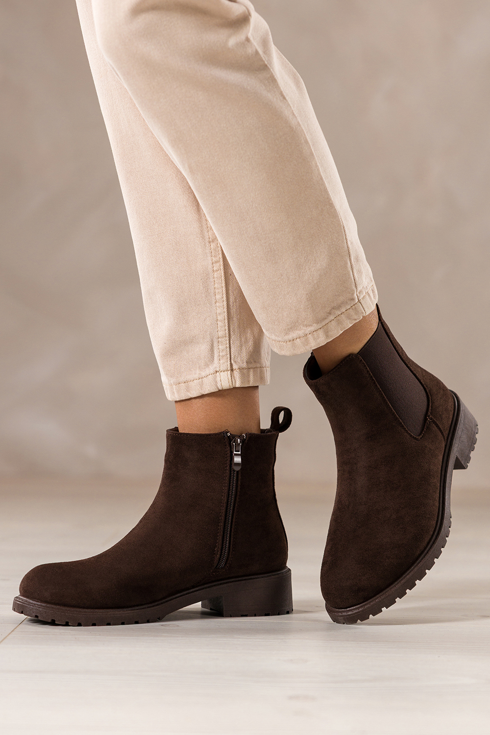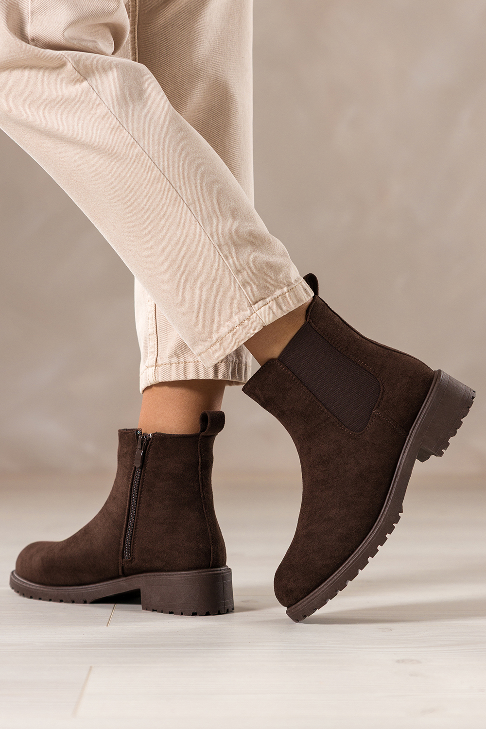 Czekoladowe botki damskie na bieżnikowanej podeszwie guma w cholewce Casu model YZ844-7, to połączenie wysokogatunkowej zamszowej skóry ekologicznej z funkcjonalnym designem, który zapewnia wygodę nawet podczas całodziennego użytkowania. Wnętrze botków zostało wykończone miękkim, delikatnym futerkiem, które daje uczucie otulenia i chroni stopy przed chłodem. Stabilny, bieżnikowany obcas typu klocek zapewnia dobrą przyczepność i równowagę, dzięki czemu świetnie sprawdzi się w miejskich warunkach jesienno-zimowych. Ich głęboki odcień brązu doskonale komponuje się z jeansami, swetrami, wełnianymi płaszczami czy dzianinowymi sukienkami. Zaokrąglony nosek dodaje im subtelności, a boczny zamek ułatwia szybkie zakładanie, bez konieczności rezygnowania z elegancji. Dzięki elastycznej gumie w cholewce, botki dopasowują się do kształtu nogi, oferując wygodę i idealne dopasowanie do różnych sylwetek. Ich trwała konstrukcja i odporność na warunki atmosferyczne czynią je niezastąpionym wyborem na chłodne dni. Czekoladowy kolor nie tylko dodaje charakteru, ale również jest łatwy do utrzymania w czystości. To idealne buty dla kobiet ceniących wygodę, styl i niezawodność w każdej sytuacji. Cechy wyróżniające Wysokogatunkowa zamszowa skóra ekologiczna Miękkie, ocieplające futerko wewnątrz Bieżnikowany, stabilny obcas typu klocek Zaokrąglony nosek dla większej elegancji Zamek błyskawiczny + elastyczna guma w cholewce Uniwersalny, czekoladowy kolor pasujący do wielu stylizacji Nie czekaj i wybierz botki, które łączą modny wygląd z niezrównanym komfortem! Zamów już dziś na stronie Casu i ciesz się obuwiem, które podkreśli Twój styl i sprawdzi się w każdej sytuacji.