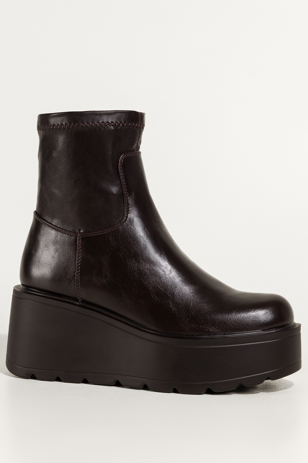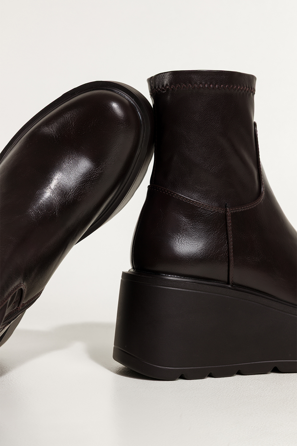 Czekoladowe botki damskie na koturnie elastyczna cholewka Casu 0743