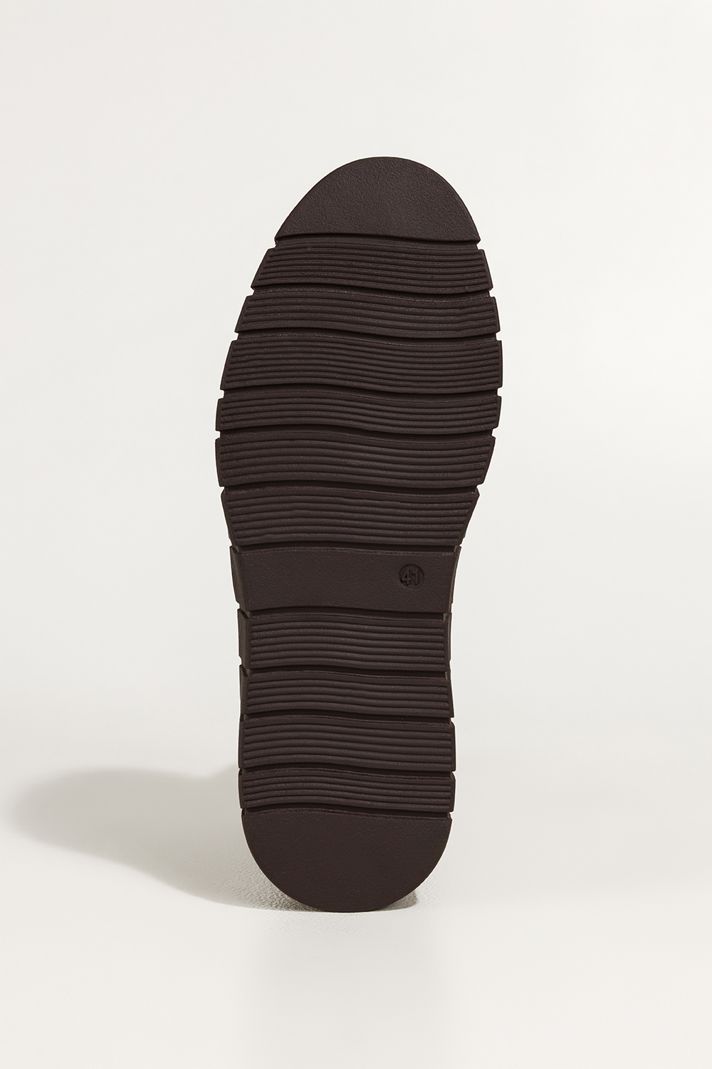 Ciemnobrązowe botki skórzane damskie Sergio Leone na beżowej bieżnikowanej platformie elastyczna gu