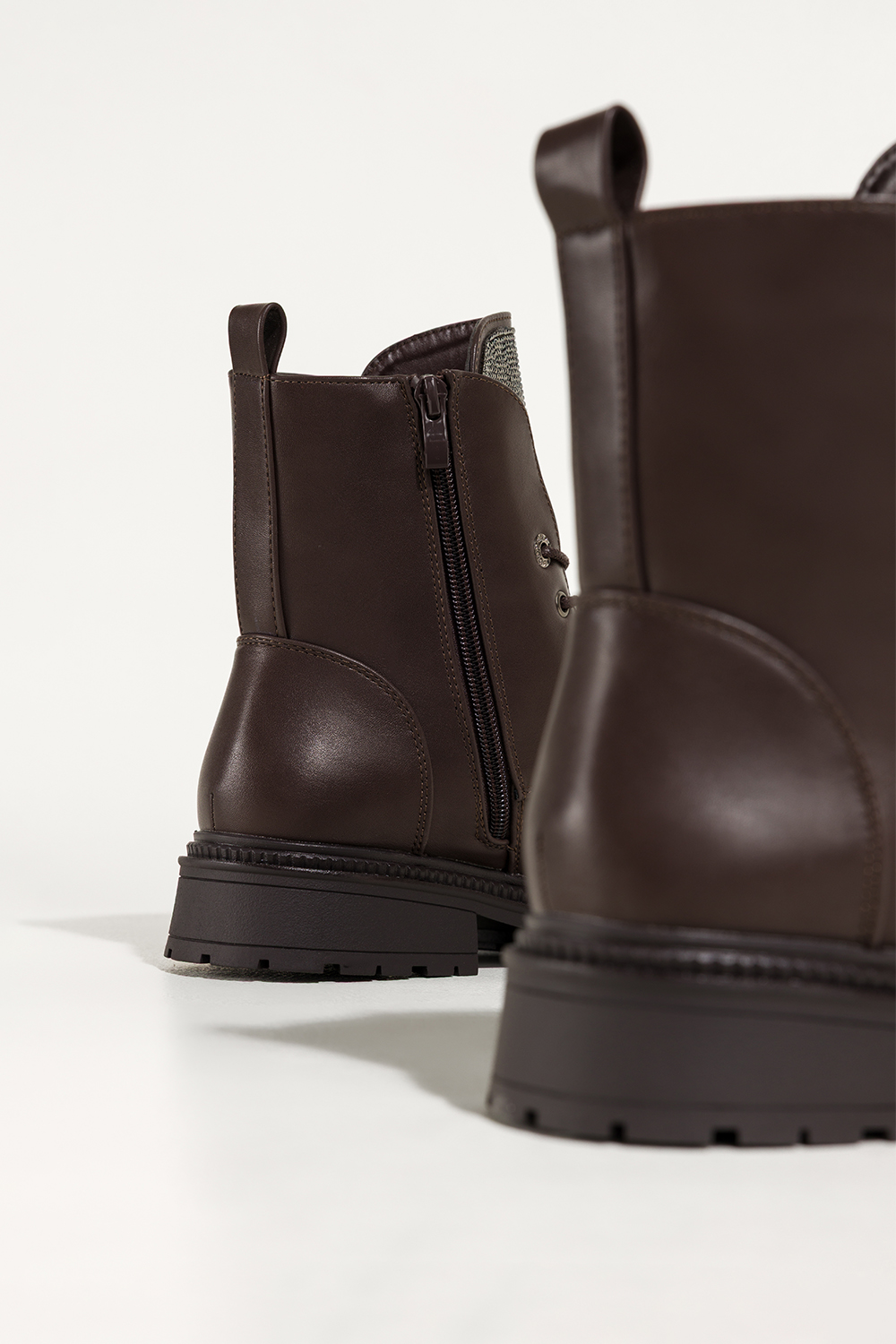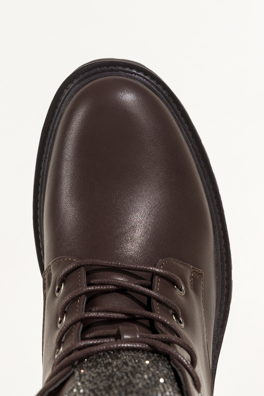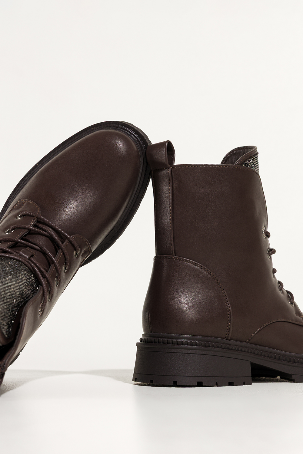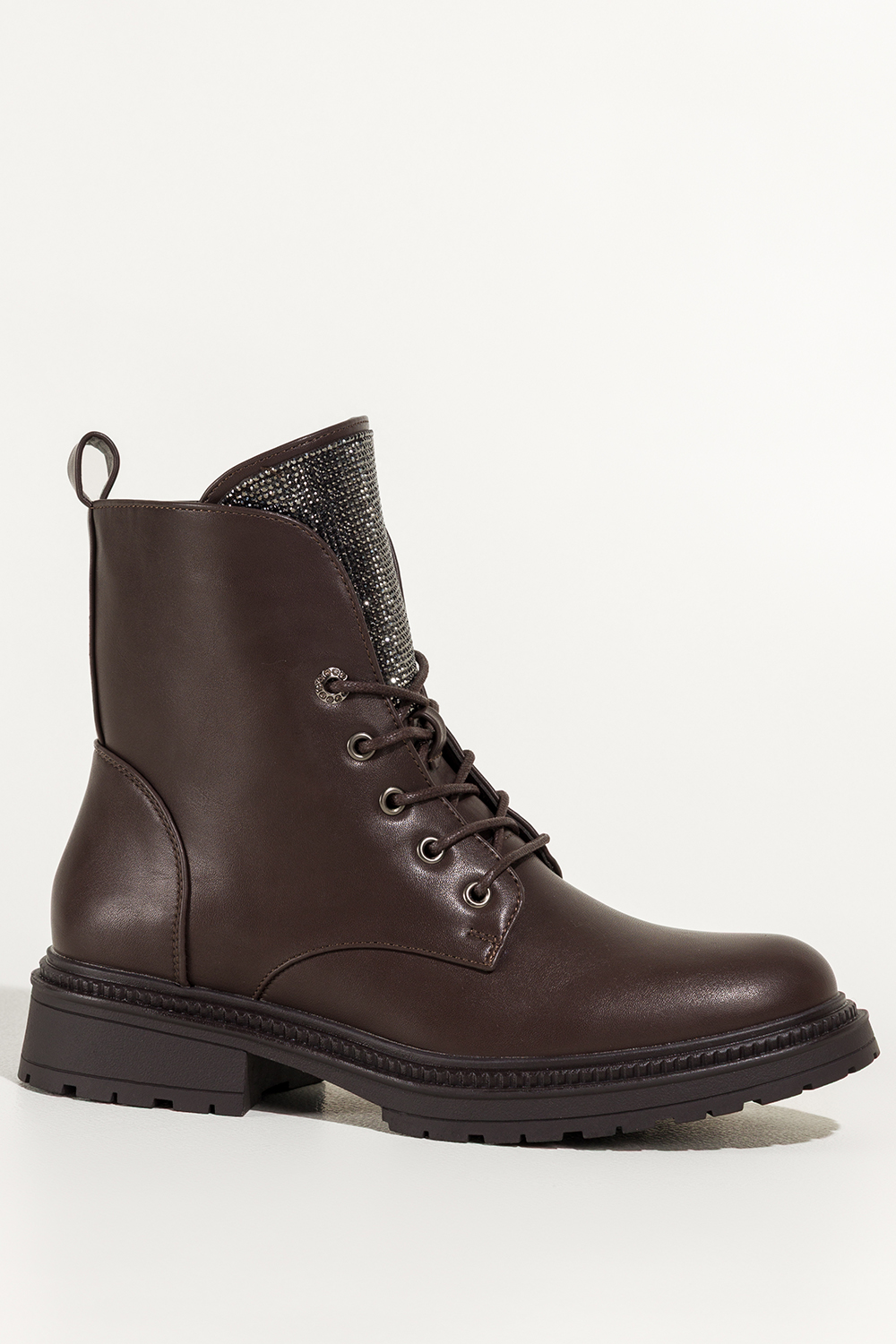 Czekoladowe botki damskie na żłobionej platformie język z cyrkoniami sznurowane Casu EH763-92