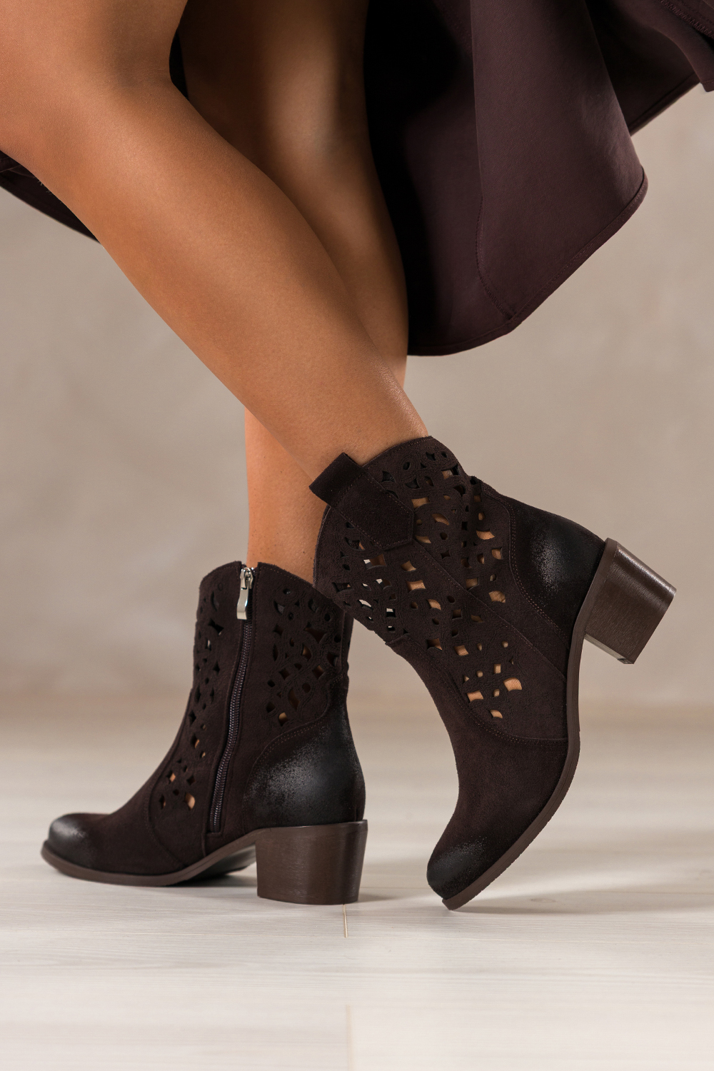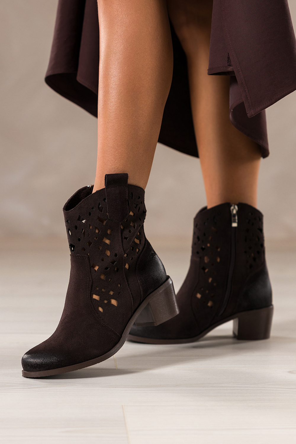 Czekoladowe botki skórzane damskie kowbojki ażurowe na ściętym obcasie wycięta cholewka PRODUKT POLSKI Casu model 6605-7, to prawdziwa perełka wśród jesienno-wiosennego obuwia. Wykonane z najwyższej jakości skóry zamszowej, gwarantują nie tylko luksusowy wygląd, ale i trwałość. Ręczne wykończenie oraz precyzyjny ażurowy wzór dodają im niepowtarzalnego charakteru. Miękka, skórzana wkładka zapewnia komfort nawet przy długotrwałym noszeniu, a solidna konstrukcja sprawia, że buty doskonale sprawdzą się w codziennym użytkowaniu. Inspirowane estetyką westernu, botki zyskują nowoczesne oblicze dzięki ściętemu obcasowi typu klocek oraz subtelnie wyciętej cholewce, która optycznie wysmukla kostkę. Czekoladowy odcień pasuje zarówno do zwiewnych sukienek, jak i dopasowanych jeansów, czyniąc je idealnym dodatkiem do stylizacji boho, casual i miejskich. Zapinane na zamek z boku, są niezwykle łatwe w zakładaniu i zdejmowaniu, co doceni każda kobieta ceniąca wygodę i funkcjonalność. Brak ocieplenia sprawia, że idealnie sprawdzą się w cieplejsze dni jesieni i wiosny. Ich uniwersalny fason pozwala na dopasowanie do różnorodnych okazji, od spotkań ze znajomymi, przez pracę w biurze, aż po weekendowe wypady za miasto. To produkt polski, który łączy modę z praktycznością i wspiera lokalne rzemiosło. Cechy wyróżniające Naturalna, wysokogatunkowa skóra zamszowa Stylowy ażurowy wzór i wycięta cholewka Ścięty obcas klocek zapewniający stabilność Miękka, oddychająca skórzana wkładka Uniwersalny czekoladowy kolor Produkt polski, gwarancja jakości i precyzji To propozycja dla kobiet, które pragną wyrazić swój styl z klasą. Zamów już dziś na stronie Casu i przekonaj się, jak wiele mogą zmienić dobrze dobrane buty!