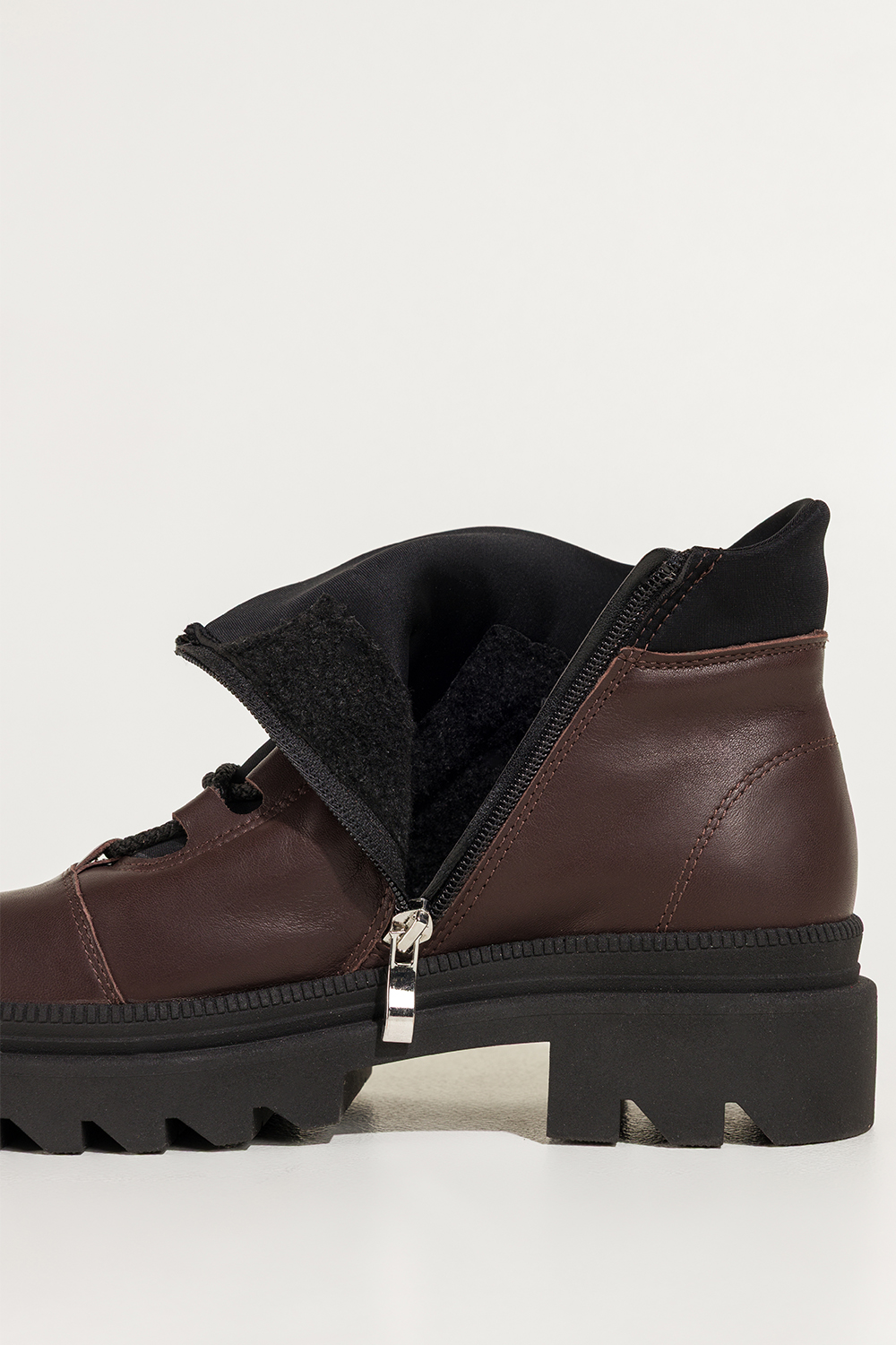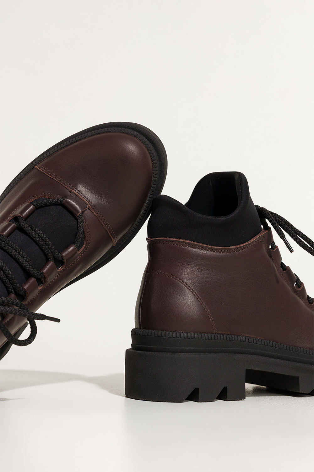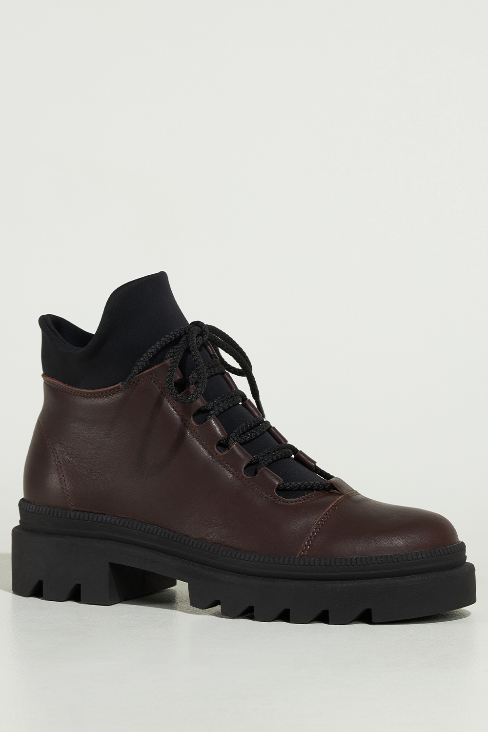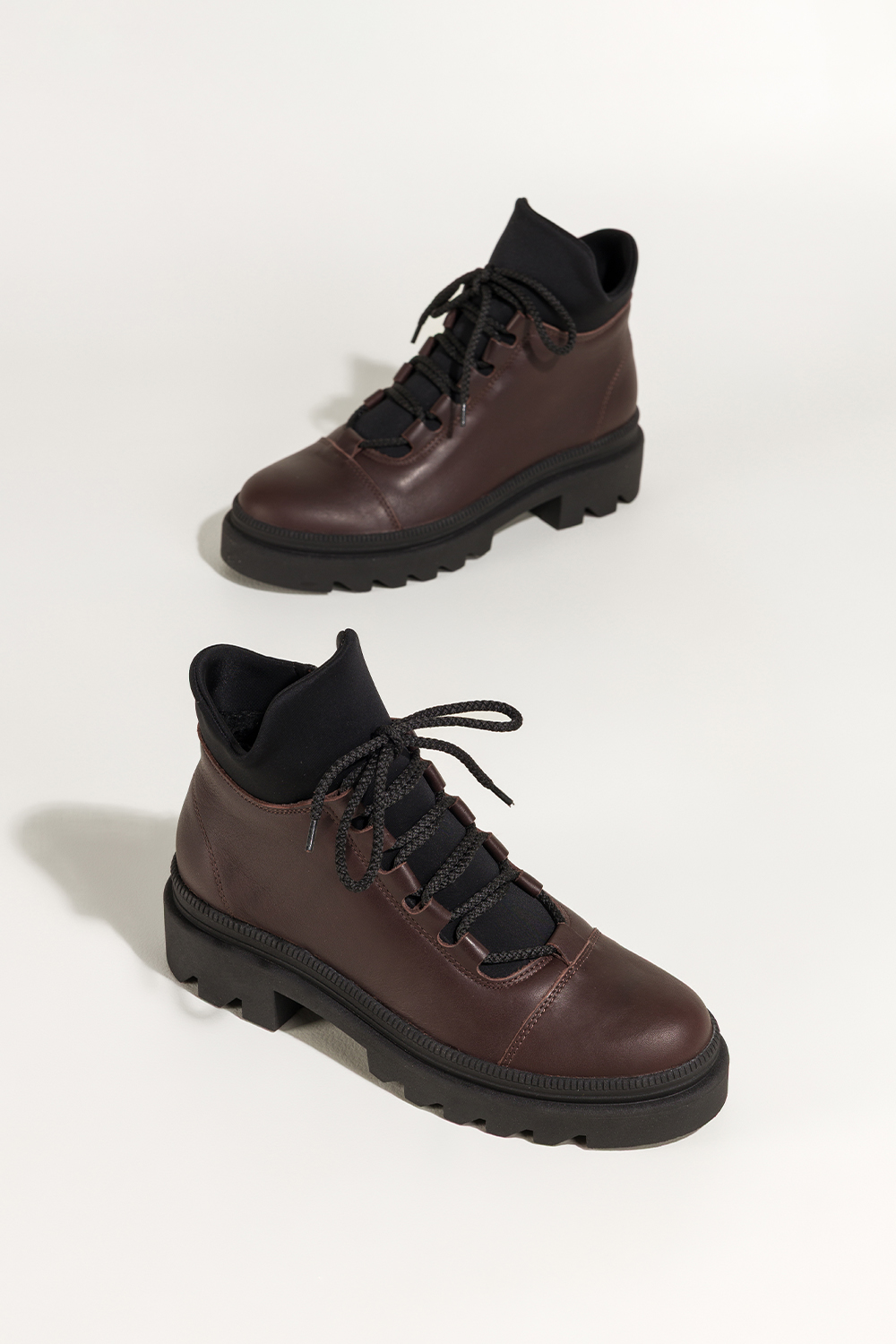 Czekoladowe botki skórzane damskie Sergio Leone na beżowej bieżnikowanej platformie elastyczna guma