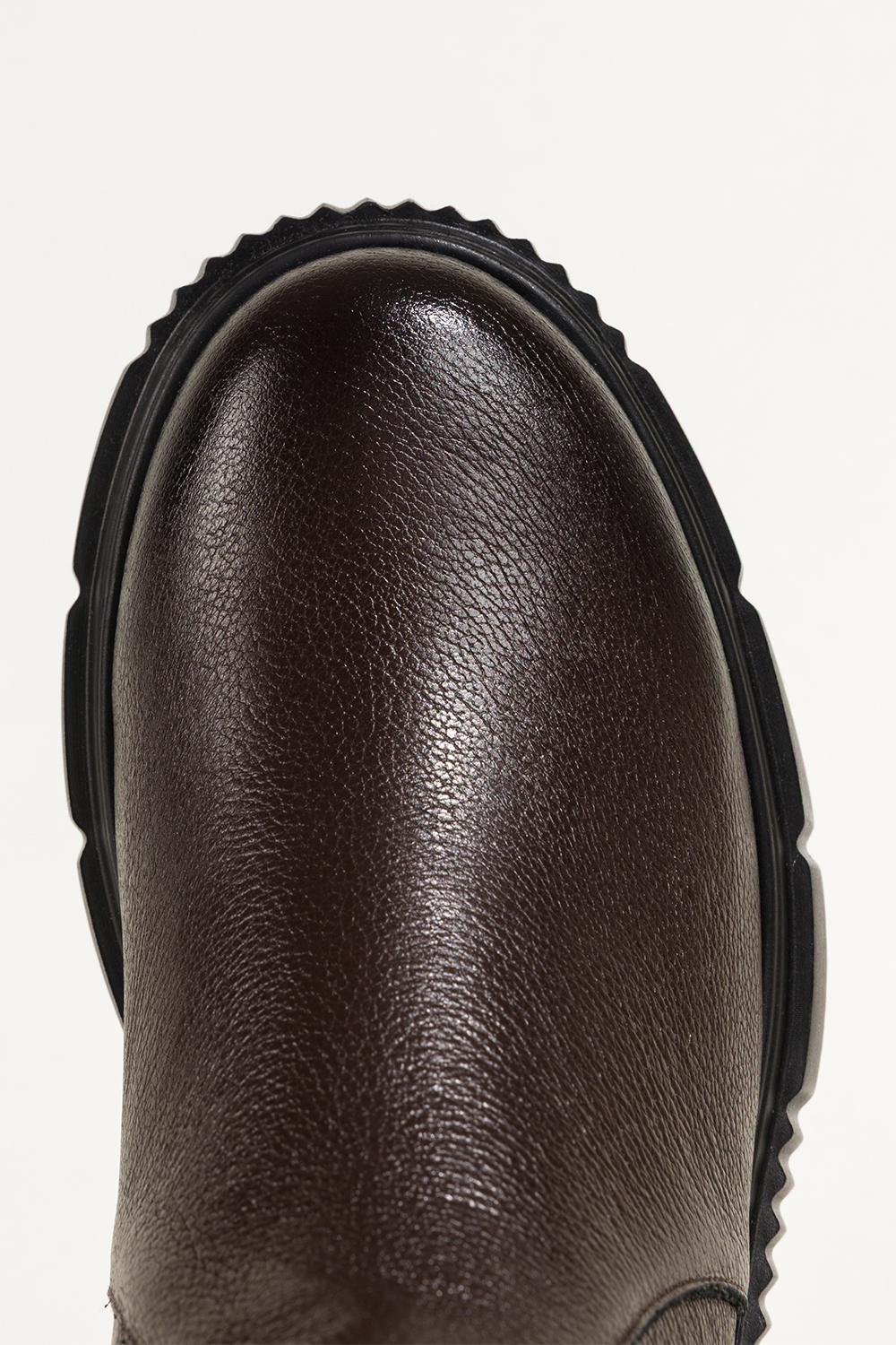 Ciemnobrązowe botki skórzane damskie Sergio Leone na beżowej bieżnikowanej platformie elastyczna gu
