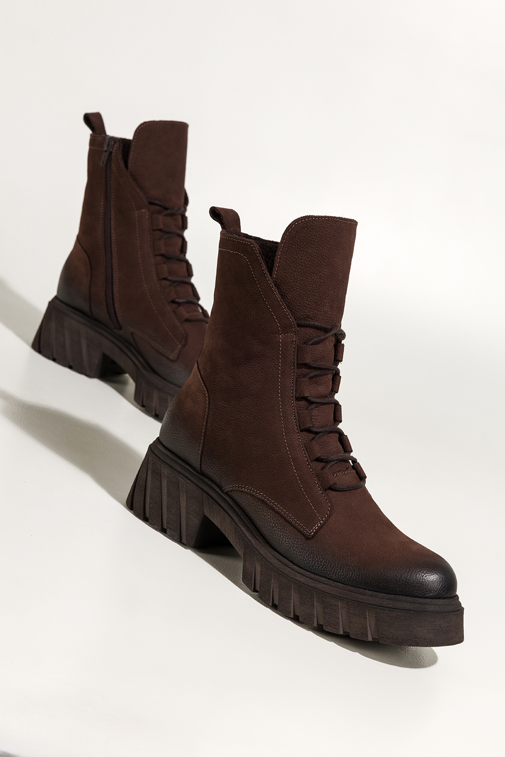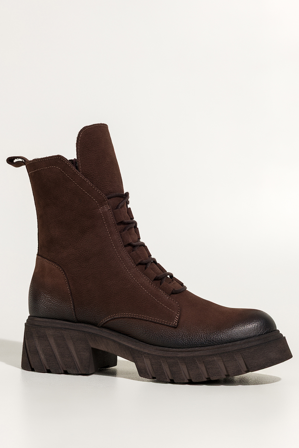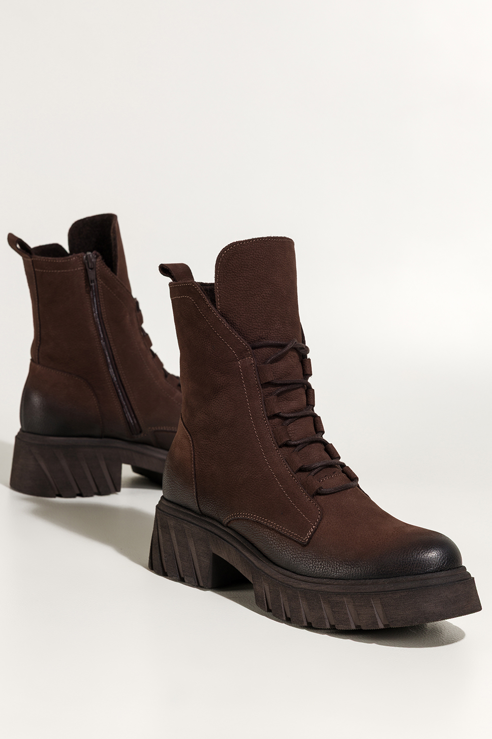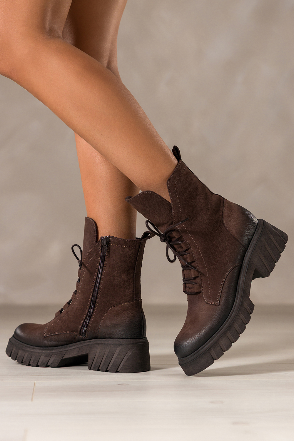 Czekoladowe botki skórzane damskie nubukowe workery z efektownym językiem na bieżnikowanej czekoladowej podeszwie sznurowane PRODUKT POLSKI Casu model 8149, jakość i komfort, stworzone z myślą o najbardziej wymagających kobietach. Buty wykonane są z wysokogatunkowej skóry nubukowej, która nie tylko zachwyca głębią koloru, ale również gwarantuje trwałość. Ich wnętrze zostało ocieplone miękkim kocem obuwniczym, który skutecznie chroni stopy przed chłodem. Solidna bieżnikowana platforma dba o przyczepność i stabilność, dodając charakteru każdej stylizacji. Subtelnie zaokrąglony nosek i elegancki fason sprawiają, że botki doskonale komponują się zarówno z casualowymi jeansami, jak i z kobiecymi sukienkami czy płaszczami. Praktyczne sznurowanie z przodu pozwala na idealne dopasowanie do stopy, a boczny zamek ułatwia szybkie zakładanie. Ten model świetnie sprawdzi się w codziennych miejskich stylizacjach, jak i podczas dłuższych spacerów, zawsze w dobrym stylu. Dzięki swojej uniwersalnej kolorystyce w odcieniu głębokiej czekolady pasują do wielu stylizacji i sprawdzą się na różne okazje, od pracy po weekendowe wypady. Idealne dla kobiet, które cenią sobie wygodę bez kompromisu w kwestii stylu. Cechy wyróżniające Wysokogatunkowa skóra nubukowa, trwałość i luksusowy wygląd Efektowny długi język, modowy detal przyciągający uwagę Bieżnikowana podeszwa, lepsza przyczepność i wygoda Ocieplenie z koca obuwniczego, komfort cieplny w chłodne dni Sznurówki i zamek, łatwość dopasowania i zakładania Produkt polski, wspierasz rodzimą produkcję Nie czekaj! Wybierz botki, które Cię zachwycą. Złóż zamówienie już teraz na stronie Casu i podkreśl swój styl tej jesieni!