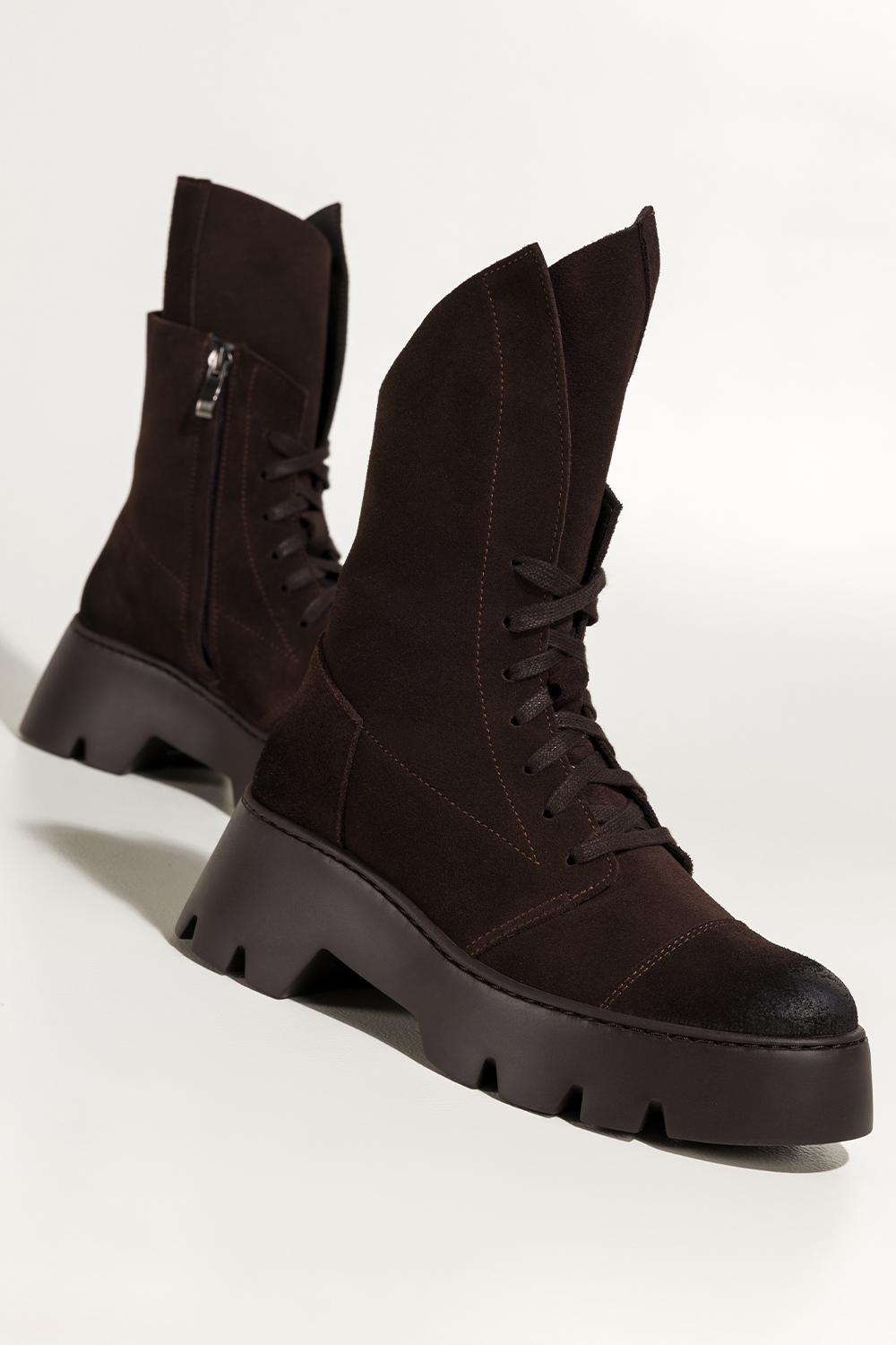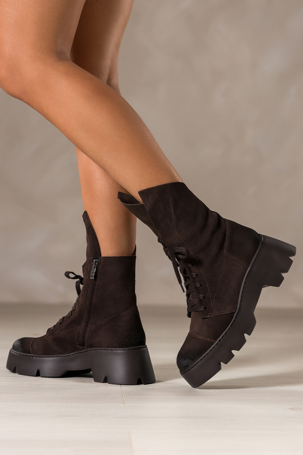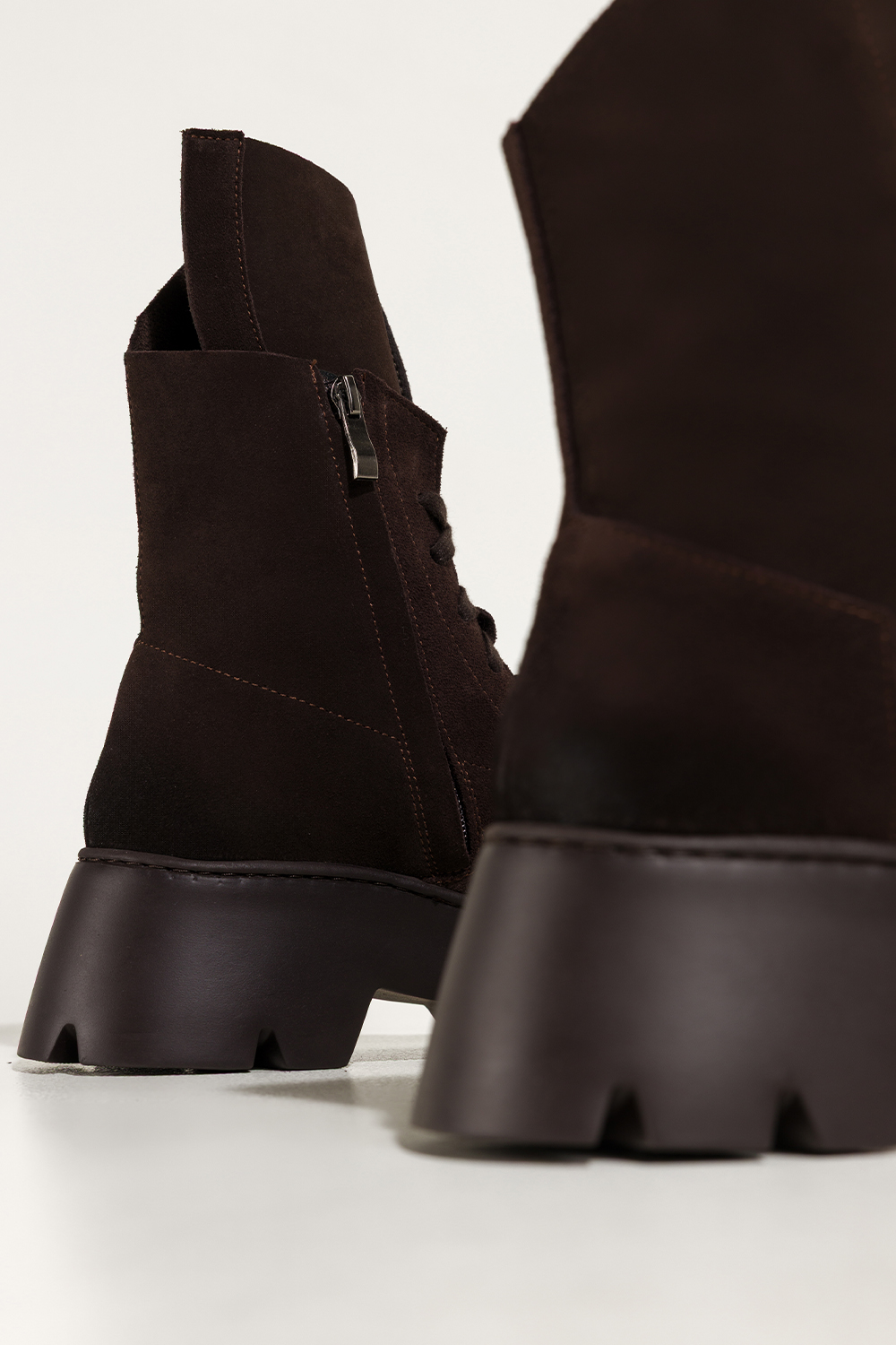 Czekoladowe botki skórzane damskie workery na bieżnikowanej platformie geometrycznie wycięta cholewka sznurowane PRODUKT POLSKI Casu model 023. Wykonane z luksusowej, miękkiej skóry zamszowej gwarantują doskonałe dopasowanie do stopy i wyjątkowy komfort noszenia. Solidna bieżnikowana podeszwa zapewnia stabilność, a brak ocieplenia sprawia, że buty idealnie sprawdzą się w przejściowych porach roku. Geometrycznie wycięta cholewka i wyrazisty, zaokrąglony nosek nadają butom surowego, ale kobiecego charakteru. Dzięki połączeniu zamka i sznurowania możesz idealnie dopasować botki do swojej stopy, a przy tym cieszyć się wygodą ich zakładania. Ten model z powodzeniem uzupełni stylizacje miejskie, rockowe i codzienne, stanowiąc modny akcent w każdej garderobie. Kolor głębokiej czekolady pasuje zarówno do klasycznych dżinsów, jak i zwiewnych sukienek. Wkładka z koca obuwniczego zapewnia komfort przez cały dzień, a solidna konstrukcja i staranne szycie gwarantują luksusowy wygląd. Ich uniwersalny krój sprawia, że dopasujesz je do wielu okazji, od pracy po wieczorne wyjścia, niezależnie od stylu. To idealny wybór dla kobiet, które cenią jakość, wygodę i ponadczasowy design. Cechy wyróżniające Wysokogatunkowa skóra zamszowa Geometryczne wycięcia cholewki Bieżnikowana, masywna platforma Połączenie zamka i sznurowania Wkładka z koca obuwniczego Produkt polski, gwarancja jakości Zamów już dziś czekoladowe workery i podkreśl swój niepowtarzalny styl. Postaw na jakość polskiego rzemiosła i odkryj nowy wymiar codziennej elegancji w butach od Casu!