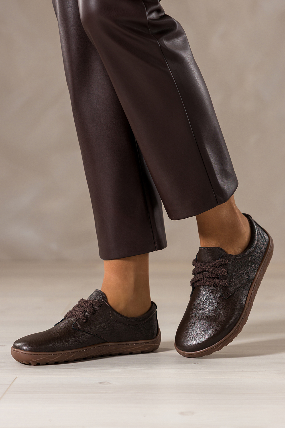 Czekoladowe buty barefoot skórzane damskie szerokie na elastycznej płaskiej podeszwie puszyste sznurówki PRODUKT POLSKI Casu model 89811, to połączenie naturalnej elegancji z najwyższą jakością. Wykonane z miękkiej, wysokogatunkowej skóry naturalnej, gwarantują doskonałą oddychalność i trwałość. Elastyczna, płaska podeszwa wspiera naturalny ruch stopy, co czyni je idealnym wyborem dla kobiet ceniących zdrowie i komfort. Miękka skórzana wkładka dopasowuje się do kształtu stopy, zapewniając uczucie lekkości i wygody przez cały dzień. Subtelny, czekoladowy odcień pięknie komponuje się z jesiennymi i zimowymi stylizacjami, dodając im naturalnego ciepła. Puszyste sznurówki wnoszą odrobinę oryginalności, przyciągając wzrok i podkreślając niebanalny charakter obuwia. Zaokrąglony, szeroki nosek to nie tylko designerski akcent, ale przede wszystkim komfortowa przestrzeń dla palców, idealna dla pań z szerszą stopą. To buty stworzone z myślą o kobietach aktywnych, które nie chcą rezygnować z wygody na rzecz stylu. Sprawdzą się zarówno podczas miejskich spacerów, jak i w pracy czy na wyjazdach. Ich uniwersalny krój sprawia, że pasują do jeansów, dzianinowych sukienek czy casualowych zestawów. Dodatkowo, lekka konstrukcja i elastyczna podeszwa wspierają naturalny chód i redukują zmęczenie stóp, nawet przy wielogodzinnym użytkowaniu. Cechy wyróżniające Naturalna, miękka skóra wysokiej jakości Elastyczna, płaska podeszwa barefoot, wspiera naturalny ruch stopy Miękka, skórzana wkładka dopasowująca się do kształtu stopy Szeroki, zaokrąglony nosek, idealny dla szerokiej stopy Puszyste sznurówki, wyjątkowy i ciepły akcent Produkt polski, lokalna jakość i precyzja wykonania Dzięki ich uniwersalnemu charakterowi, wysokiej jakości wykonania i nietuzinkowemu designowi, zyskujesz obuwie, które będzie nie tylko praktyczne, ale i stylowe. Wybierz wygodę, która idzie w parze z modą, tylko w sklepie Casu.