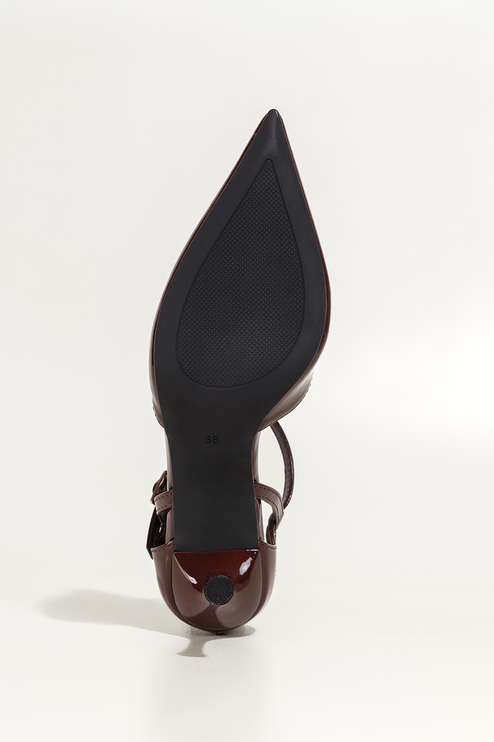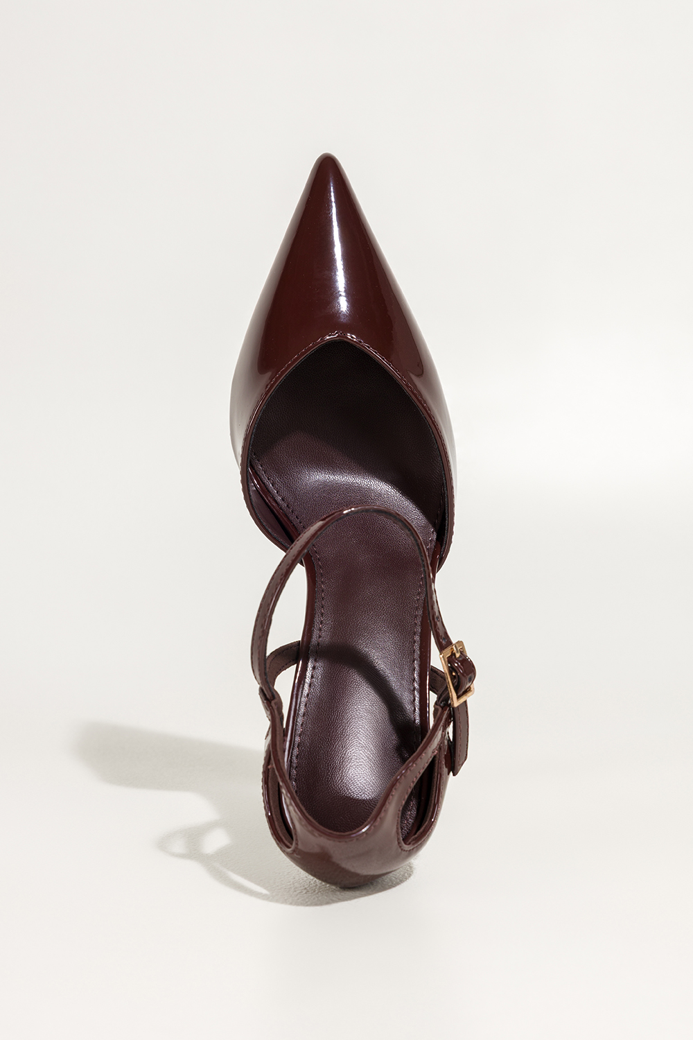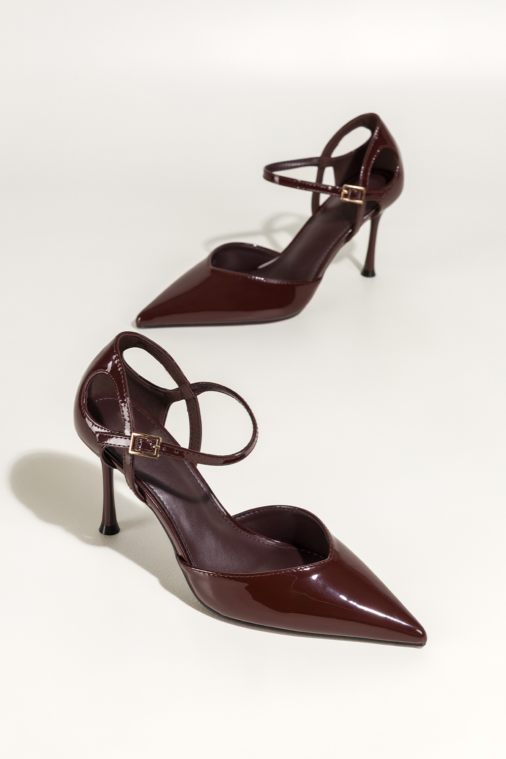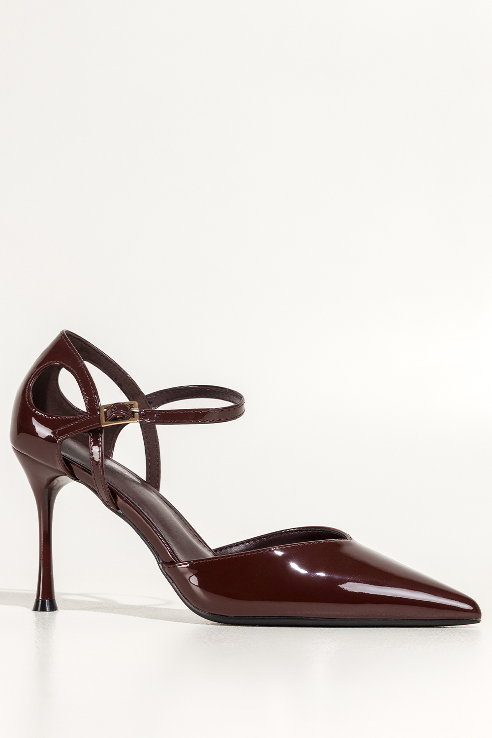 Bordowe czółenka damskie lakierowane szpilki wycięcia na cholewce pasek wokół kostki Carla 641-8
