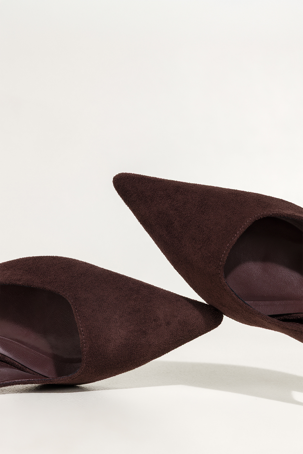 Czekoladowe szpilki damskie Sergio Leone z zamszu ekologicznego skórzana wkładka 8663