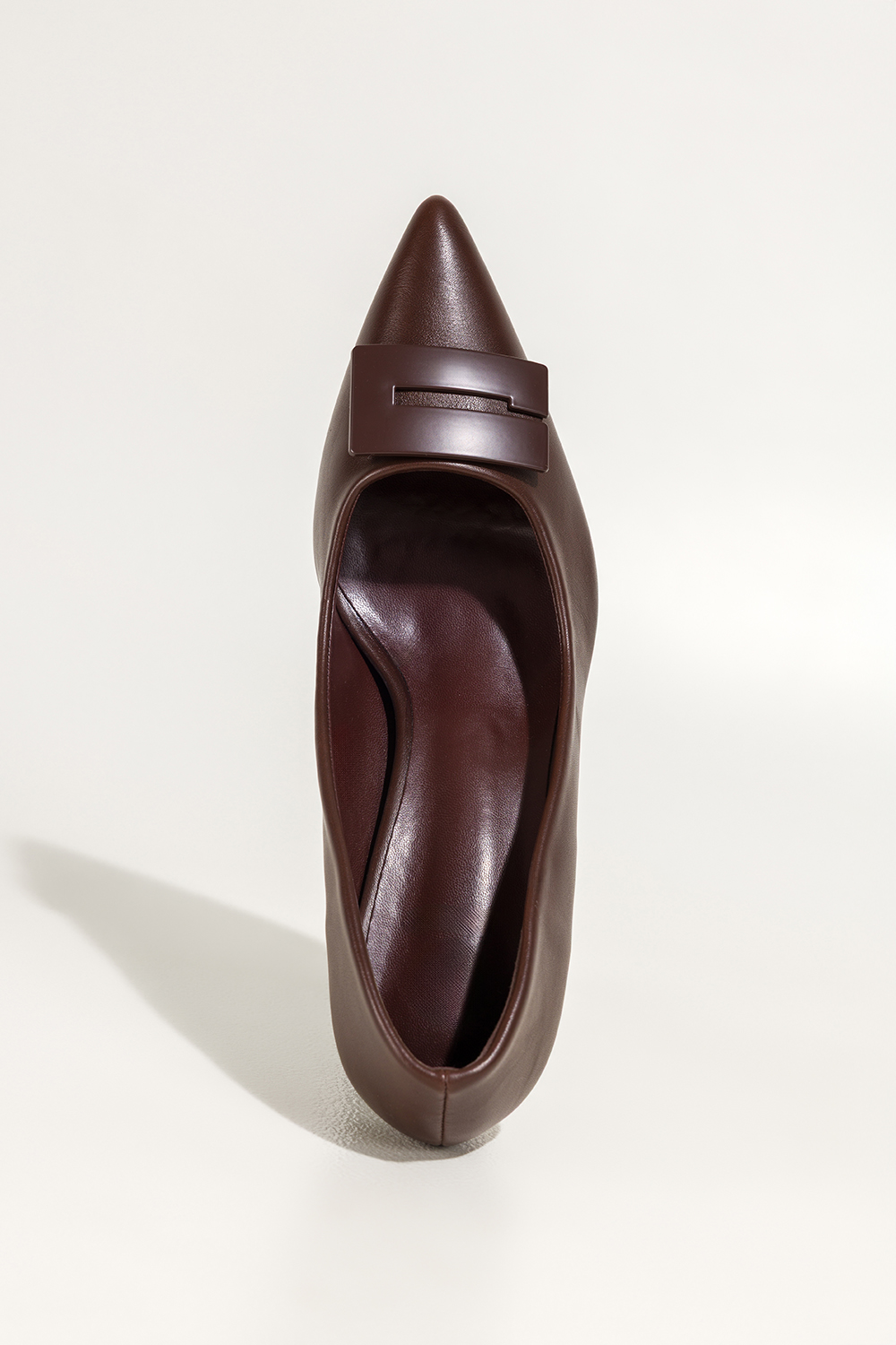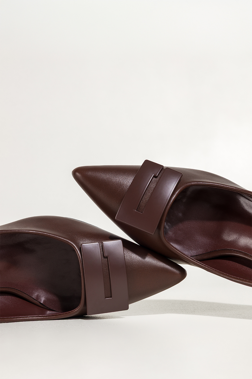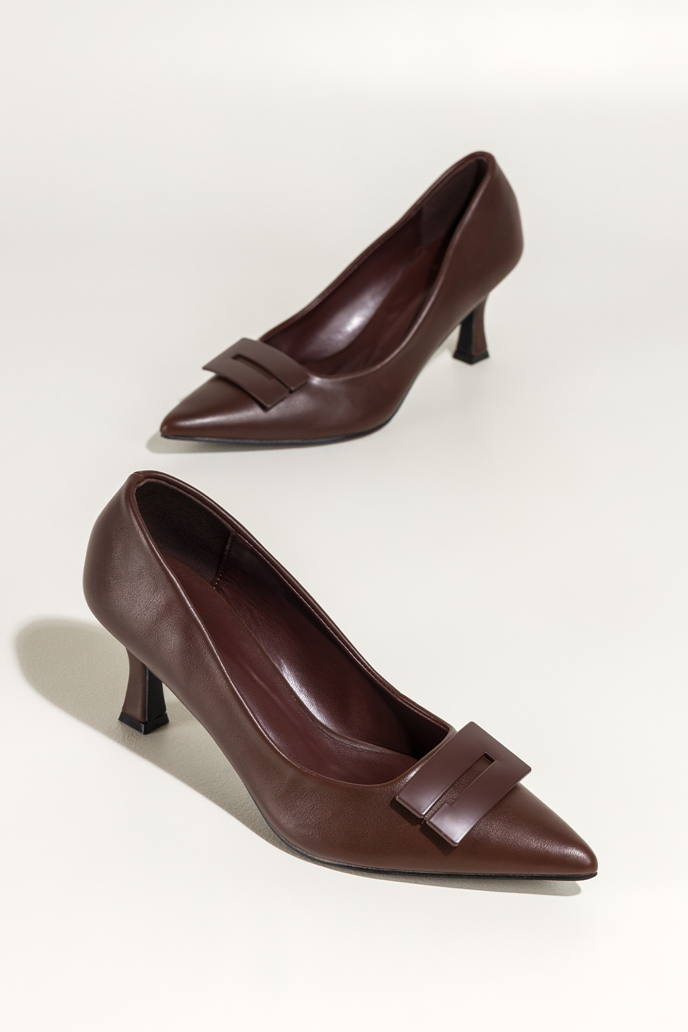 Czekoladowe czółenka damskie z ozdobą obcas klepsydra Carla 44-Z62