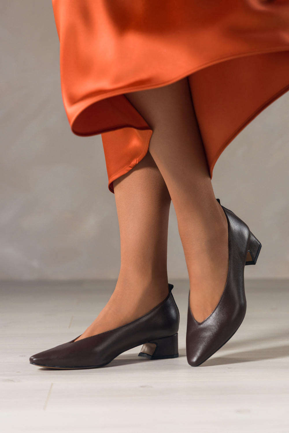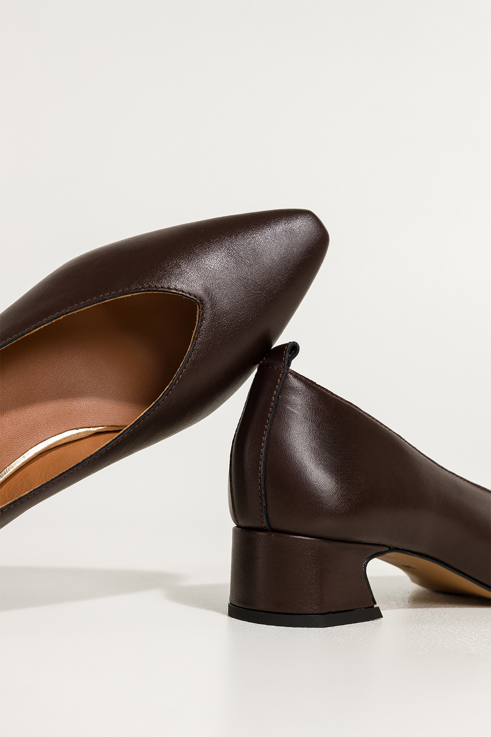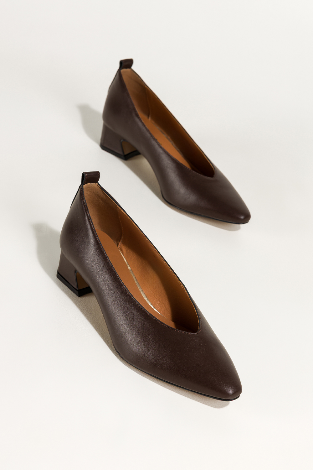 Czekoladowe czółenka skórzane damskie na niskim klocku wycięcie w cholewce PRODUKT POLSKI Casu 7235