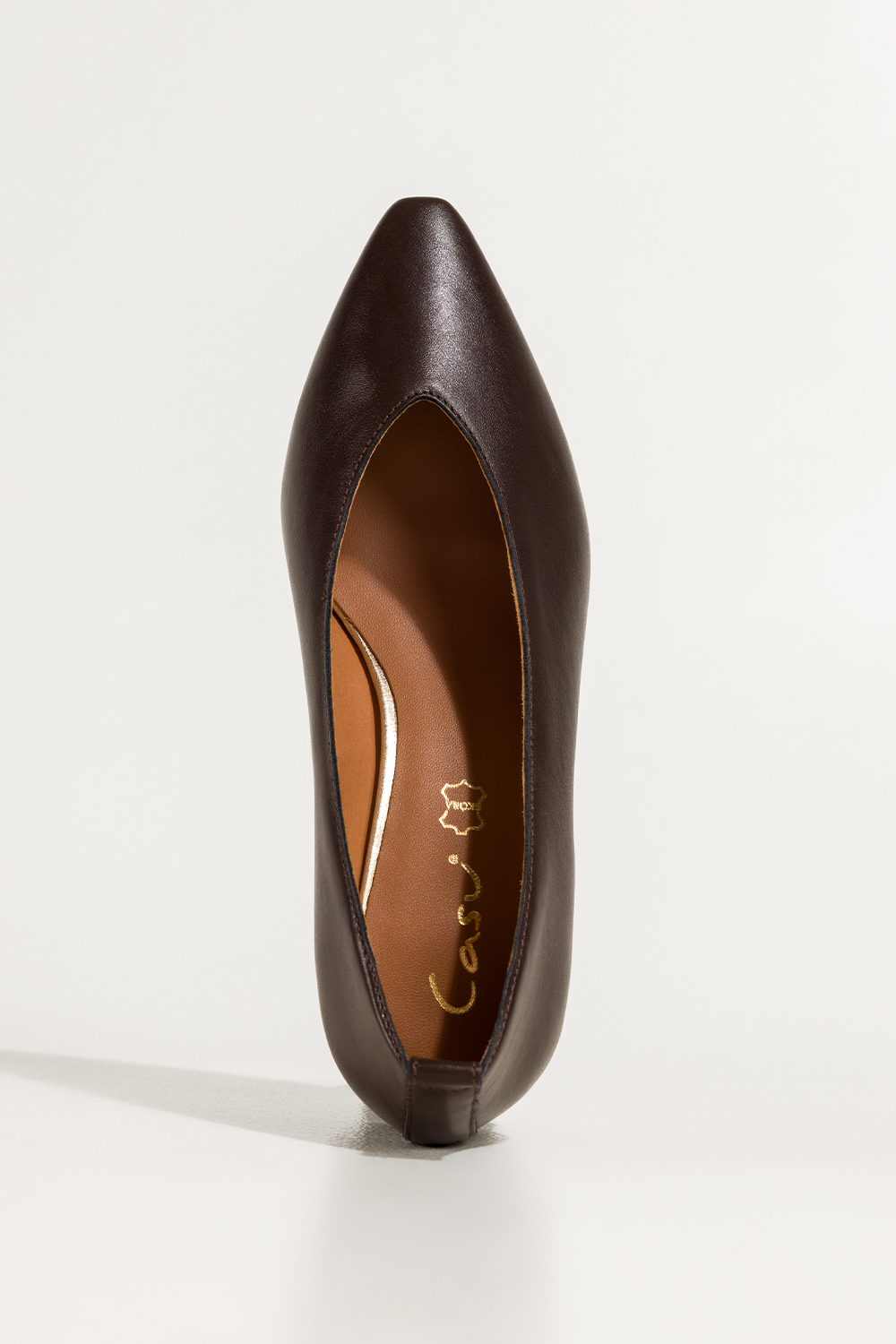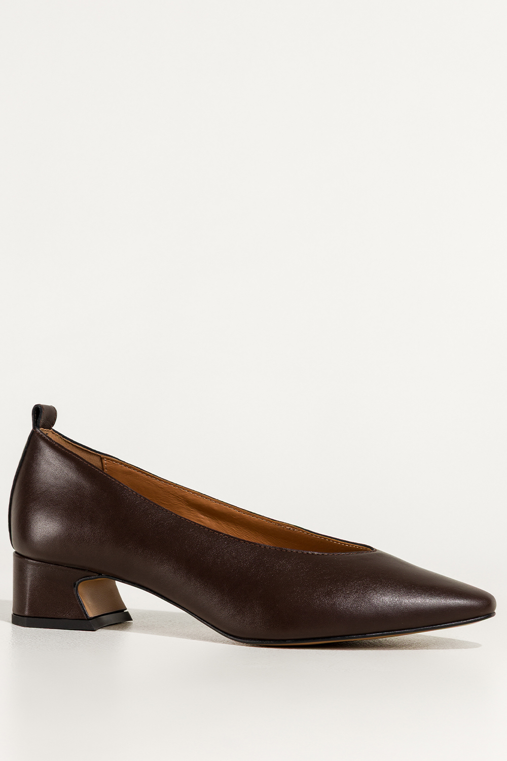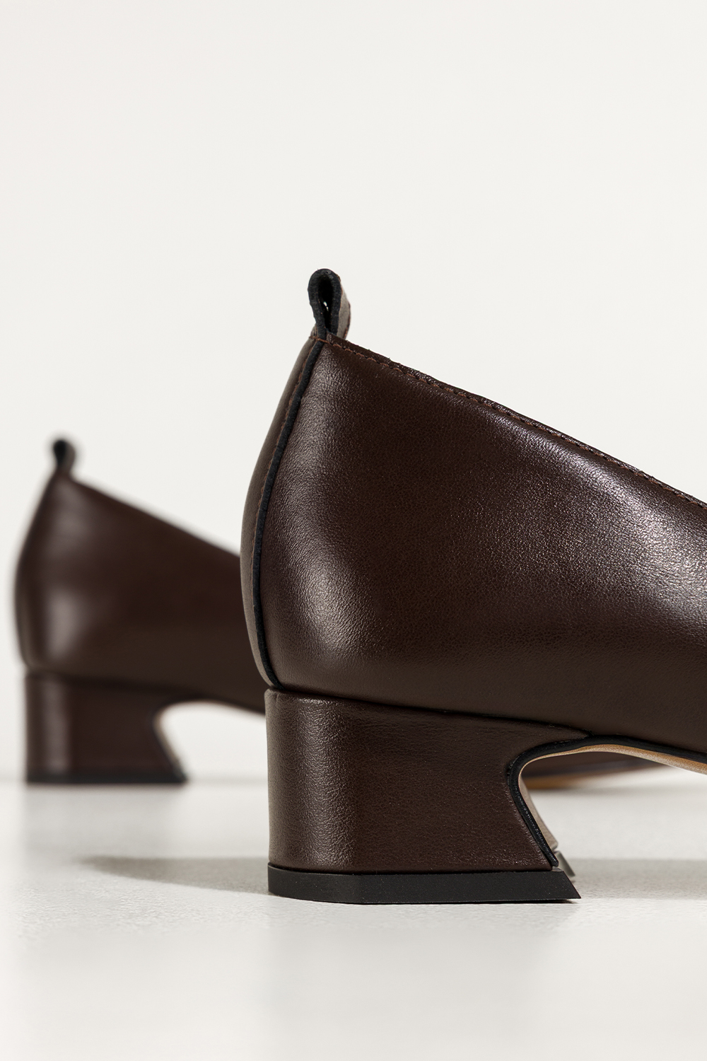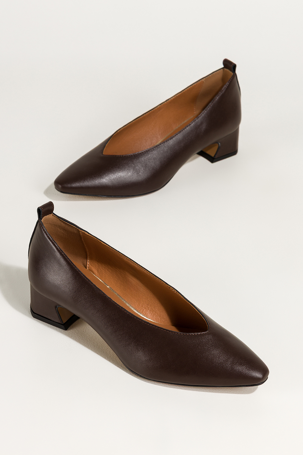 Czekoladowe czółenka skórzane damskie na niskim klocku wycięcie w cholewce PRODUKT POLSKI Casu 7235