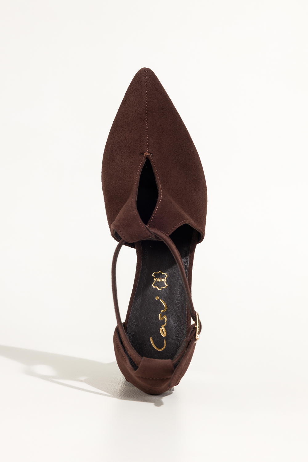Czekoladowe czółenka skórzane damskie na słupku PRODUKT POLSKI Casu 6986-648