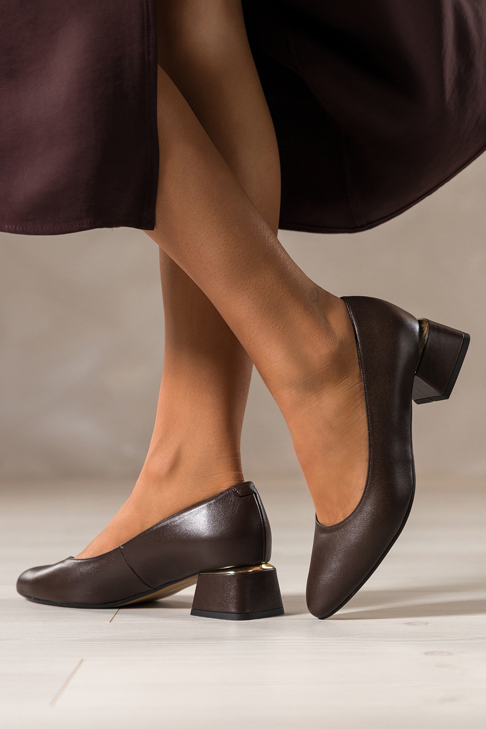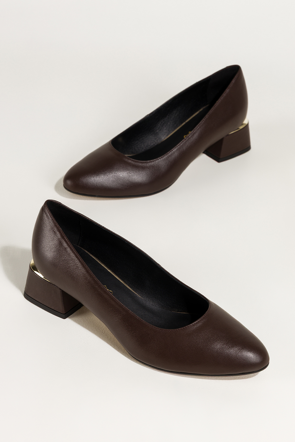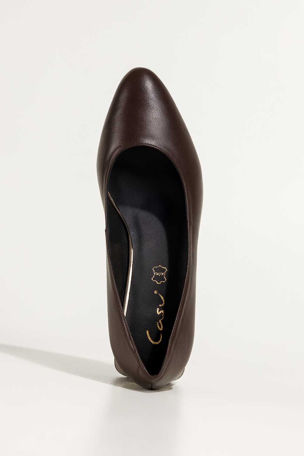 Czekoladowe czółenka skórzane damskie na szerokim ozdobnym klocku PRODUKT POLSKI Casu model 6947-704. Wykonane z wysokogatunkowej, naturalnej skóry, oferują luksusowe wykończenie i niezrównany komfort noszenia. Miękka skórzana wkładka perfekcyjnie dopasowuje się do kształtu stopy, zapewniając wygodę nawet podczas wielogodzinnego użytkowania. Jakość premium widoczna jest w każdym detalu obuwia. Zaokrąglony nosek i efektowny klocek pokryty skórą z subtelnym, złotym akcentem sprawiają, że czółenka prezentują się niezwykle elegancko i nowocześnie. To idealny wybór dla kobiet ceniących klasykę w nowoczesnym wydaniu. Wsuwany fason ułatwia szybkie zakładanie, a stabilny obcas dodaje kilku centymetrów, nie rezygnując z komfortu. Uniwersalność tych czółenek sprawia, że świetnie komponują się zarówno z biurowym garniturem, jak i wieczorową sukienką. Te czekoladowe czółenka sprawdzą się w każdej sytuacji, od codziennych spotkań, przez formalne okazje, po wyjątkowe uroczystości. Naturalne materiały pozwalają skórze oddychać, a szeroki obcas gwarantuje stabilność na każdej nawierzchni. To buty, które łączą estetykę z codzienną funkcjonalnością, stając się niezastąpionym elementem kobiecej garderoby. Cechy wyróżniające Naturalna, wysokogatunkowa skóra, trwałość i elegancja Miękka, skórzana wkładka, wygoda noszenia Stabilny obcas klocek z ozdobnym złotym detalem Wsuwany fason, szybkie zakładanie Zaokrąglony nosek, ponadczasowy wygląd Produkt polski, gwarancja jakości i dbałości o detale To inwestycja w jakość, która zostanie z Tobą na lata. Zamów już teraz na stronie Casu. pl i ciesz się modą w najlepszym, polskim wydaniu!