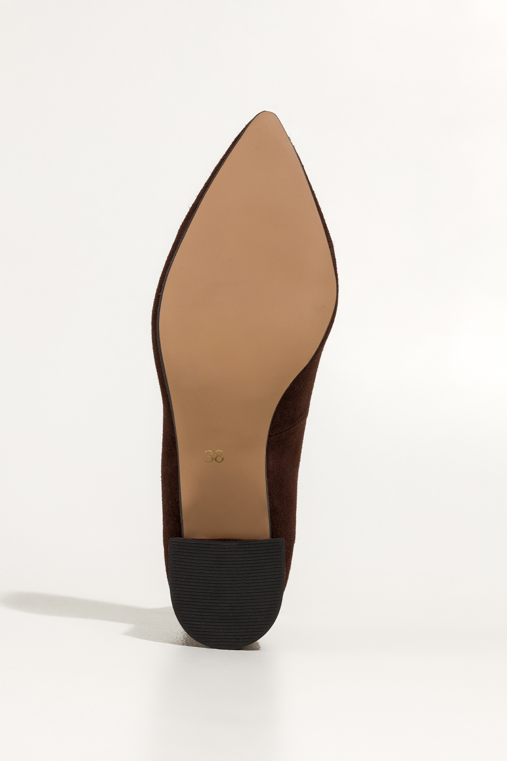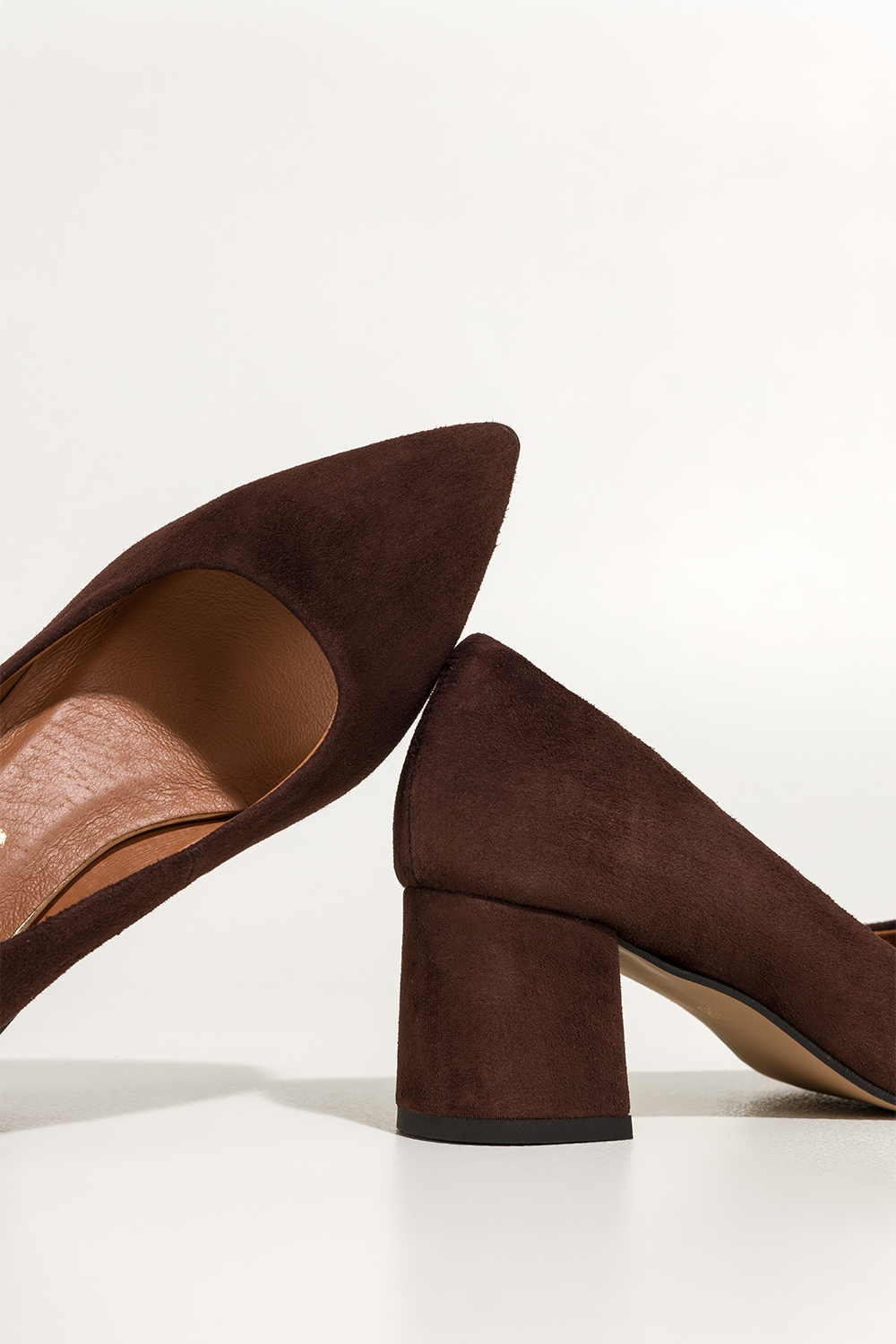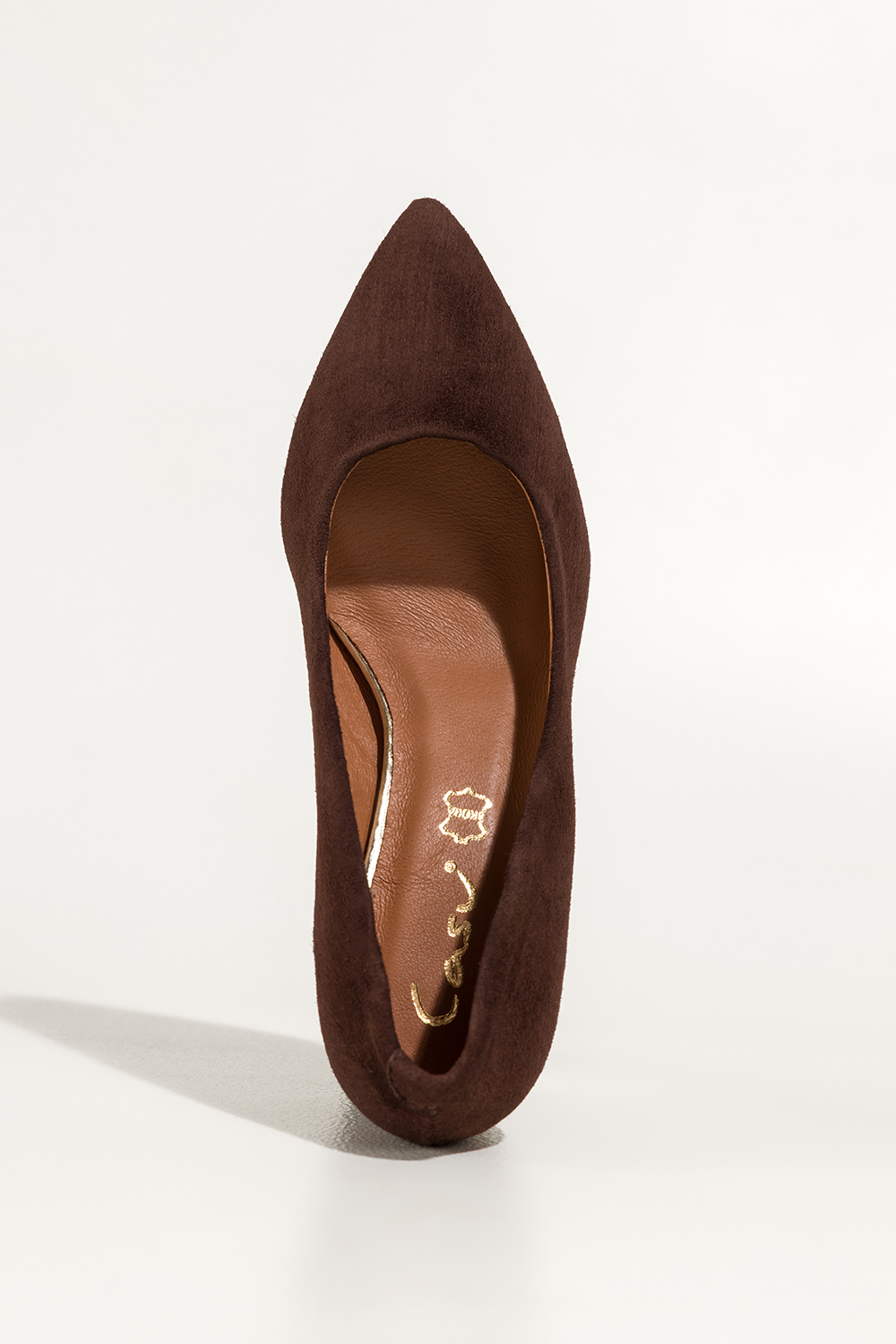 Czekoladowe czółenka skórzane damskie na szerokim słupku PRODUKT POLSKI Casu model 7198. Wykonane z miękkiej, wysokogatunkowej skóry zamszowej, zapewniają perfekcyjne dopasowanie do stopy oraz niezrównane uczucie wygody. Skórzana wkładka wewnętrzna gwarantuje optymalną cyrkulację powietrza i miękkość przy każdym kroku. Szpiczasty nosek oraz szeroki obcas typu słupek pokryty skórą zamszową nadają sylwetce smukłości i klasy, jednocześnie zachowując stabilność i komfort noszenia. Ten model doskonale komponuje się z eleganckimi sukienkami, garniturami i bardziej casualowymi stylizacjami. Uniwersalny, ciepły odcień czekoladowego brązu sprawia, że czółenka są łatwe do zestawienia zarówno z klasycznymi, jak i modowymi stylami. To idealne obuwie na ważne spotkania, randki i uroczystości. Wsuwana konstrukcja pozwala na szybkie i wygodne zakładanie, a solidne wykonanie gwarantuje stabilność nawet przy długotrwałym noszeniu. Dzięki uniwersalnemu fasonowi i neutralnemu kolorowi, model ten sprawdzi się zarówno w pracy, jak i podczas wieczornych wyjść. Ich elegancki wygląd i komfortowe wnętrze sprawiają, że są idealnym wyborem dla kobiet ceniących jakość i styl w codziennym życiu. Cechy wyróżniające Wysokogatunkowa skóra zamszowa, miękka, oddychająca i trwała Miękka, skórzana wkładka zapewniająca wygodę przez cały dzień Szeroki obcas typu słupek, stabilny i stylowy Elegancki szpiczasty nosek podkreślający linię stopy Uniwersalny czekoladowy kolor pasujący do wielu stylizacji Produkt polski, gwarancja jakości i staranności wykonania Zrób krok w stronę wyjątkowej klasy i dodaj czółenka do swojej kolekcji, dostępne teraz w sklepie Casu.