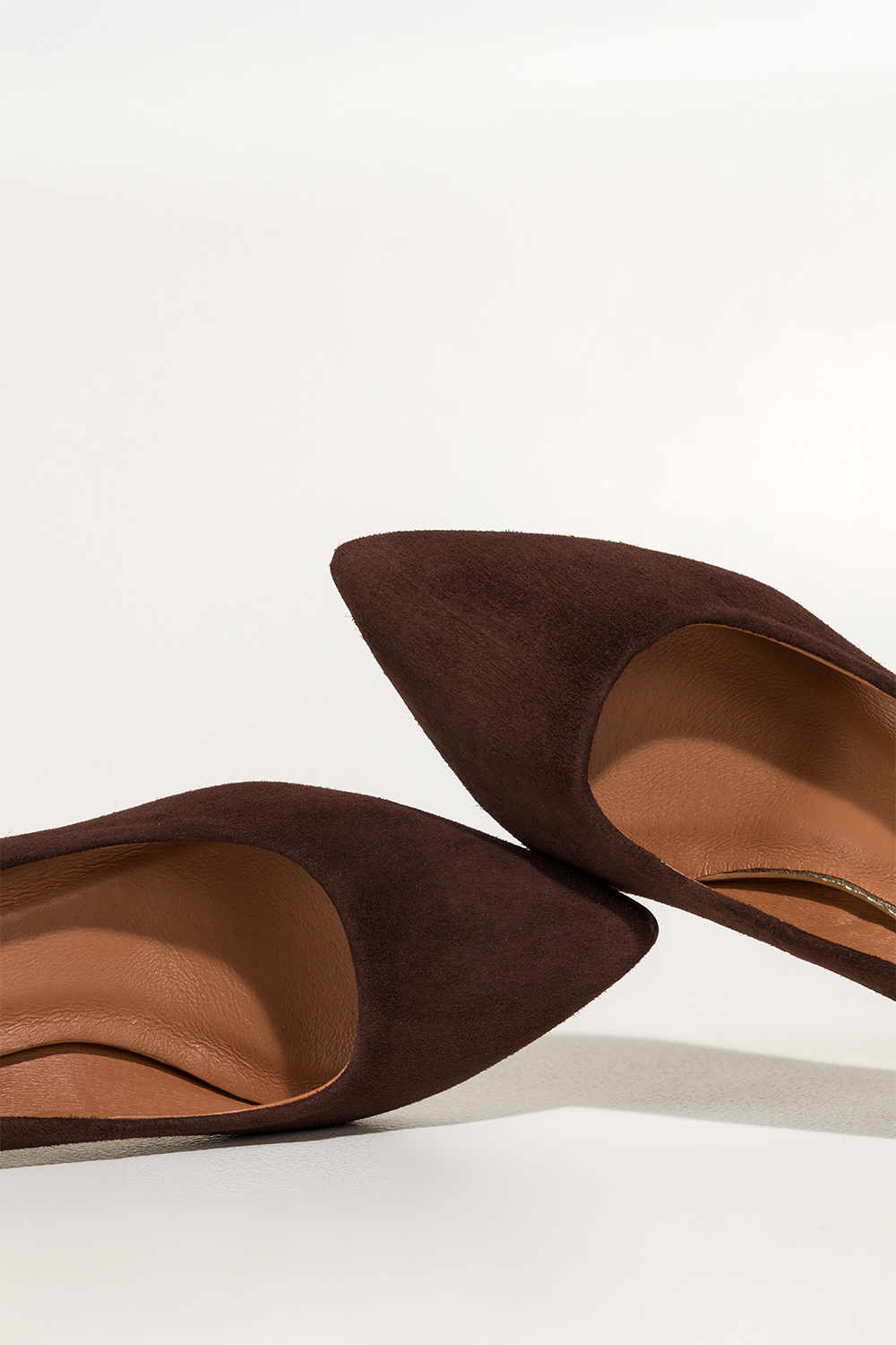 Czekoladowe czółenka skórzane damskie obcas klepsydra PRODUKT POLSKI Casu 7575-704