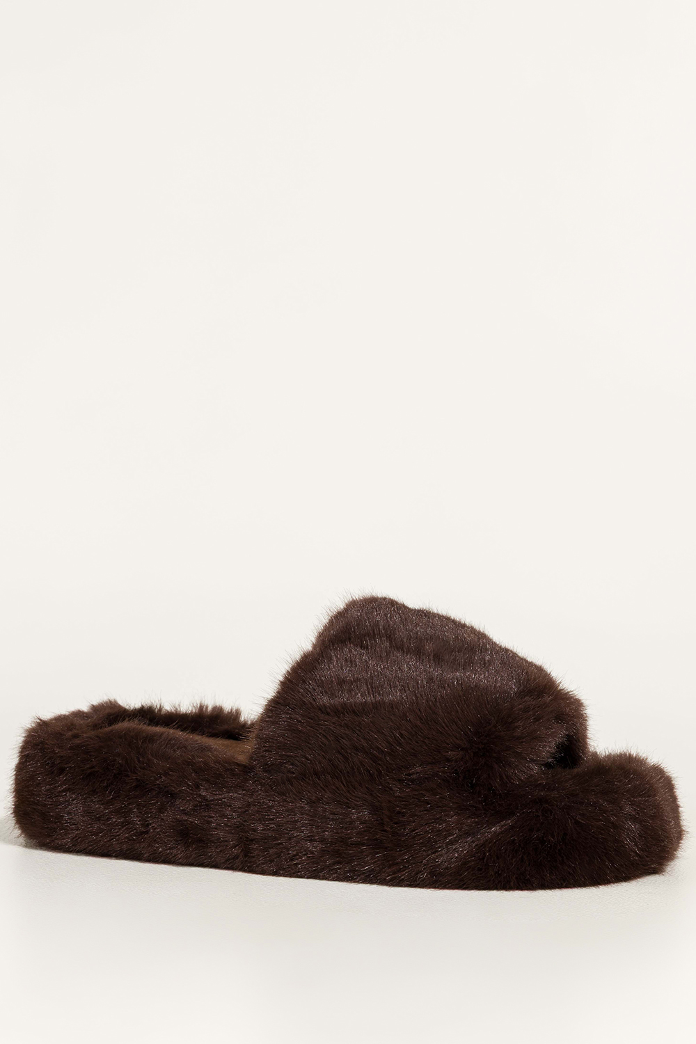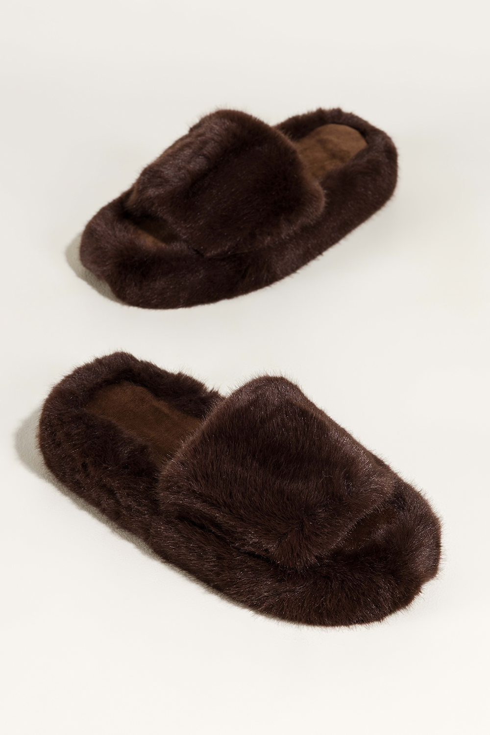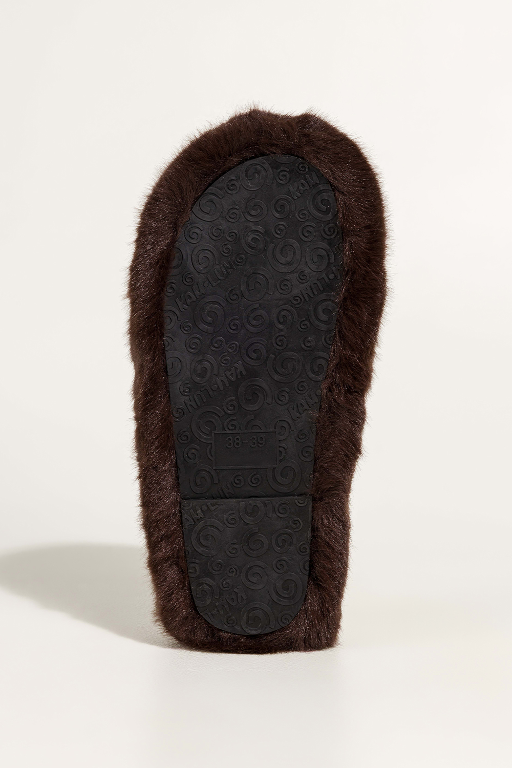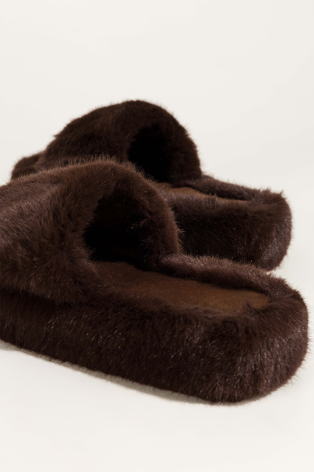 Czekoladowe kapcie damskie obuwie domowe futrzane na platformie Casu NG-43