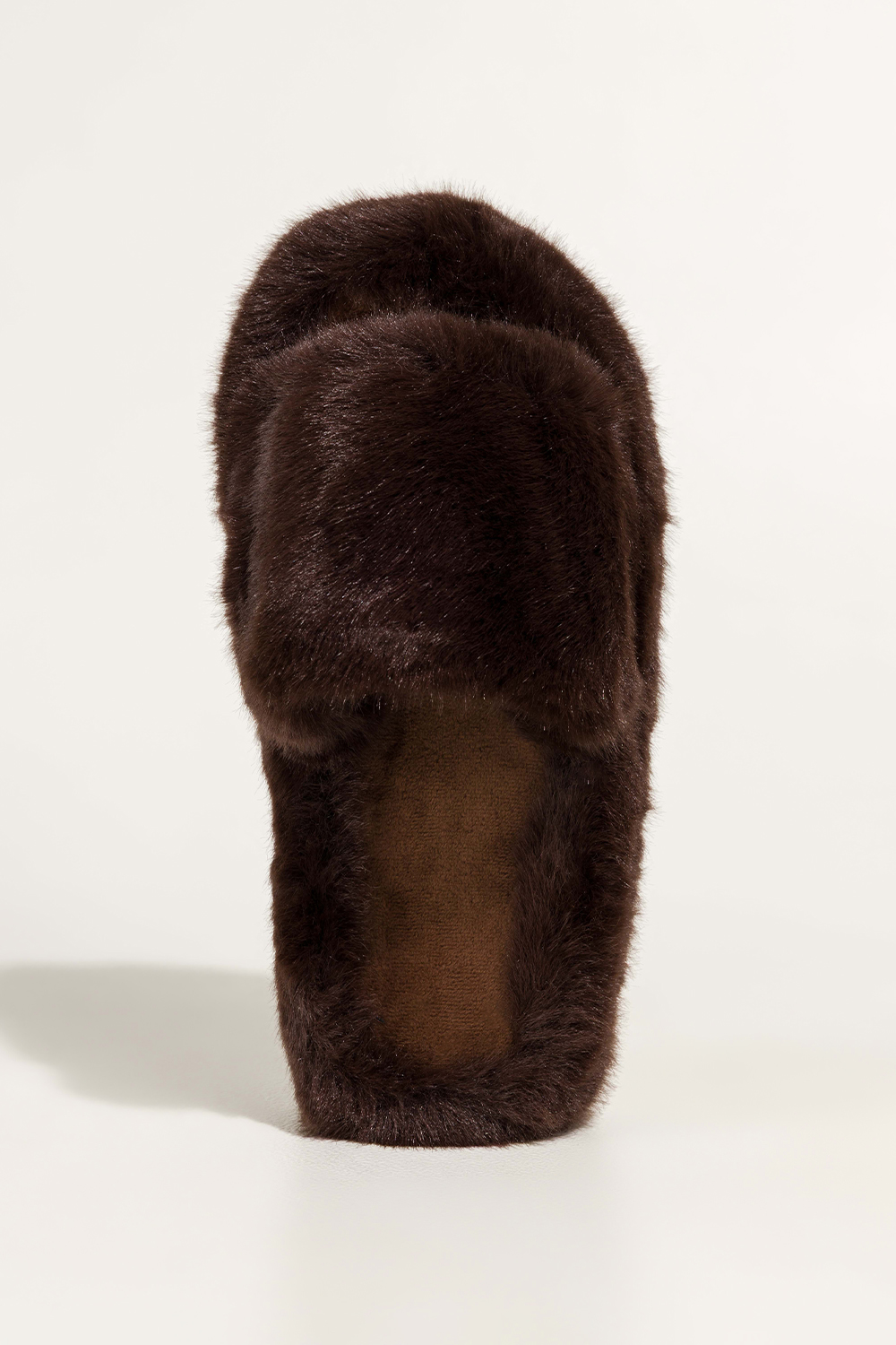 Czekoladowe kapcie damskie obuwie domowe futrzane paski na krzyż Casu NG-42