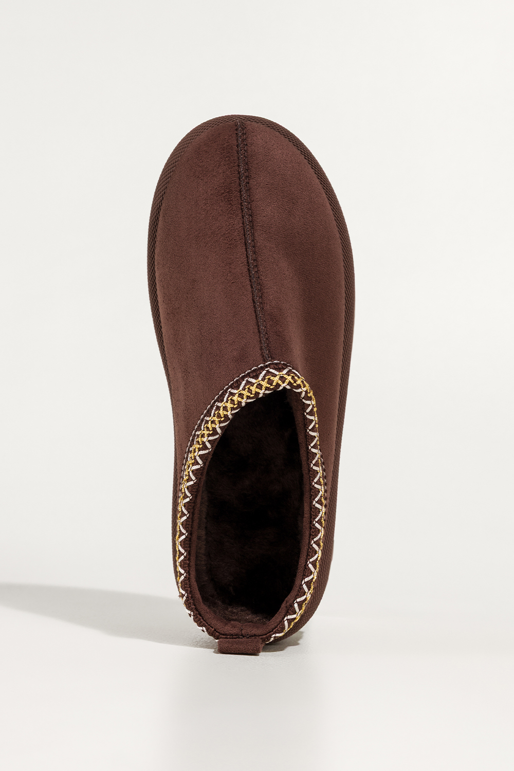Czekoladowe kapcie damskie z futerkiem na platformie ozdobne obszycie Casu VE-492