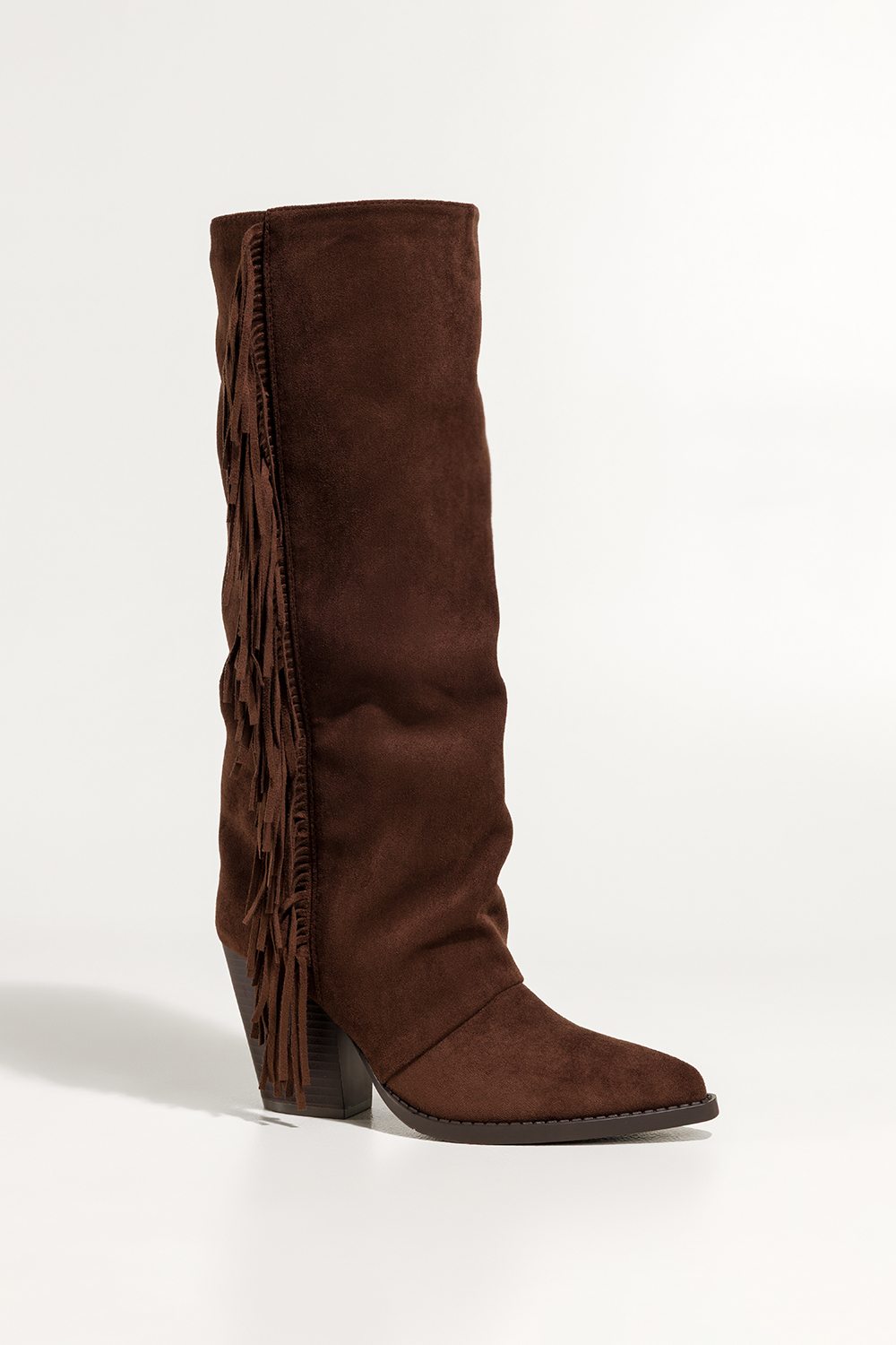 Czekoladowe kozaki damskie kowbojki z frędzlami szeroka cholewka ścięty obcas klocek Carla model ICQ703. Wykonane z wysokogatunkowej zamszowej skóry ekologicznej, zapewniają trwałość i elegancki wygląd. Wnętrze wyściełane jest miękkim, przyjemnym w dotyku futerkiem, które gwarantuje ciepło nawet w chłodniejsze dni. Stabilny, ścięty obcas typu klocek zapewnia komfort noszenia i odpowiednią amortyzację, czyniąc ten model idealnym wyborem na co dzień. To idealne połączenie klasycznego stylu western z nowoczesnymi trendami. Szeroka cholewka ozdobiona długimi, efektownymi frędzlami dodaje im dynamiki i charakteru. Szpiczasty nosek optycznie wysmukla nogę, a długość przed kolano doskonale komponuje się zarówno z sukienkami, jak i jeansami. Kolor głębokiej czekolady podkreśla wyjątkowość modelu i pasuje do większości jesienno-zimowych stylizacji, dodając im ciepła i wyrazistości. Obuwie, które sprawdzi się w wielu sytuacjach, od spaceru po mieście, przez spotkanie z przyjaciółmi, aż po wieczorne wyjście. Łatwość zakładania dzięki wygodnemu zamkowi, szeroka cholewka gwarantująca komfort także przy pełniejszych łydkach oraz stabilna konstrukcja sprawiają, że kozaki te to synonim praktyczności. Ich uniwersalność i ponadczasowy design sprawiają, że stanowią niezbędny element każdej jesienno-zimowej garderoby. Cechy wyróżniające Zamszowa skóra ekologiczna wysokiej jakości Miękkie ocieplenie z delikatnego futerka Ścięty obcas typu klocek zapewniający stabilność Efektowne frędzle i szeroka cholewka Klasyczny szpiczasty nosek Uniwersalny kolor czekoladowy pasujący do wielu stylizacji Nie pozwól, by ominęła Cię okazja na wyróżnienie się tej jesieni i zimy! Postaw na niezwykle stylowe i komfortowe kozaki kowbojki i poczuj się pewnie w każdej sytuacji. Kup teraz na Casu. pl, miejscu, gdzie styl spotyka się z wygodą!