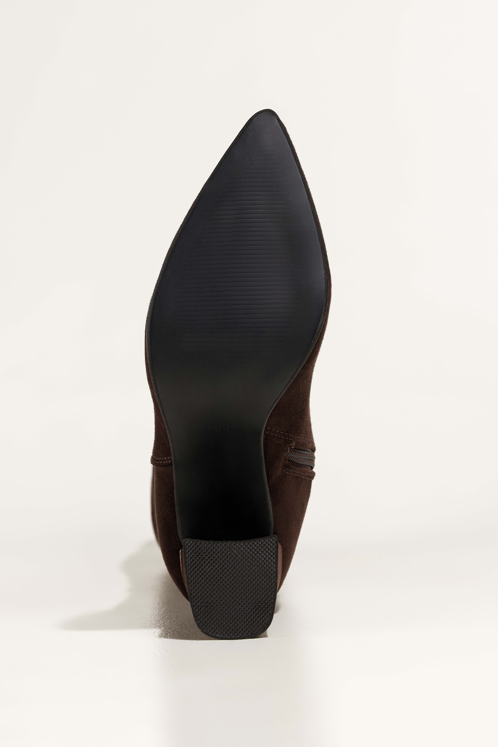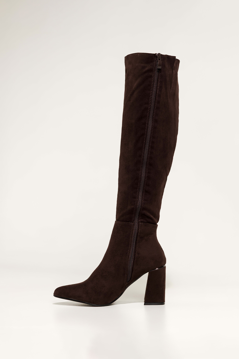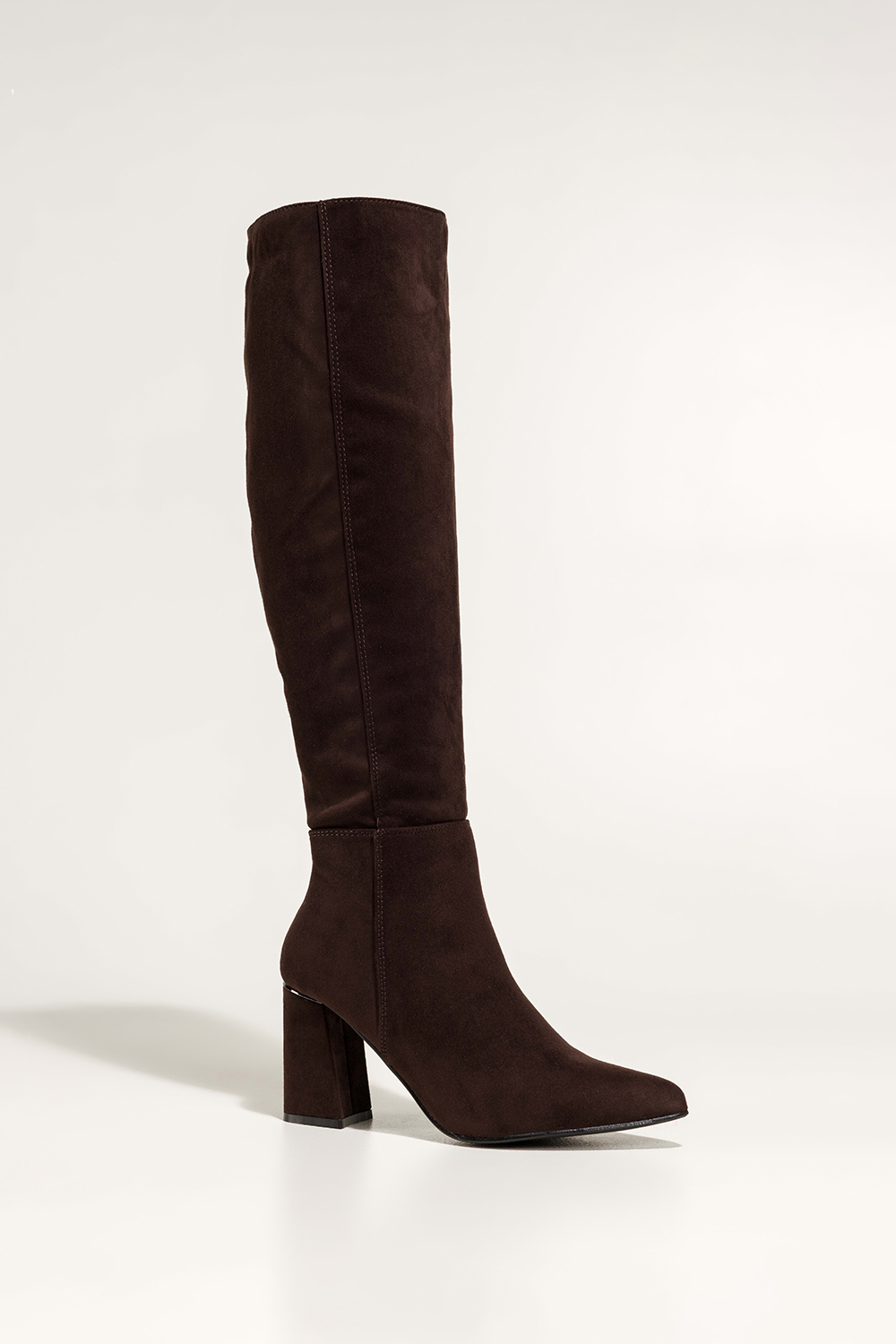 Czekoladowe kozaki damskie na szerokim ozdobnym słupku guma w cholewce Casu model D25WX5-BR, to połączenie elegancji i funkcjonalności. Wykonane z wysokogatunkowego zamszu ekologicznego, zapewniają trwałość, miękkość oraz perfekcyjne dopasowanie do kształtu nogi. Elastyczna guma po wewnętrznej stronie cholewki zwiększa komfort i ułatwia zakładanie. Wnętrze z materiału oraz wkładka ze skóry ekologicznej gwarantują ciepło i wygodę nawet w chłodniejsze dni. Idealne na długie spacery, do pracy czy wieczorne wyjścia. Model wyróżnia się szpiczastym noskiem oraz szerokim, stabilnym obcasem ze stalową ozdobą, który nie tylko optycznie wysmukla sylwetkę, ale dodaje butom luksusowego charakteru. Obcas pokryty zamszem ekologicznym zachwyca spójnym designem i dbałością o detale. Dzięki długości do kolana kozaki doskonale podkreślają nogi i pasują zarówno do spódnic, sukienek, jak i rurek. Czekoladowy odcień sprawia, że są niezwykle uniwersalne, pasują do jesiennych i zimowych stylizacji w odcieniach beżu, burgundu czy klasycznej czerni. Zamek błyskawiczny ułatwia zakładanie, a elastyczna cholewka zapewnia wygodne dopasowanie do różnych typów łydki. To doskonały wybór dla kobiet szukających butów na co dzień, do pracy, na spotkania towarzyskie czy eleganckie wyjścia. Uniwersalność modelu sprawia, że możesz nosić je przez wiele sezonów, to inwestycja w ponadczasowy styl. Cechy wyróżniające Wysokogatunkowy zamsz ekologiczny Stabilny, szeroki obcas z ozdobą Szpiczasty nosek podkreślający kobiecy styl Elastyczna guma w cholewce dla wygody Wszechstronny, czekoladowy kolor Łatwe zakładanie dzięki suwakowi Nie zwlekaj, postaw na kobiecą elegancję i komfort. Zamów je już teraz w sklepie Casu. pl i przekonaj się, jak doskonale mogą uzupełnić Twoją garderobę! Kozaki posiadają wąską cholewkę, dlatego najlepiej sprawdzą się na szczupłą łydkę.