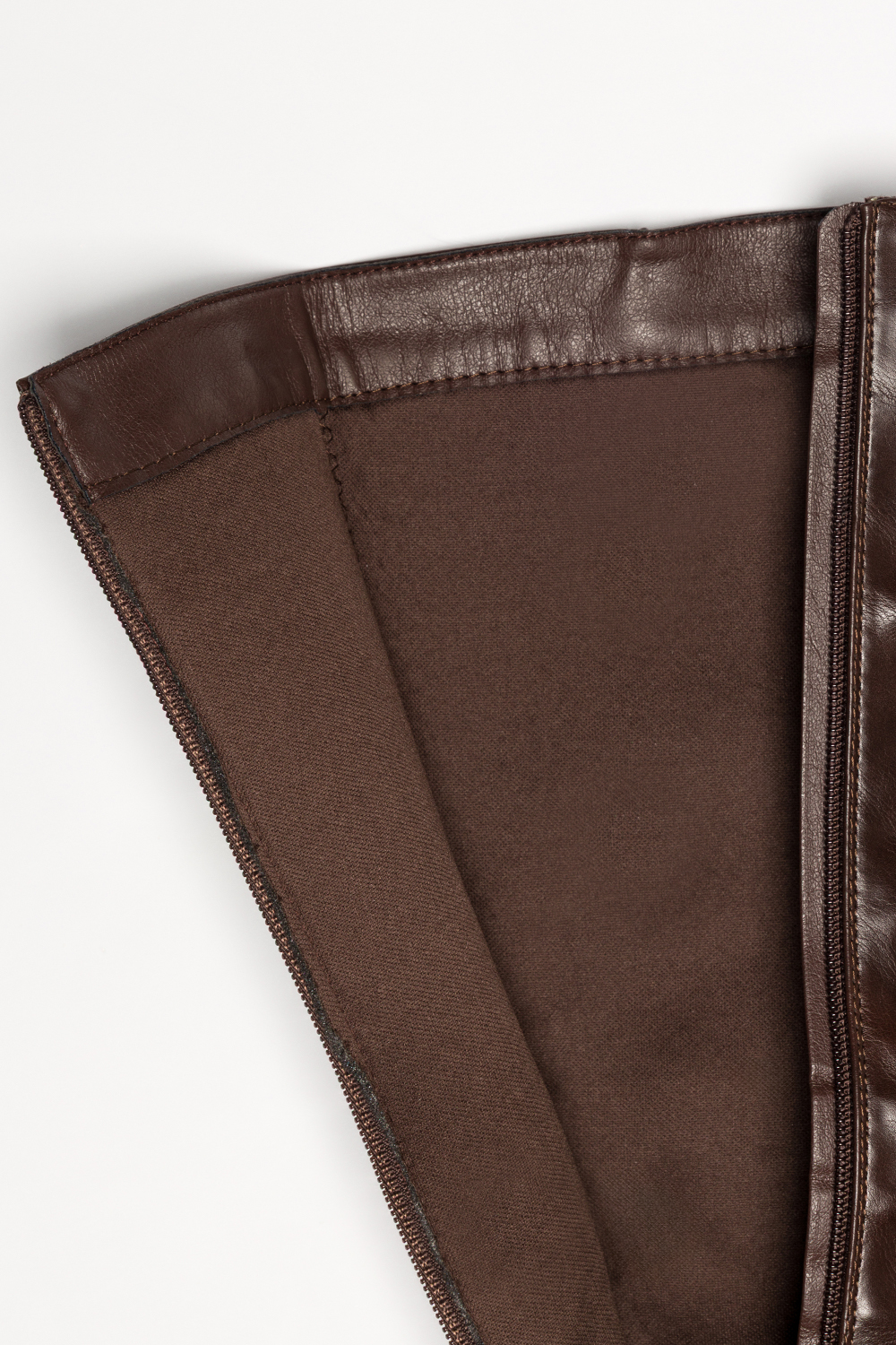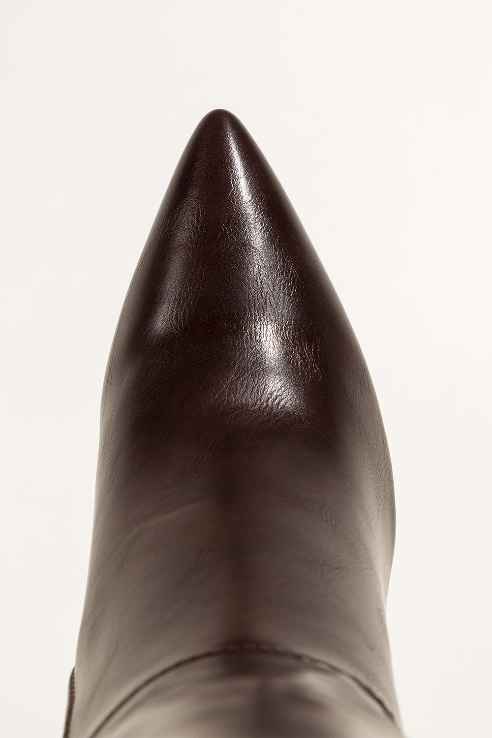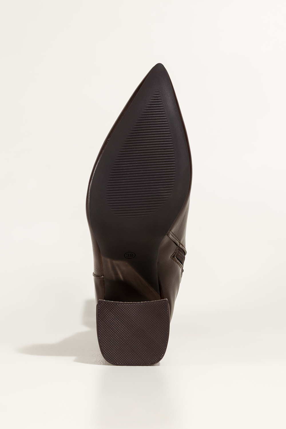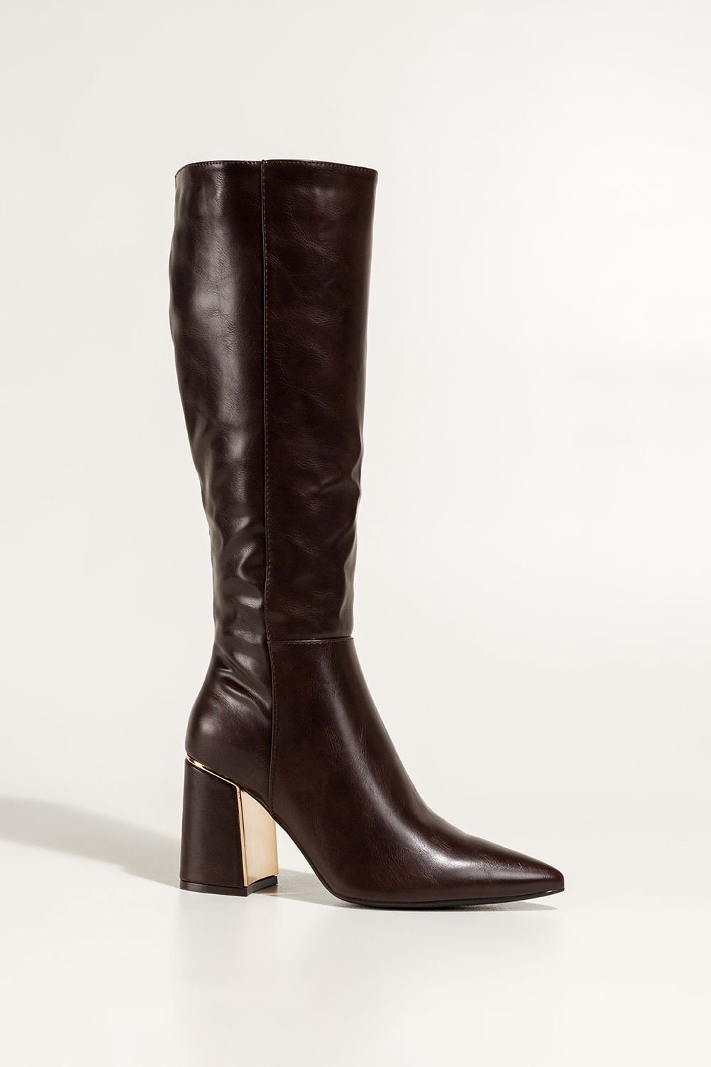 Czekoladowe kozaki damskie przed kolano obcas klocek ze złotym elementem Casu model 2338Z. Wykonane z wysokogatunkowej skóry ekologicznej, oferują trwałość i komfort, który docenisz przy każdym kroku. Wnętrze i wkładka z miękkiego materiału zapewniają przyjemne dopasowanie, nawet podczas wielogodzinnego noszenia. Szpiczasty nosek i smukła linia cholewki dodają sylwetce lekkości, a obcas typu klocek gwarantuje stabilność bez rezygnacji z kobiecego szyku. Czekoladowy odcień skóry doskonale wpisuje się w jesienno-zimowe stylizacje, podkreślając ciepło i głębię Twojego outfitu. Złoty akcent na obcasie dodaje butom ekskluzywnego charakteru, czyniąc je idealnym wyborem zarówno na co dzień, jak i na specjalne okazje. Te kozaki znakomicie komponują się z płaszczami, sukienkami i dzianinowymi zestawami. Uniwersalny krój sprawia, że dopasują się do wielu stylów, od klasyki po nowoczesny minimalizm. Zapinane na zamek, kozaki są łatwe do założenia i zdejmowania, a jednocześnie świetnie trzymają się nogi. Wysoka cholewka skutecznie chroni przed chłodem, a szeroki obcas zapewnia komfort na każdej nawierzchni. To idealne buty do pracy, na spotkania, spacery po mieście czy wieczorne wyjścia. Dzięki zastosowanym materiałom są odporne na codzienne użytkowanie, a przy tym łatwe w pielęgnacji. Cechy wyróżniające Wysokogatunkowa skóra ekologiczna o luksusowym wykończeniu Stabilny obcas typu klocek pokryty skórą ze złotym akcentem Szpiczasty nosek dodający elegancji i subtelności Miękkie wnętrze i wkładka z materiału dla maksymalnego komfortu Uniwersalny design, pasuje do wielu stylizacji i okazji Zamek ułatwiający szybkie zakładanie i zdejmowanie Ich elegancki, a zarazem praktyczny charakter sprawia, że będą niezastąpionym elementem Twojej garderoby. Zamów już dziś na Casu i ciesz się pewnym krokiem w każdej sytuacji!