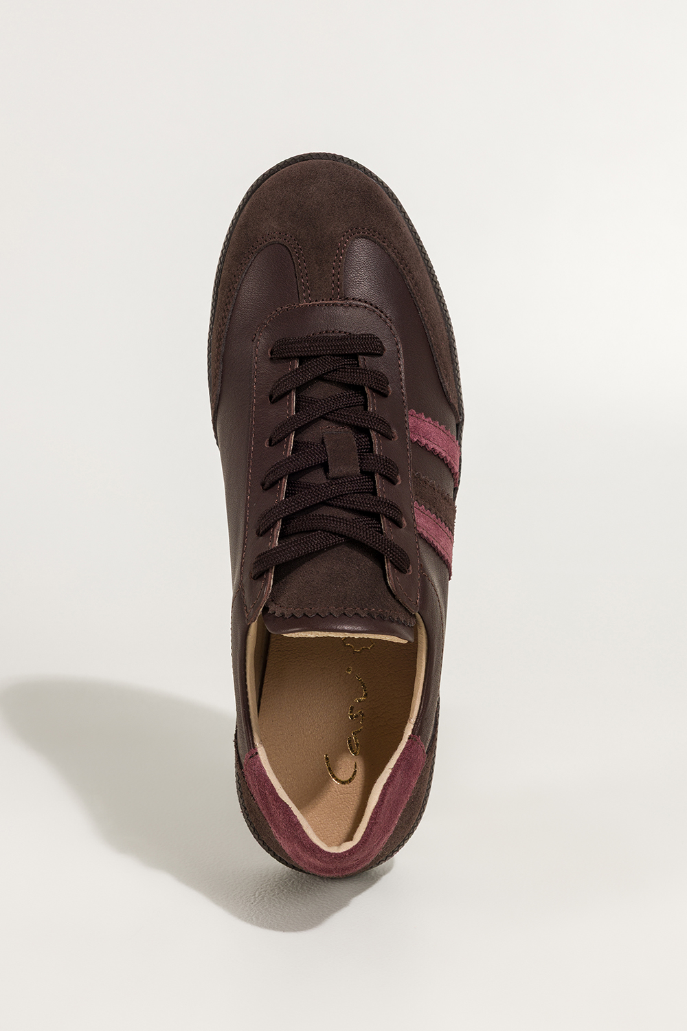 Brązowe sneakersy skórzane damskie buty sportowe z beżowymi wstawkami sznurowane PRODUKT POLSKI Cas