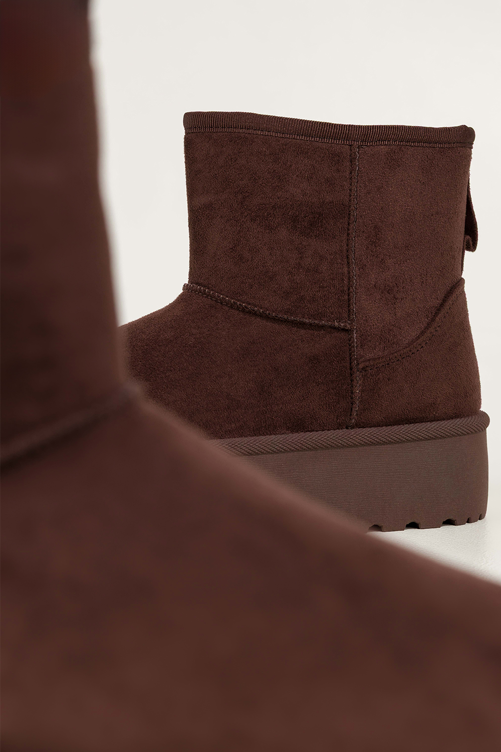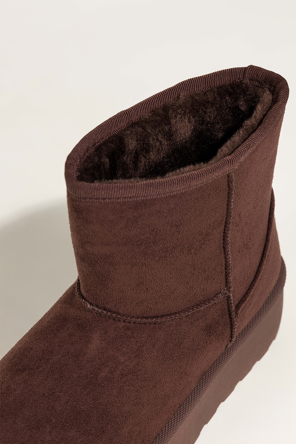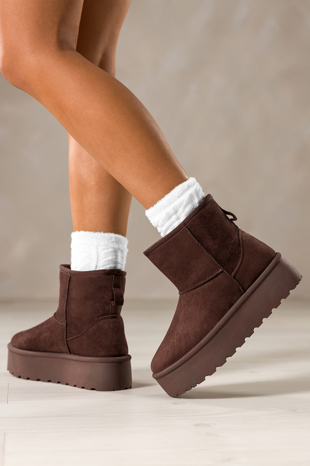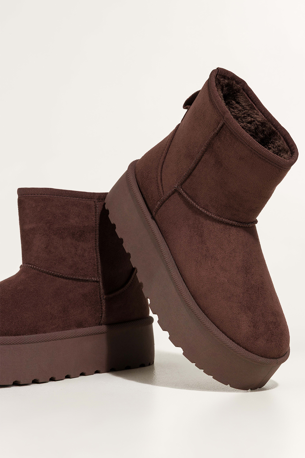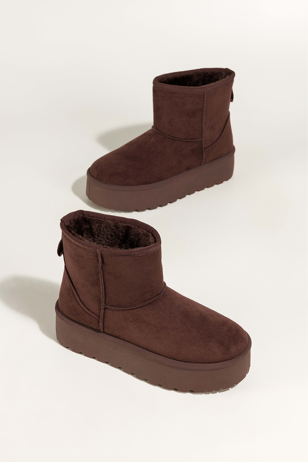 Czekoladowe śniegowce mukluki damskie na bieżnikowanej platformie Casu 1941