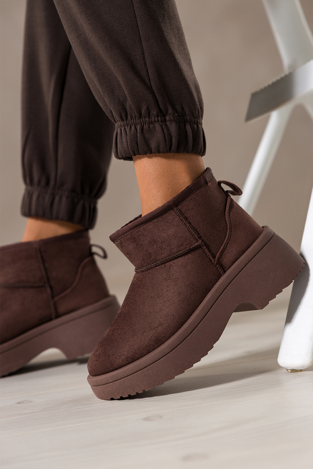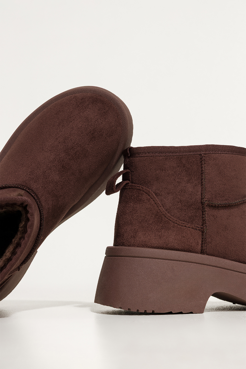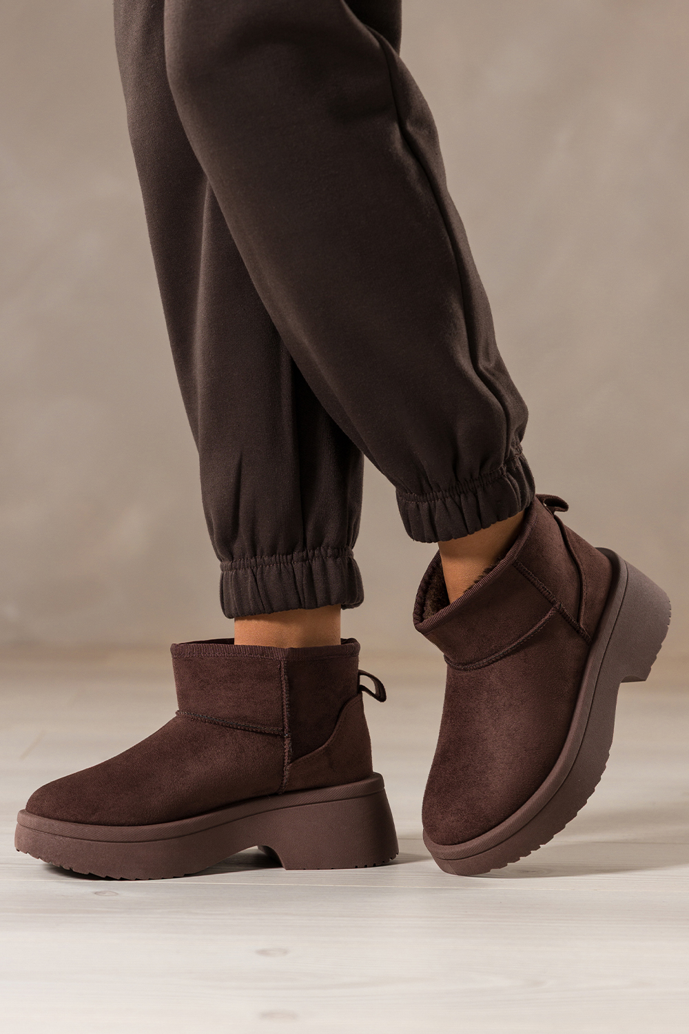 Czekoladowe śniegowce mukluki damskie na bieżnikowanej platformie Casu YP11-86. Wykonane z miękkiej, wysokogatunkowej zamszowej skóry ekologicznej, zapewniają trwałość i estetykę na lata. Wnętrze wyściełane jest gęstym, puszystym futerkiem, które gwarantuje ciepło nawet podczas najchłodniejszych dni. Wsuwany fason i szerokie wykończenie cholewki sprawiają, że buty idealnie dopasowują się do stopy, zapewniając komfort noszenia przez cały dzień. Dzięki swojej czekoladowej barwie i modnemu fasonowi mukluki świetnie komponują się zarówno z jeansami, jak i legginsami czy sukienkami. Ich uniwersalny wygląd pozwala tworzyć zarówno casualowe, jak i bardziej eleganckie stylizacje. Bieżnikowana platforma nadaje im charakteru, jednocześnie poprawiając stabilność i amortyzację podczas chodzenia. To idealny wybór dla kobiet ceniących styl, funkcjonalność i wygodę w jednym produkcie. Mukluki to buty stworzone z myślą o zimowych wyzwaniach. Ich solidnie bieżnikowana podeszwa zapewnia stabilność na śliskich nawierzchniach, co znacząco zwiększa bezpieczeństwo użytkowania. Zaokrąglony nosek pozwala na naturalne ułożenie palców, a wysoka cholewka chroni przed chłodem i wiatrem. To idealne obuwie na spacery, zakupy czy codzienne wyjścia w zimowe dni, wygodne, ciepłe i niezawodne. Cechy wyróżniające Wysokiej jakości zamszowa skóra ekologiczna Miękkie i ciepłe futerko wewnątrz Bieżnikowana platforma Uniwersalny, wsuwany fason Modny czekoladowy kolor pasujący do wielu stylizacji Nie rezygnuj z modnego wyglądu, nawet gdy temperatura spada poniżej zera. Czekoladowe śniegowce to idealny wybór dla kobiet szukających ciepła, wygody i stylu w jednym. Kup już teraz na stronie Casu i ciesz się niezawodnym obuwiem, które podbije Twoją zimową garderobę! Obuwie ma zaniżoną rozmiarówkę, dlatego przed zakupem prosimy o dokładne zapoznanie się z tabelą rozmiarów, aby dobrać idealny rozmiar.
