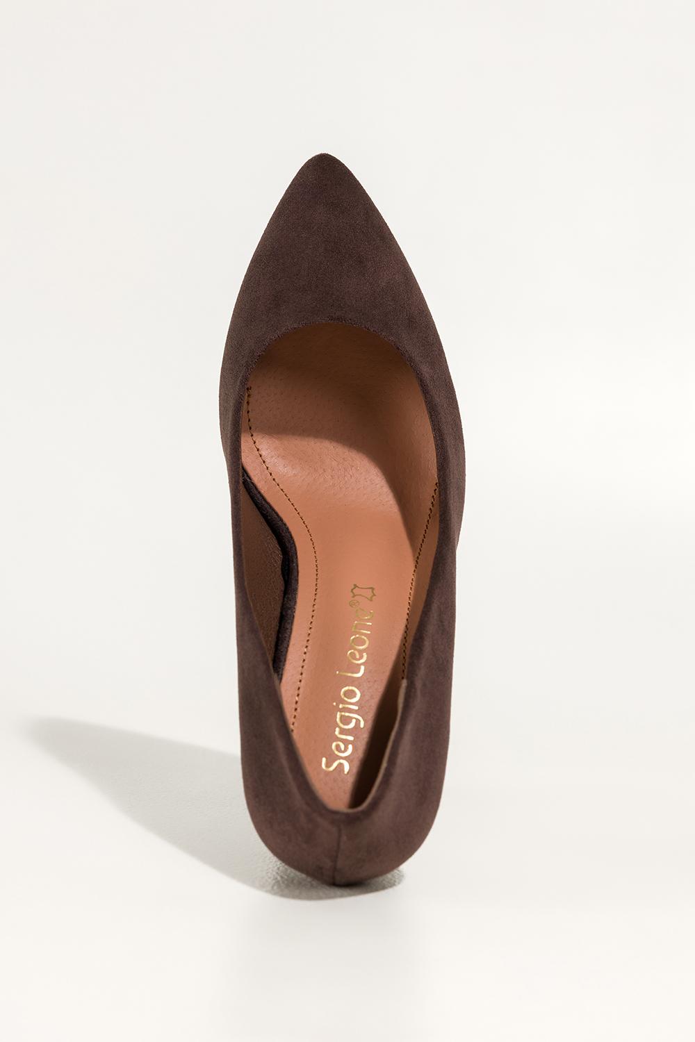 Czekoladowe szpilki damskie Sergio Leone klasyczne skórzana wkładka 8660