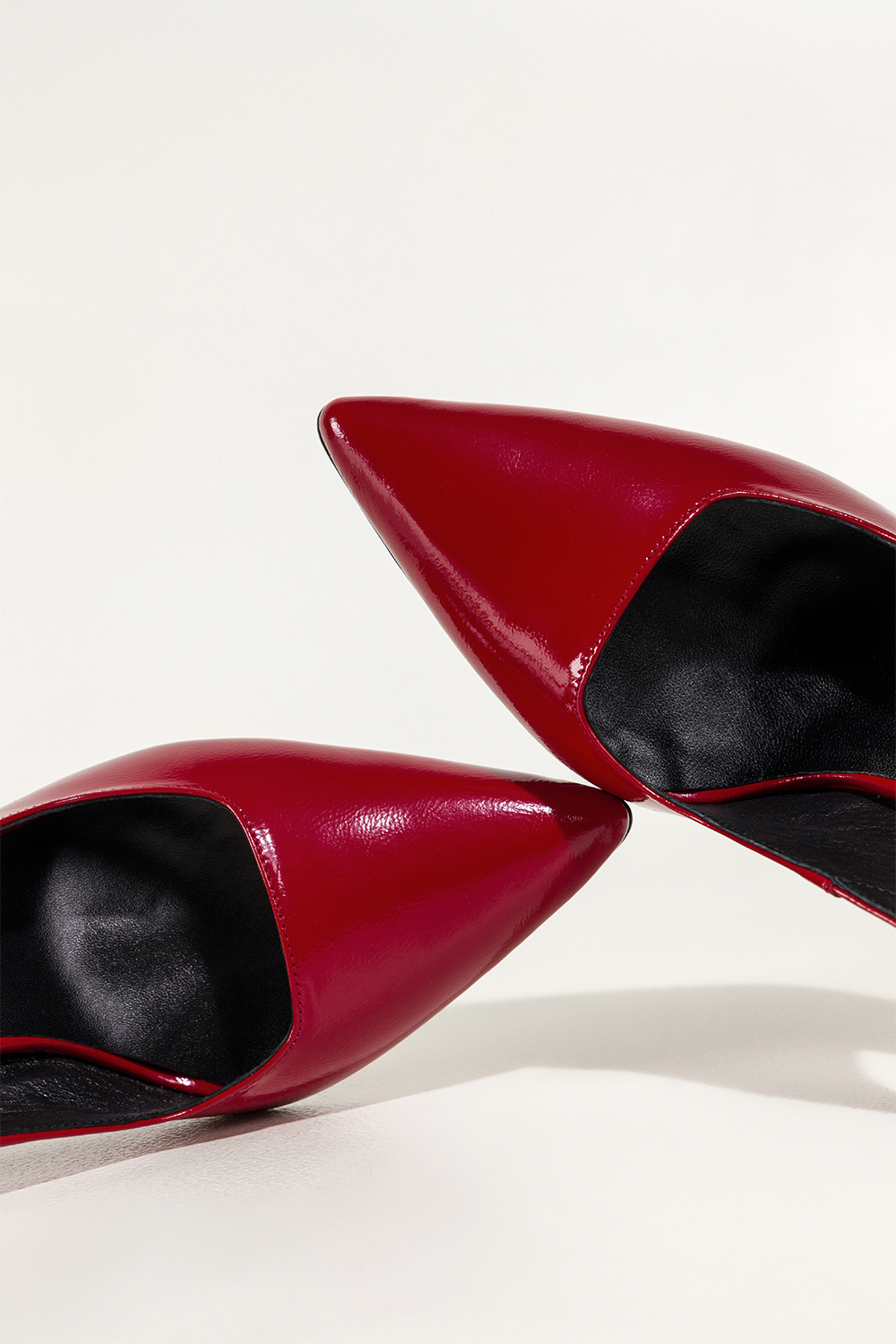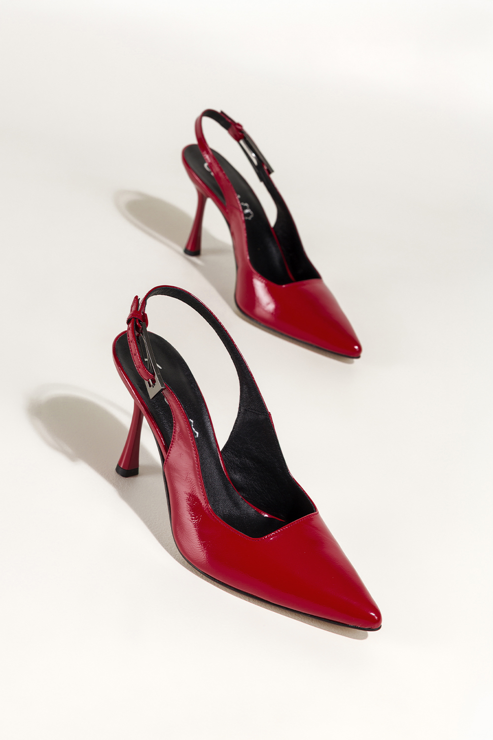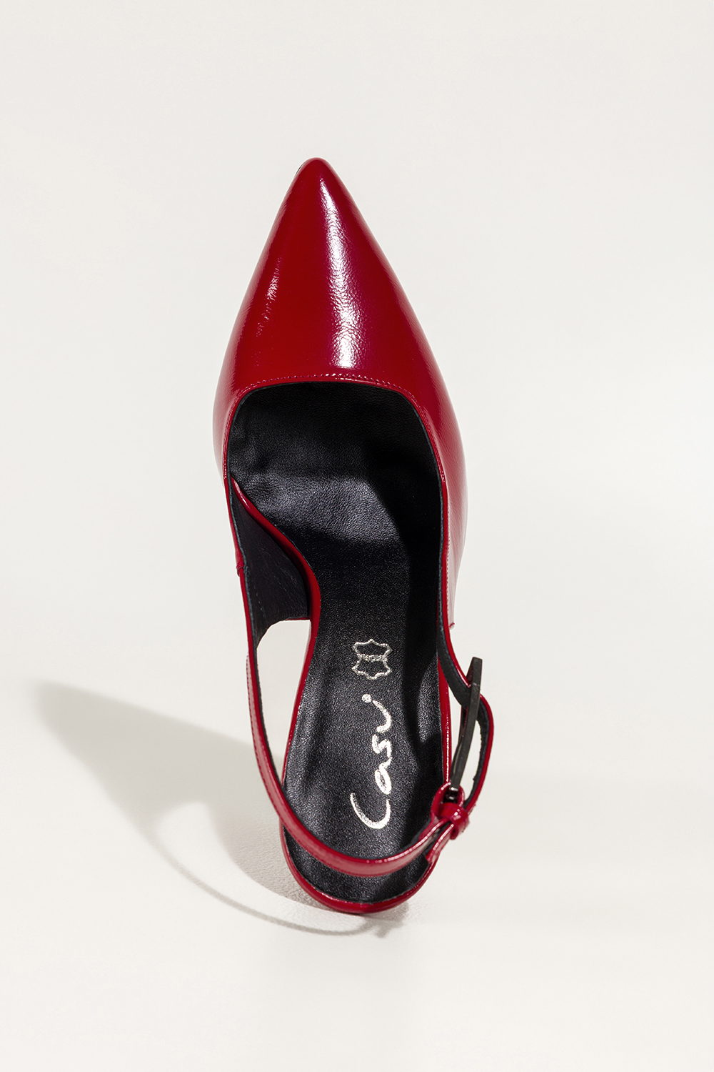 Czerwone czółenka skórzane damskie szpilki lakierowane z odkrytą piętą obcas kieliszek PRODUKT POLS
