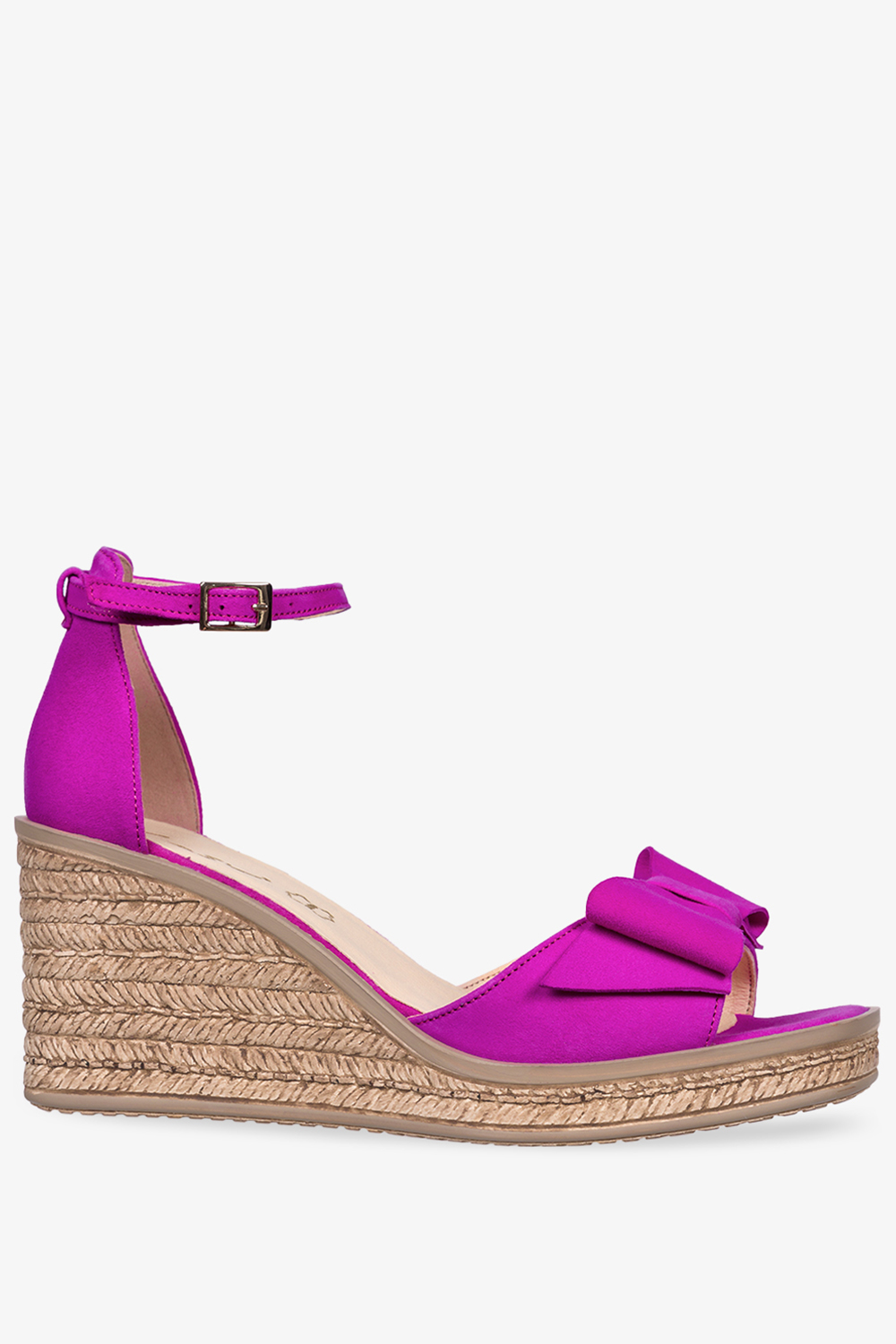Fuksjowe sandały skórzane damskie espadryle na koturnie z zakrytą piętą pasek wokół kostki kokarda PRODUKT POLSKI Casu 2651-326-NO. Jeśli szukasz obuwia, które podkreśli Twój styl, doda Ci kilku centymetrów wzrostu, a jednocześnie zapewni wyjątkowy komfort noszenia przez cały dzień, ten model będzie strzałem w dziesiątkę! Wykonane z naturalnej skóry zamszowej, z miękką skórzaną wkładką i subtelnym efektem plecionki na koturnie - te sandały to definicja kobiecej klasyki w nowoczesnym wydaniu. Zachwycają głębokim odcieniem fuksji, który doda Twoim stylizacjom charakteru i niepowtarzalnej energii. Najwyższa jakość i naturalne materiały - gwarancja wygody Każdy detal tych sandałów został starannie przemyślany, aby dostarczyć Ci najwyższy komfort użytkowania. Cholewka wykonana z naturalnej skóry zamszowej jest miękka, oddychająca i idealnie dopasowuje się do kształtu stopy. Wnętrze wyściełane jest skórzaną wkładką, która amortyzuje każdy krok, eliminując uczucie zmęczenia nawet po wielu godzinach chodzenia. Koturn z efektem tłoczonej plecionki nie tylko pięknie się prezentuje, ale także zapewnia stabilność i wygodę noszenia. Dzięki temu te espadryle sprawdzą się zarówno na co dzień, jak i podczas wyjątkowych okazji. Wyjątkowy design - kobiecość w każdym detalu Te fuksjowe sandały na koturnie to doskonałe połączenie klasyki i nowoczesnych trendów. Ich unikalnym elementem jest urocza kokarda na przodzie cholewki, która dodaje im dziewczęcego uroku i sprawia, że stają się niebanalnym dodatkiem do każdej stylizacji. Zakryta pięta zapewnia stabilność, a regulowany pasek wokół kostki z elegancką, złotą klamerką umożliwia idealne dopasowanie do stopy. Otwarty nosek nadaje lekkości i subtelnie eksponuje pedicure, co czyni je idealnym wyborem na ciepłe, letnie dni. Idealne do każdej stylizacji - uniwersalność w modnym wydaniu Fuksjowe espadryle na koturnie to must-have w garderobie każdej kobiety, która ceni sobie zarówno wygodę, jak i styl. Świetnie komponują się zarówno z letnimi sukienkami, jak i z jeansami czy eleganckimi spódnicami. Możesz je nosić na romantyczną kolację, spotkanie ze znajomymi czy spacer po mieście - zawsze będą wyglądać modnie i kobieco. Kolor fuksji to odważny, ale niezwykle stylowy wybór, który doda charakteru każdej stylizacji i pozwoli Ci wyróżnić się z tłumu. Cechy wyróżniające: Wykonane z wysokiej jakości naturalnej skóry zamszowej Miękka, skórzana wkładka zapewniająca komfort noszenia Koturn z efektem tłoczonej plecionki - elegancja i stabilność Regulowany pasek wokół kostki zapinany na złotą klamerkę Zakryta pięta dla lepszego trzymania stopy Otwarty nosek, idealny na letnie dni Kokarda na przodzie cholewki - subtelny, kobiecy akcent Kolor fuksji, który przyciąga spojrzenia i dodaje stylizacji charakteru Produkt polski - wysoka jakość wykonania Postaw na styl i wygodę! Fuksjowe sandały skórzane damskie espadryle na koturnie to idealny wybór dla kobiet, które szukają eleganckiego, a zarazem komfortowego obuwia na co dzień i na specjalne okazje. Nie czekaj - zamów swój wymarzony model już teraz na Casu i ciesz się modnym lookiem każdego dnia!