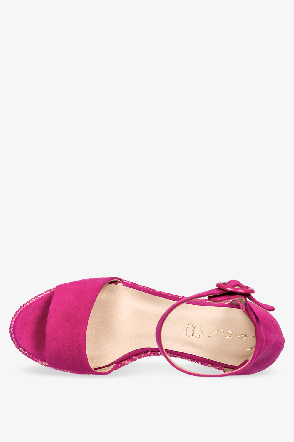 Fuksjowe sandały skórzane damskie espadryle na ozdobnym koturnie PRODUKT POLSKI Casu 2339