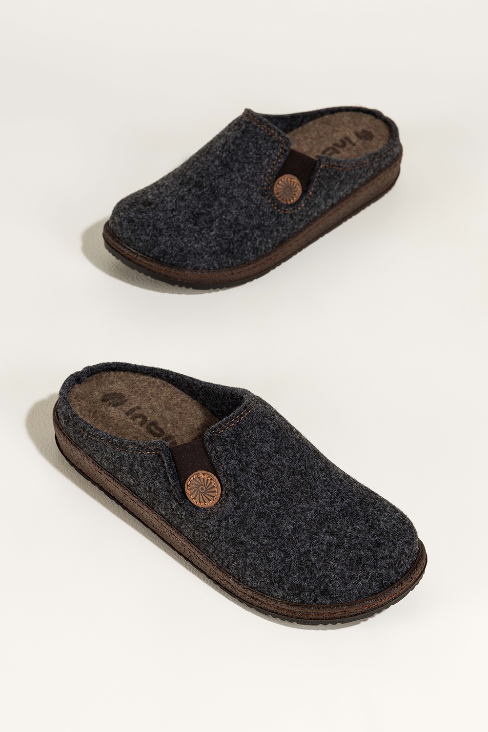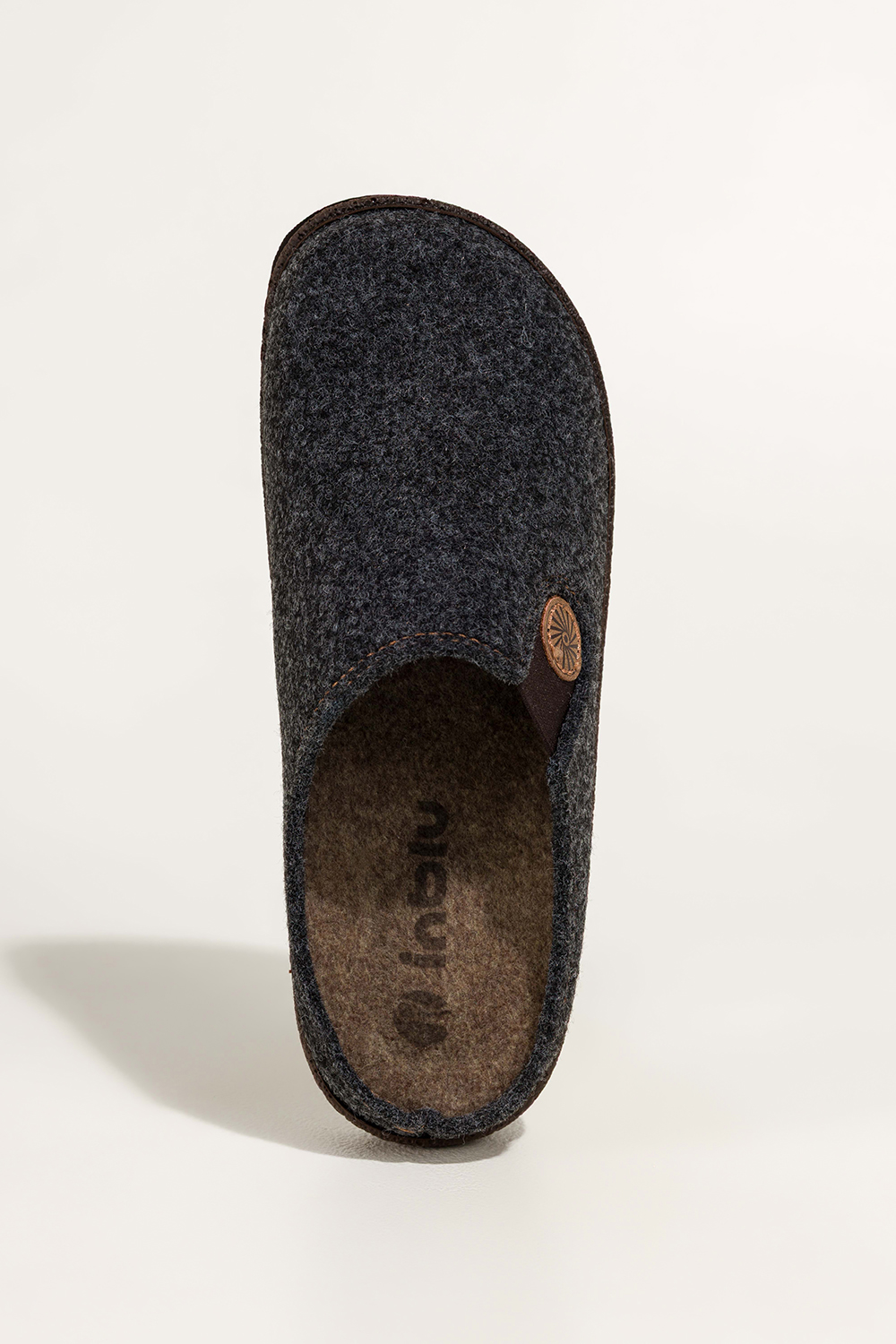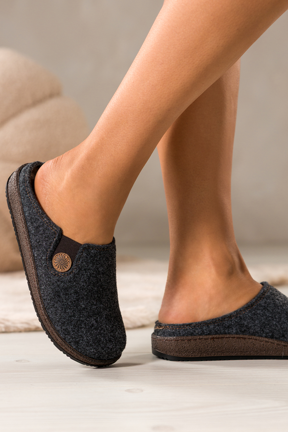 Grafitowe kapcie damskie Inblu obuwie domowe z wyjmowaną wkładką w cholewce guma z ozdobą MO999989