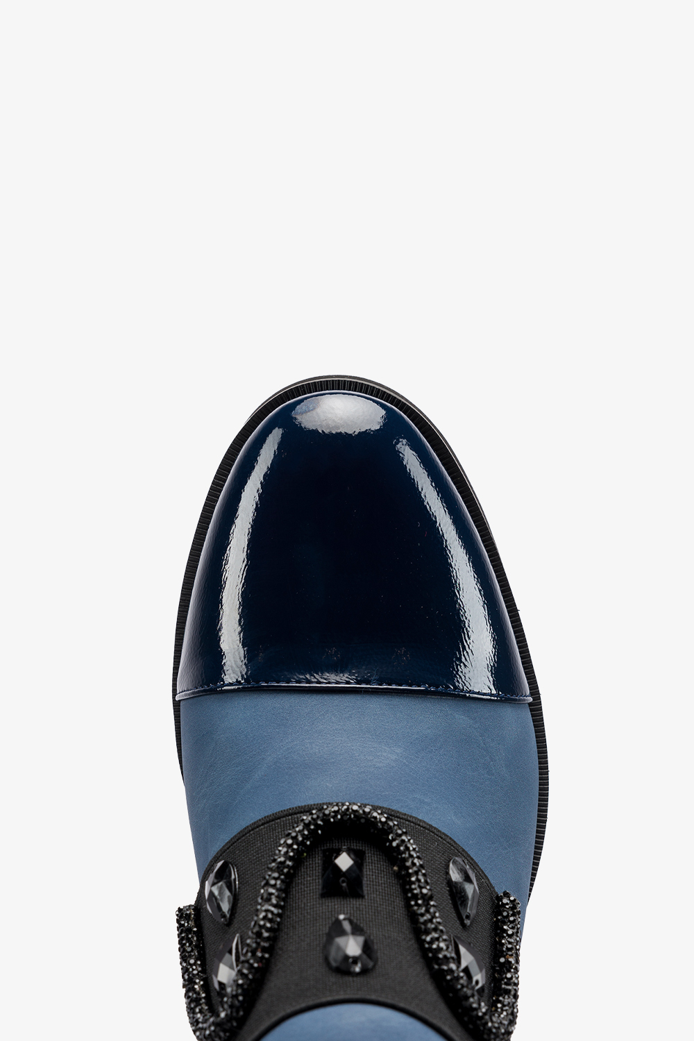 Granatowe botki damskie na geometrycznym klocku ozdobna guma z kryształkami Casu SL24X6-N