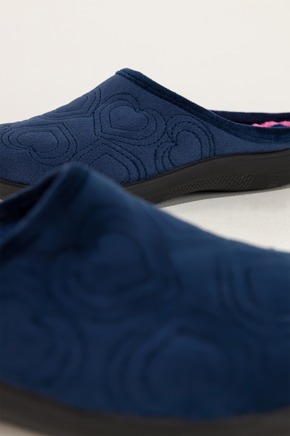Granatowe kapcie damskie Inblu obuwie domowe z haftowanymi sercami VXYWLL98