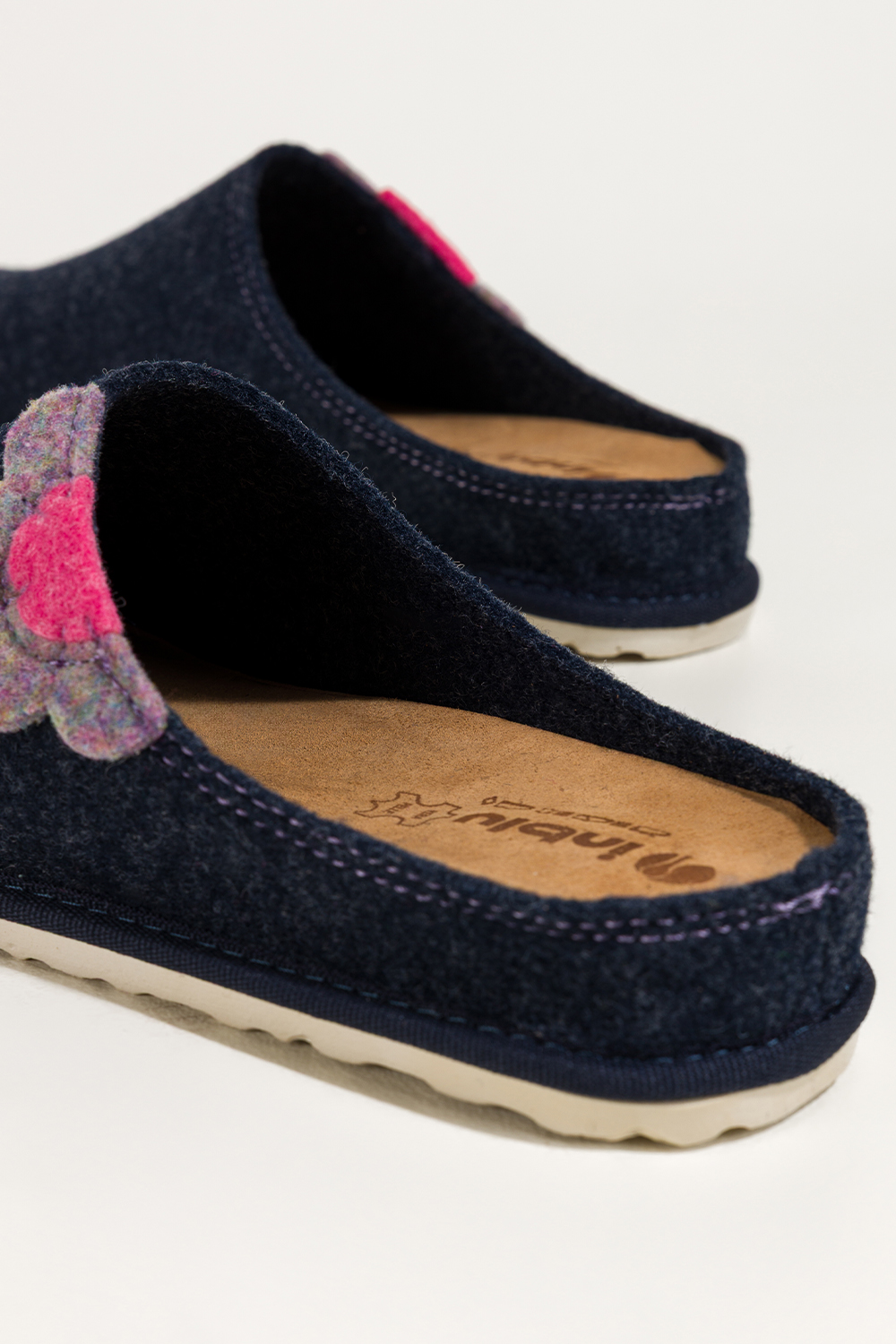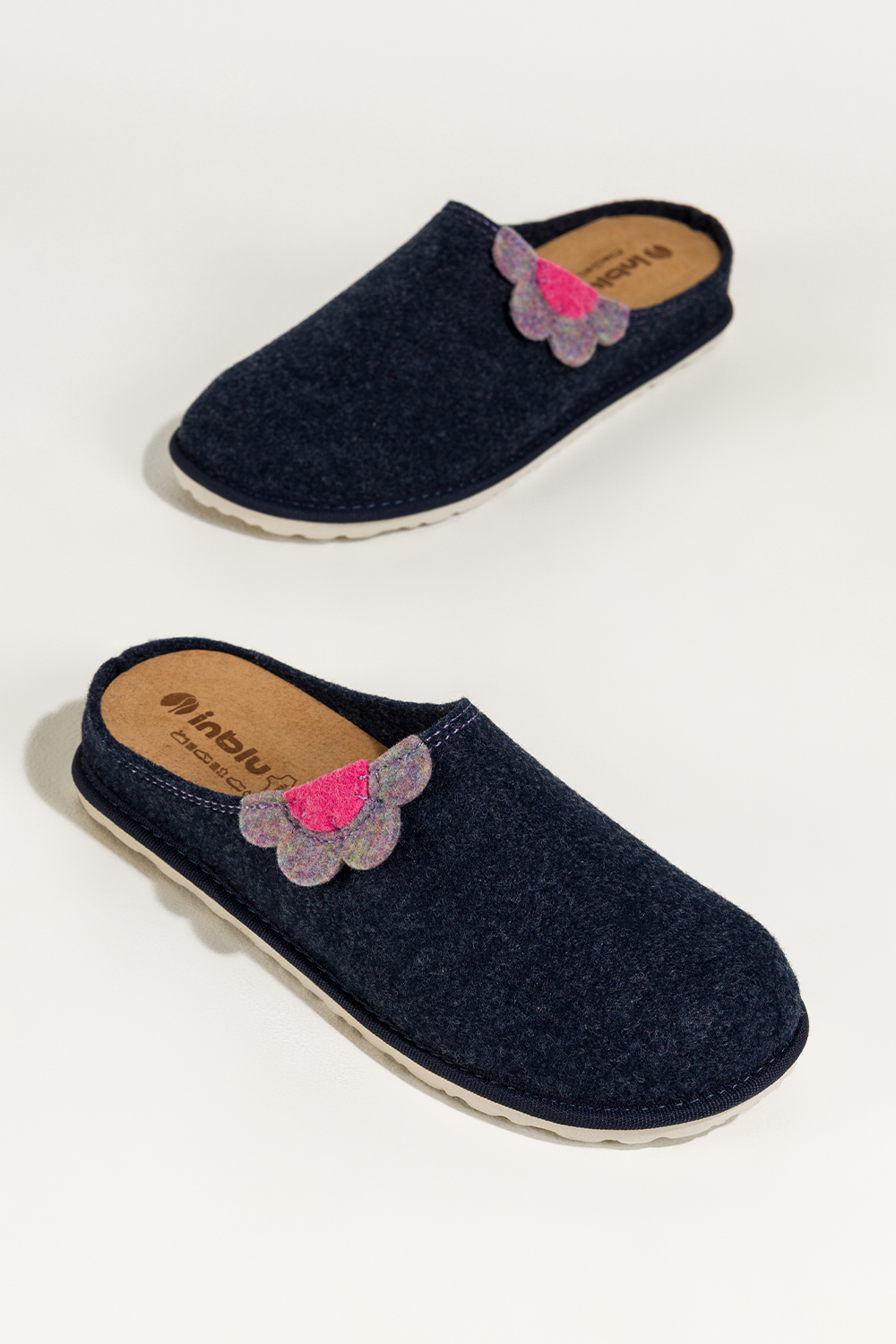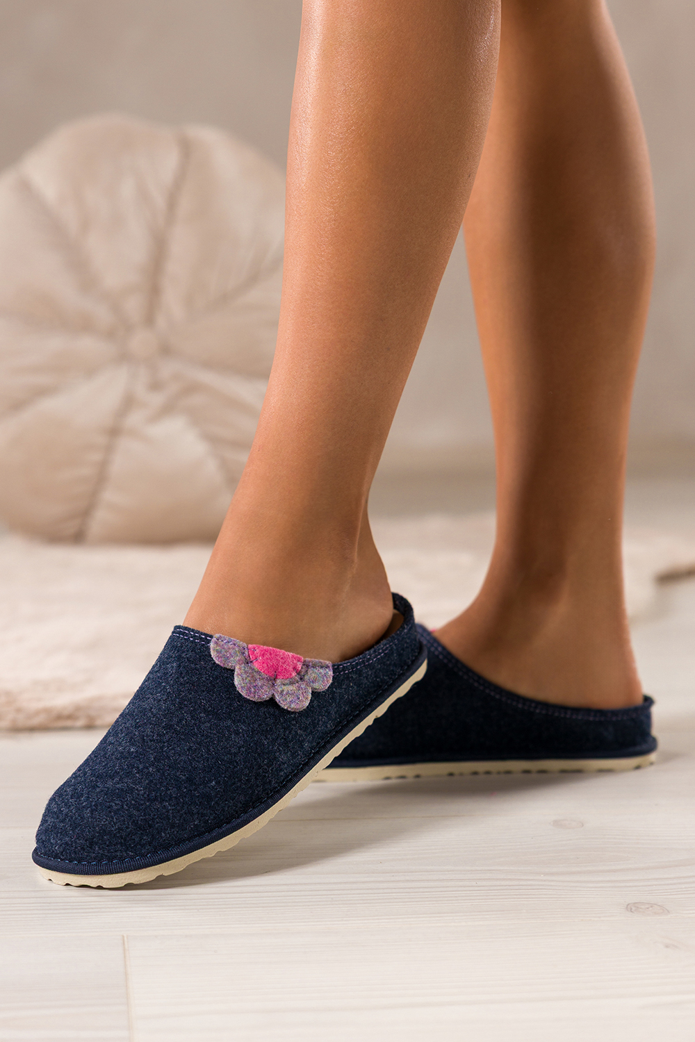 Granatowe kapcie damskie Inblu obuwie domowe z wyjmowaną skórzaną wkładką ozdobny kwiat XH999956