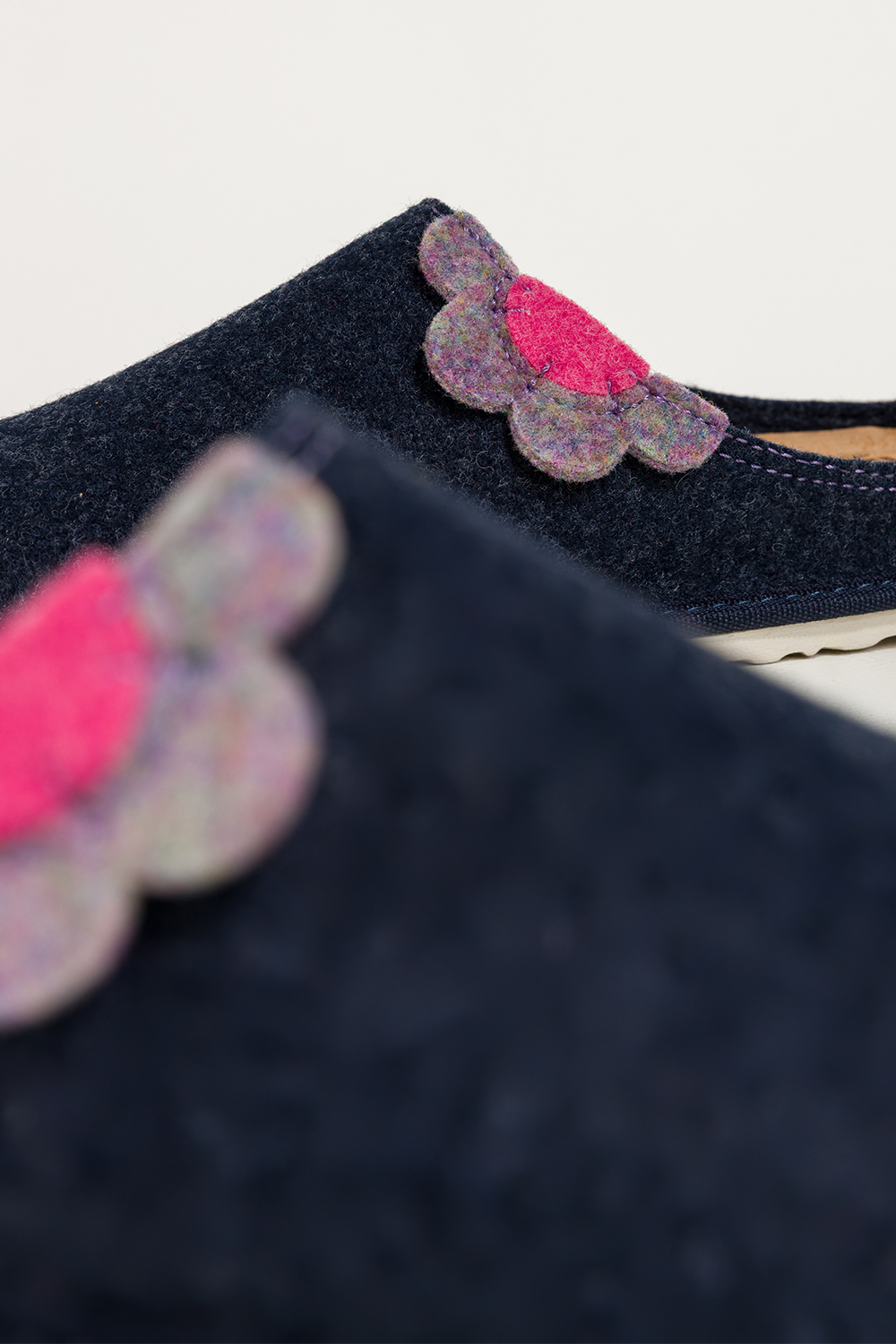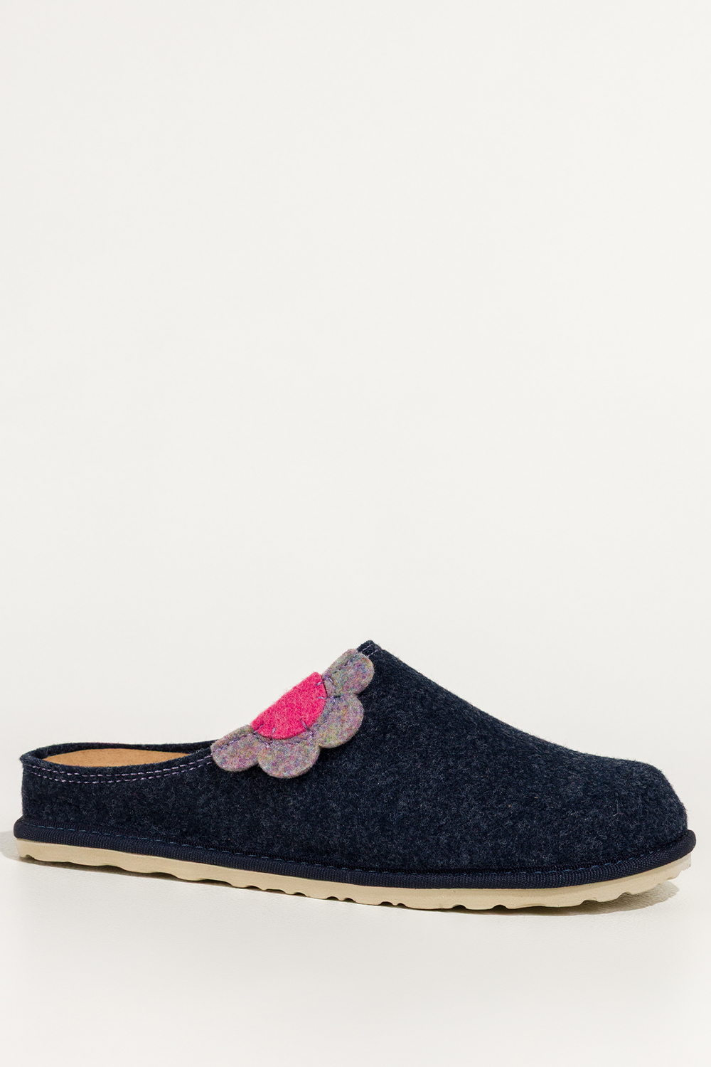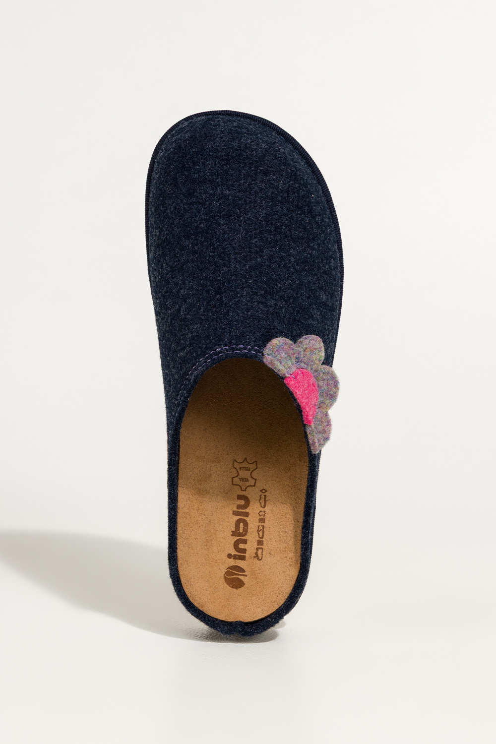 Granatowe kapcie damskie Inblu obuwie domowe z wyjmowaną skórzaną wkładką ozdobny kwiat XH999956