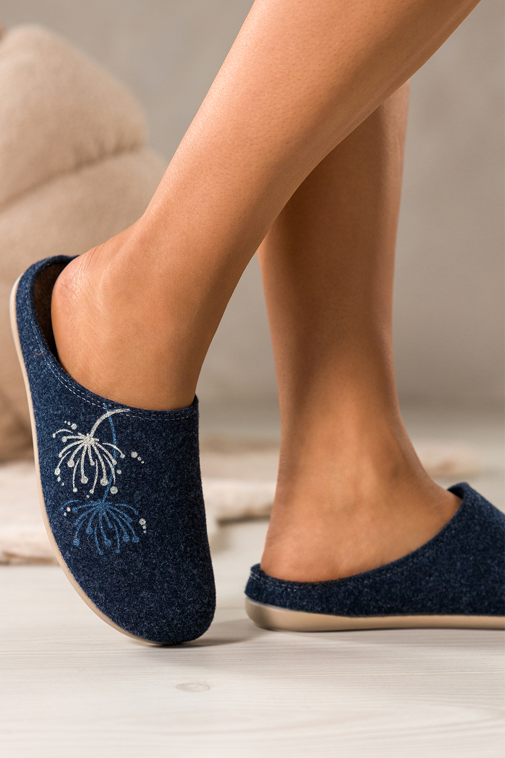 Granatowe kapcie damskie Inblu obuwie domowe z wyjmowaną wkładką kwiaty na cholewce model TU999969, to synonim wygody, która otula stopy od pierwszego kroku. Wykonane z miękkiego filcu, zapewniają idealne dopasowanie do kształtu stopy i doskonałą wentylację. Wyjmowana wkładka z filcu dodaje komfortu oraz ułatwia utrzymanie higieny. To obuwie domowe, które łączy trwałość z przytulnym ciepłem, idealne na chłodniejsze dni. Kwietny wzór na cholewce to subtelny, ale wyrazisty akcent, który wyróżnia ten model spośród innych. Granatowa kolorystyka nadaje kapciom elegancki i ponadczasowy charakter, który z łatwością dopasuje się do każdego domowego stroju. Zaokrąglony nosek i wsuwana forma to gwarancja wygody i szybkiego zakładania, szczególnie doceniana w codziennym użytkowaniu. Te kapcie to idealny wybór dla kobiet ceniących sobie nie tylko estetykę, ale przede wszystkim funkcjonalność. Płaska podeszwa zapewnia stabilność, a lekka konstrukcja nie obciąża stóp, co sprawia, że sprawdzą się zarówno podczas relaksu, jak i codziennych obowiązków domowych. Uniwersalne i niezawodne, świetne do noszenia przez cały rok. Cechy wyróżniające Wysokogatunkowy, oddychający filc Miękka, wyjmowana wkładka zapewniająca higienę Stylowe kwiaty na cholewce Wsuwana forma, wygoda i funkcjonalność Płaska podeszwa dla stabilności Uniwersalny granatowy kolor To połączenie jakości, wygody i uroku, które sprawi, że każdy dzień w domu stanie się przyjemniejszy. Nie czekaj, zamów już dziś na Casu i ciesz się komfortem, na który zasługujesz!