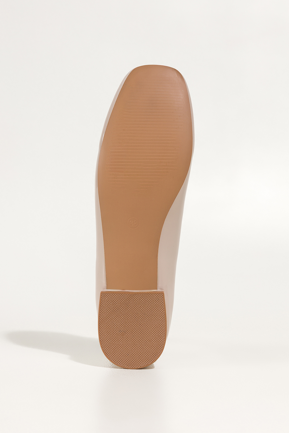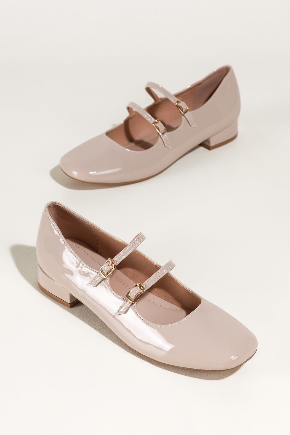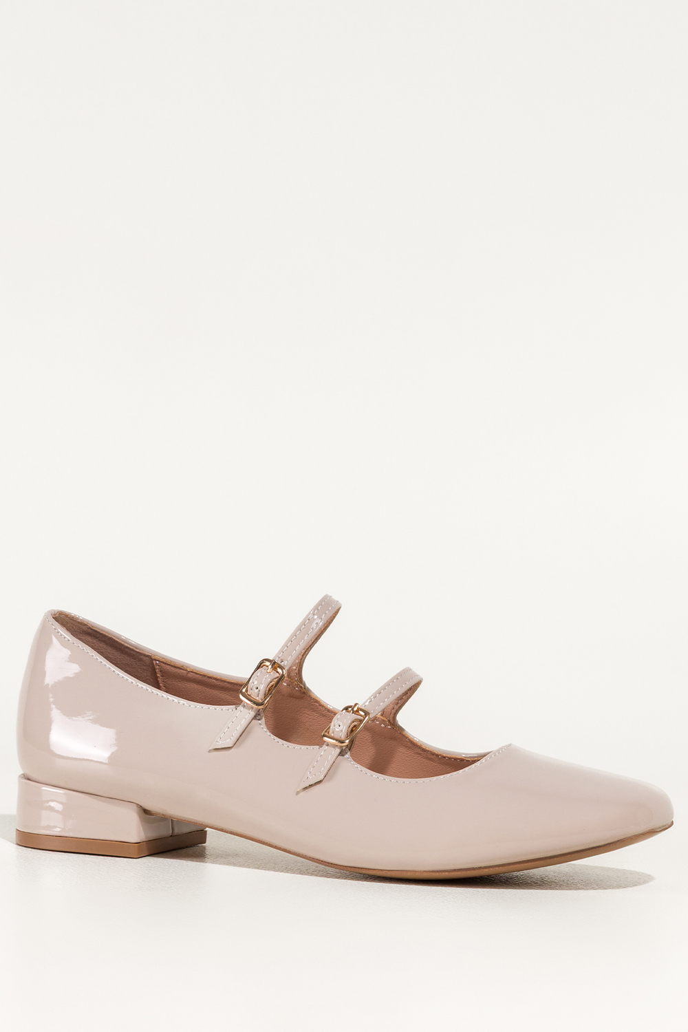 Jasnobeżowe baleriny damskie lakierowane Mary Jane z paskami niski obcas klocek Carla ZR84K