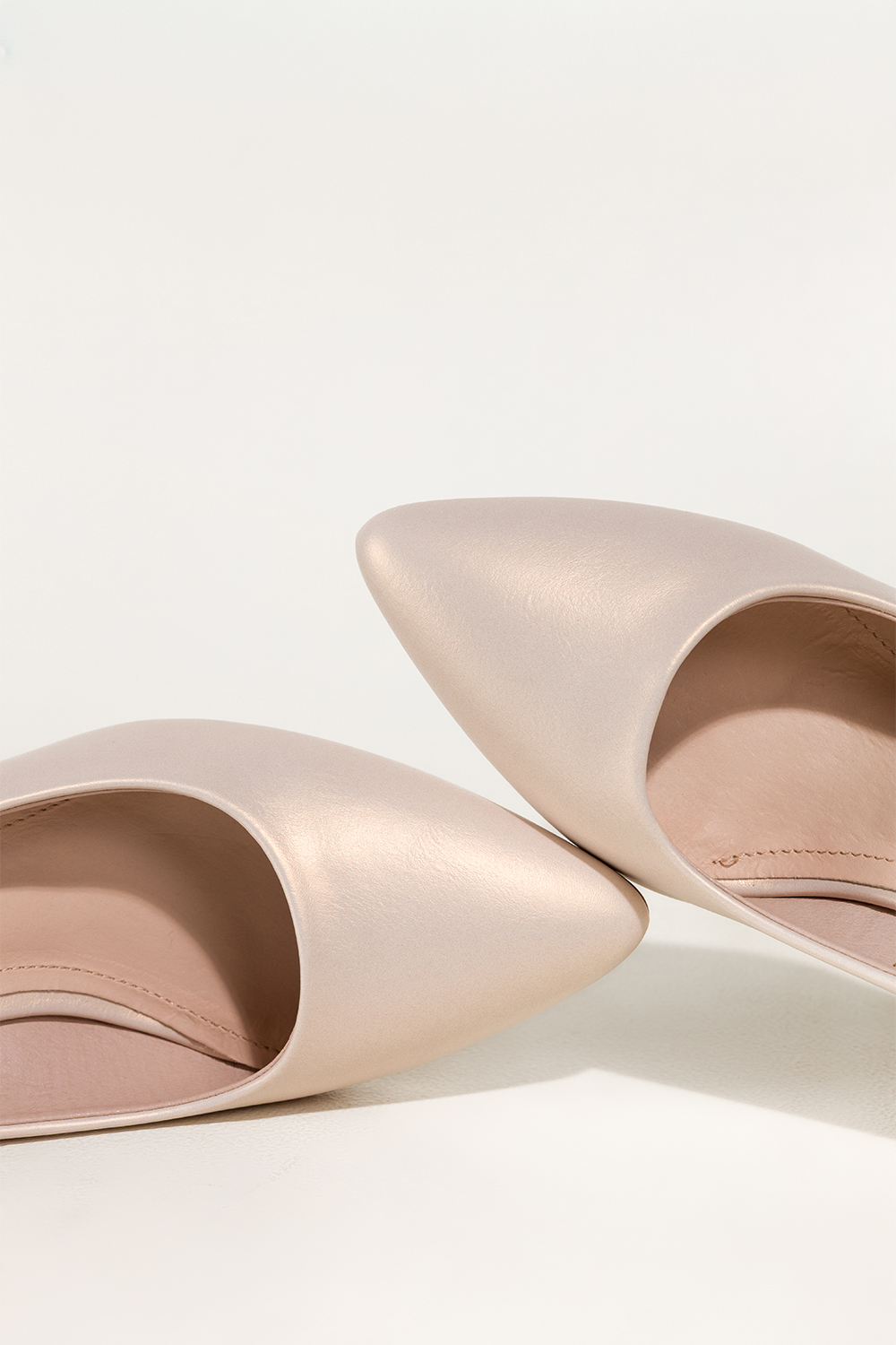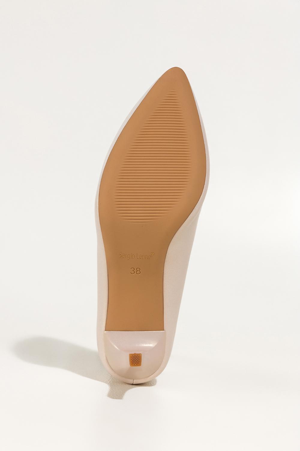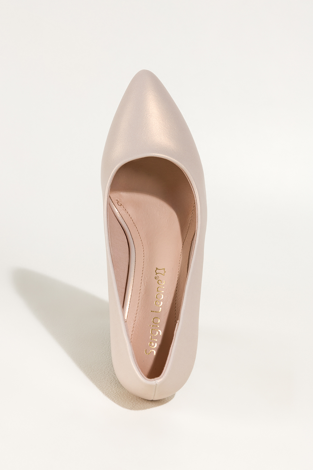 Jasnobeżowe szpilki damskie Sergio Leone z perłową powłoką skórzana wkładka 8663