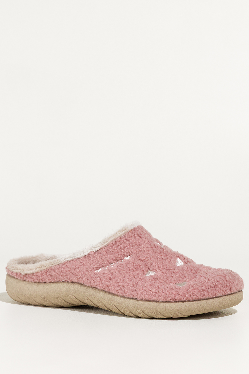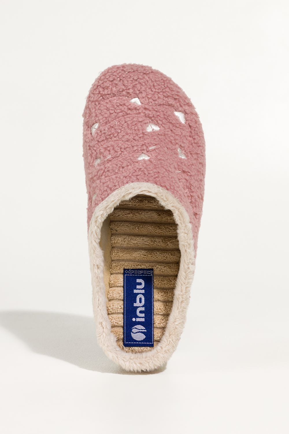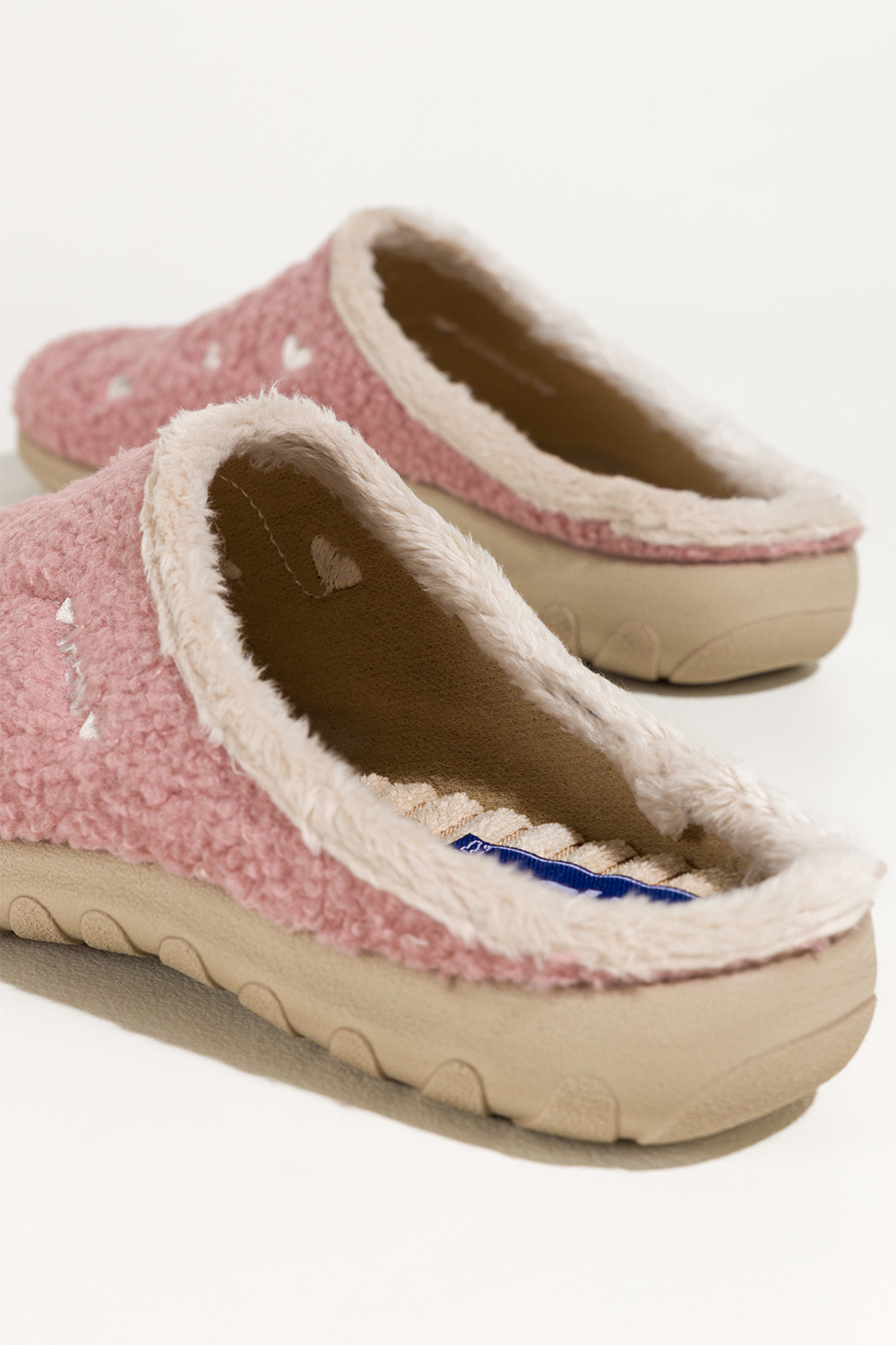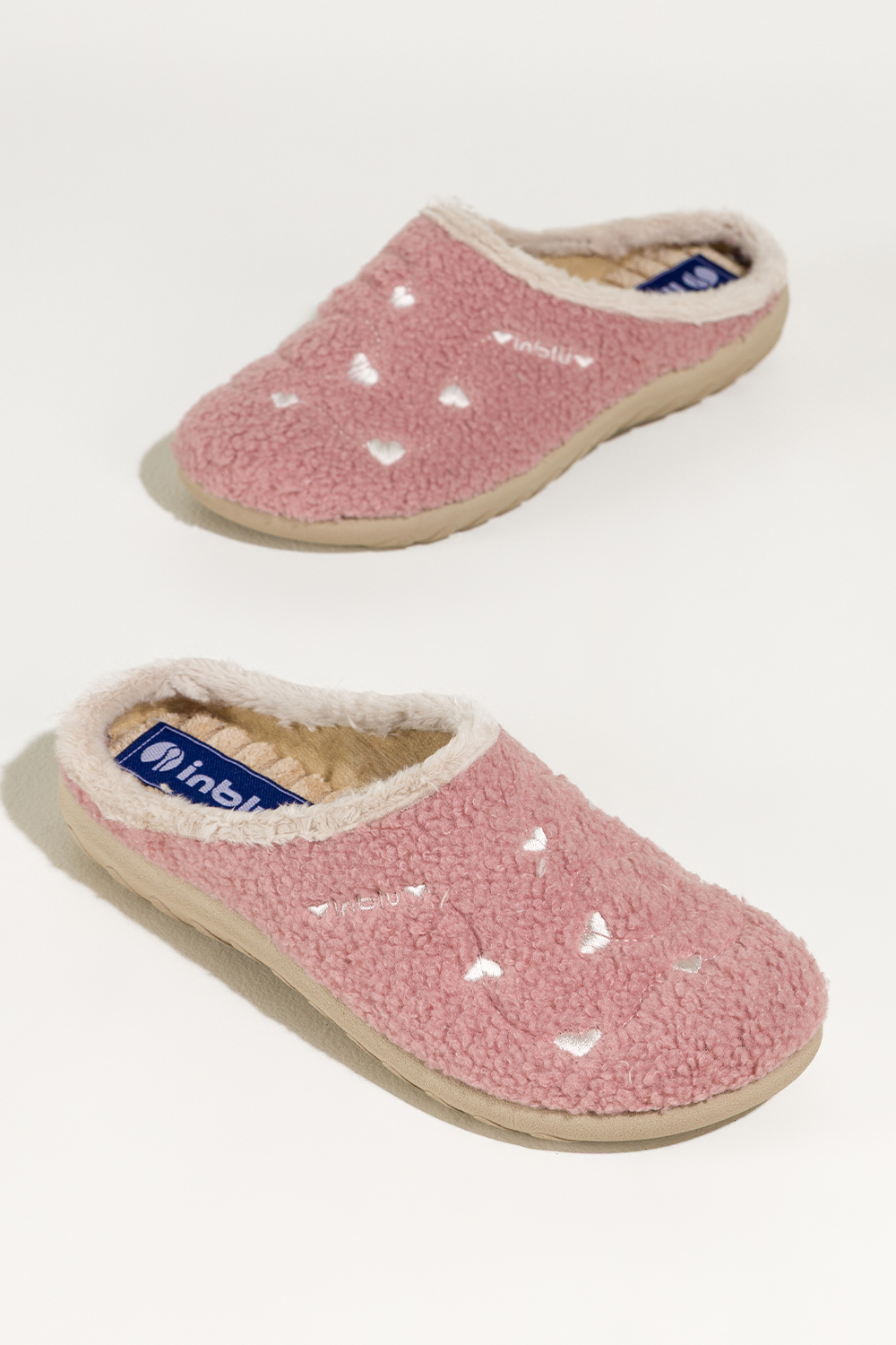 Różowe kapcie damskie Inblu obuwie domowe z materiału typu baranek ozdobione sercami VG999966