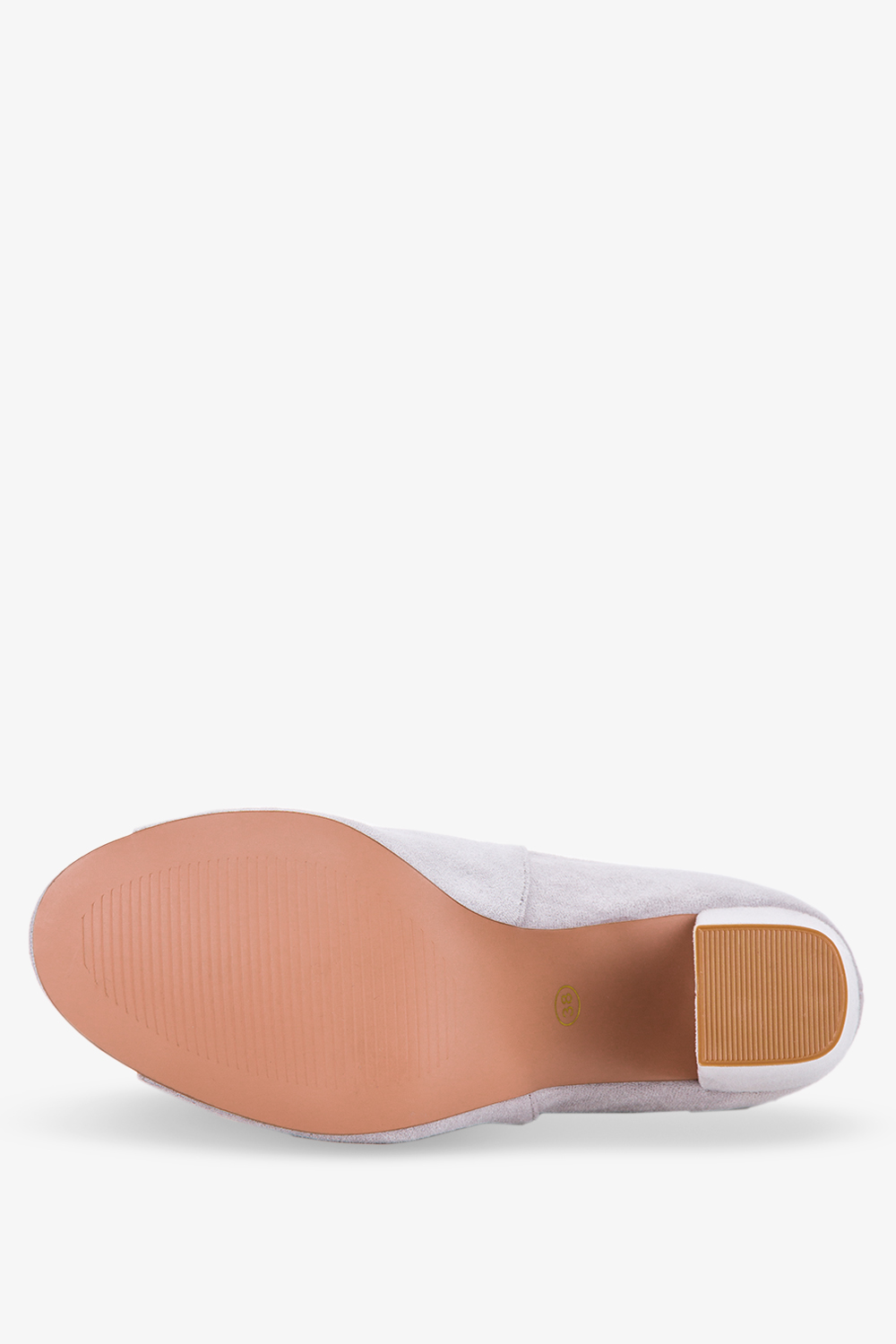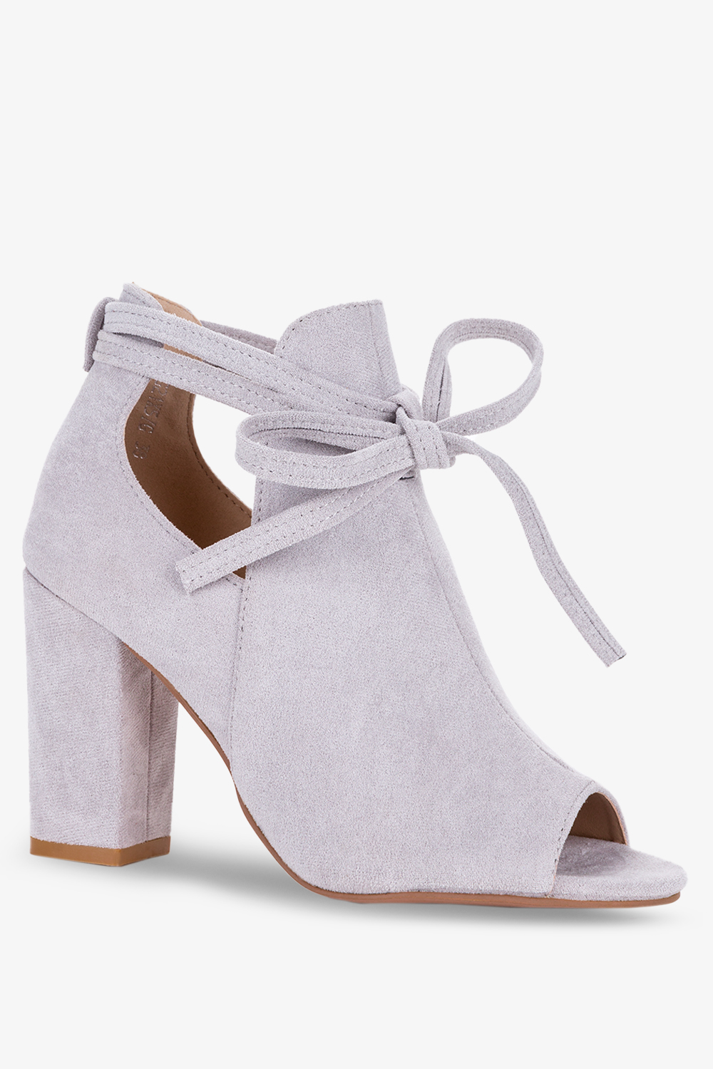 Szare botki wiosenne peep toe na słupku z ozdobnym wiązaniem Casu G21X5/G